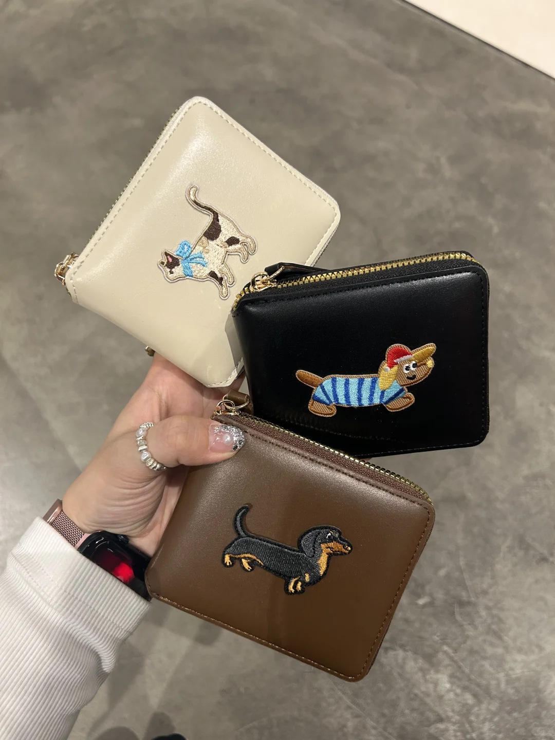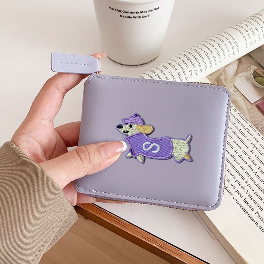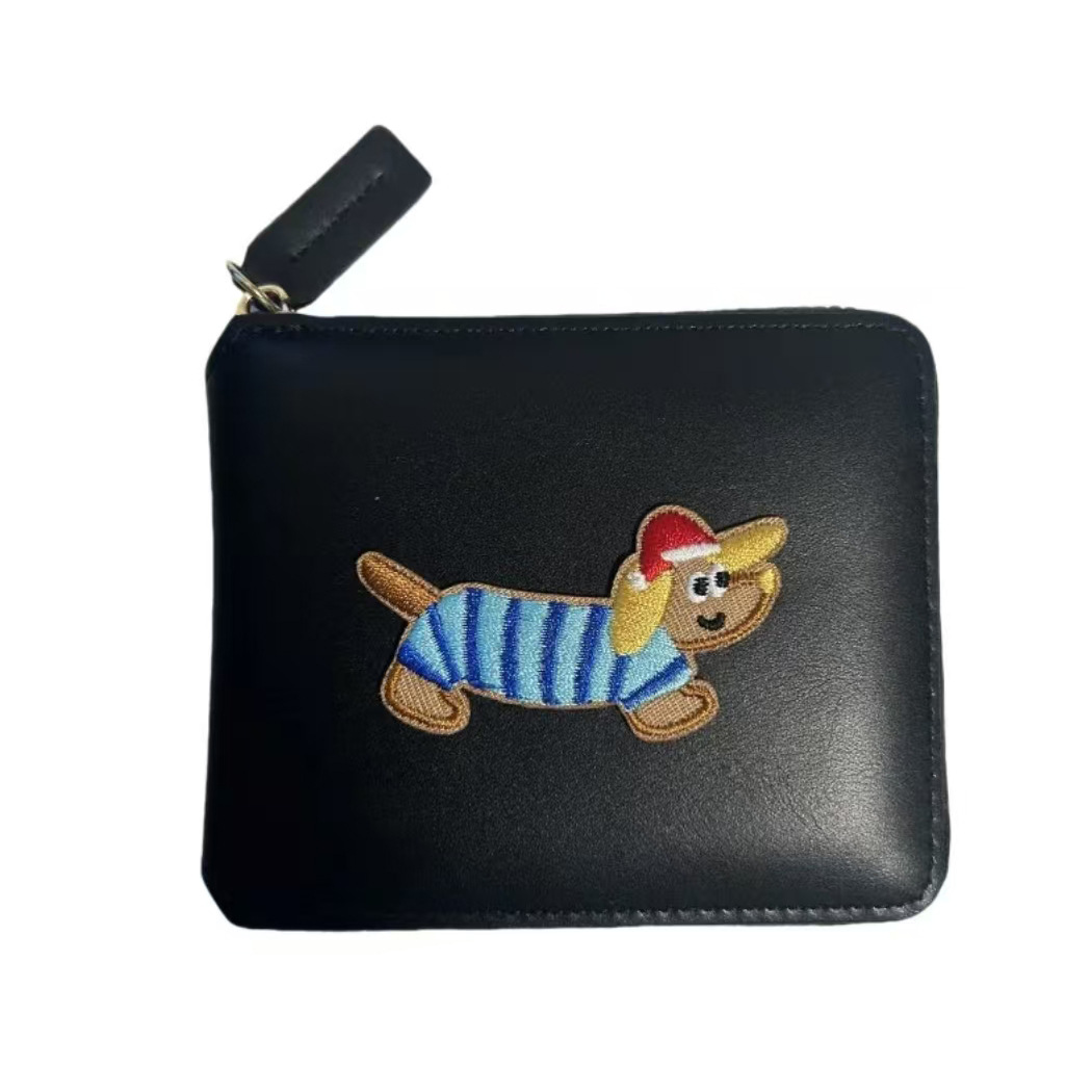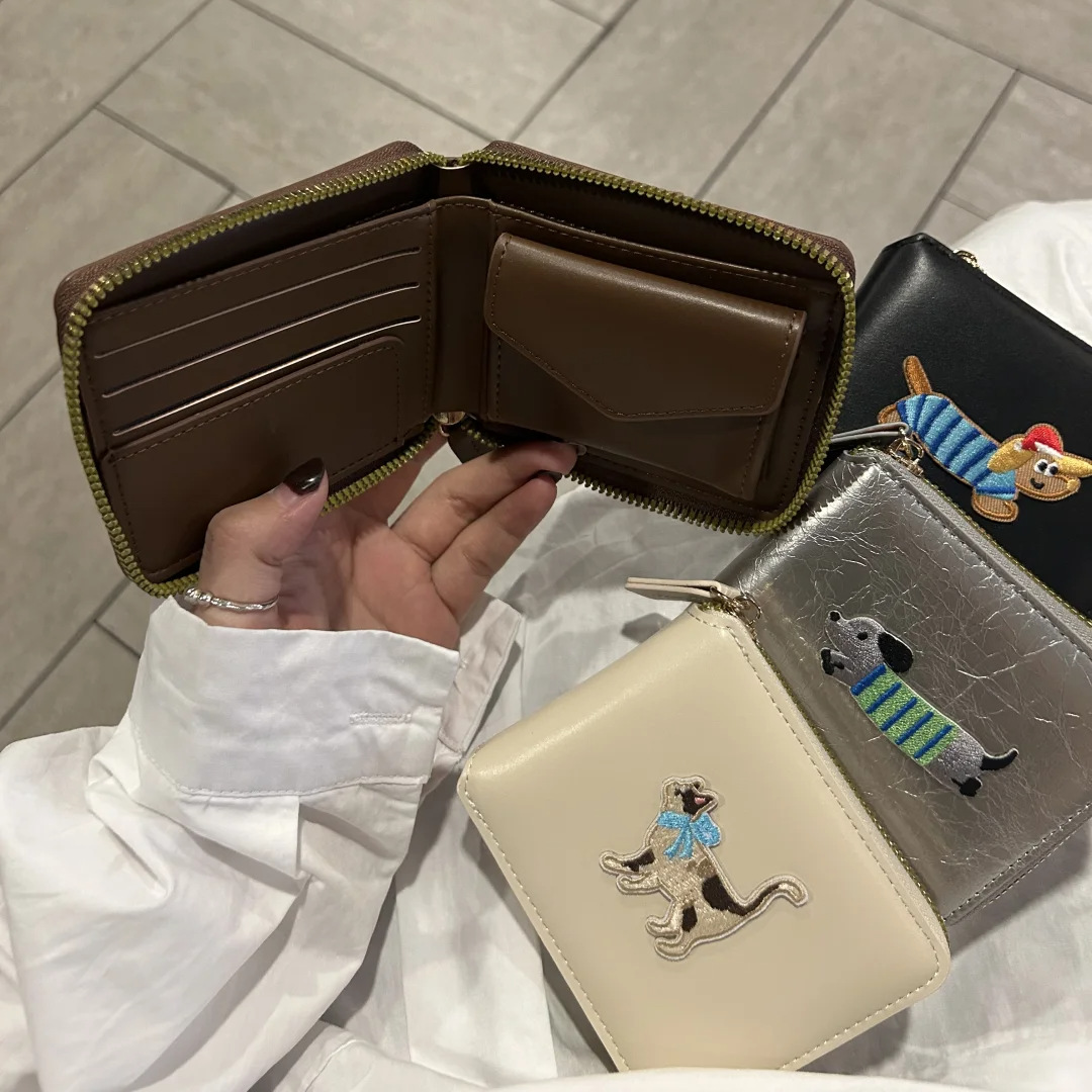 정사각형 가죽 질감 맞춤형 소형 지갑 동전 지갑 가죽 대용량 닥스훈트 광택 실버 카드 홀더 동전 가방스토어 가기