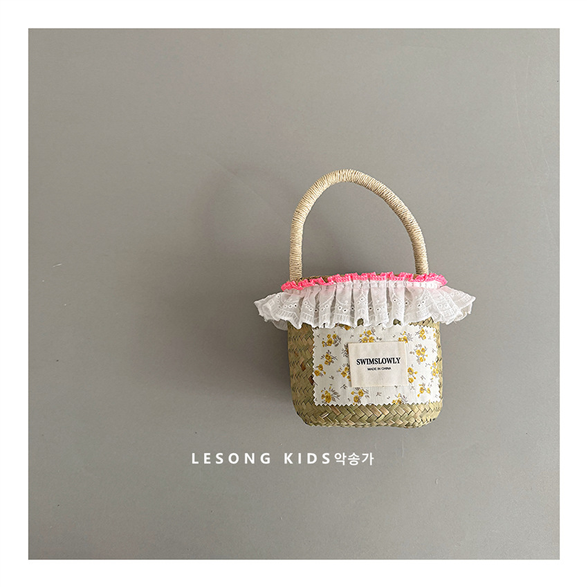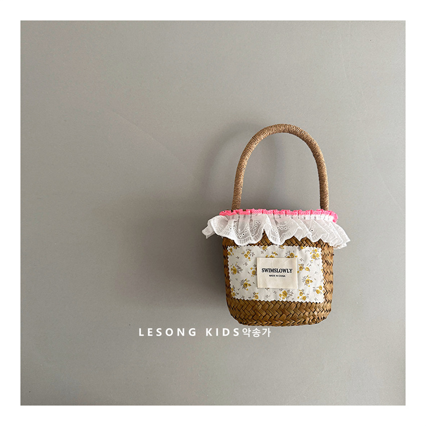 儿童田园风出游凹造型蕾丝边碎花草编手提包