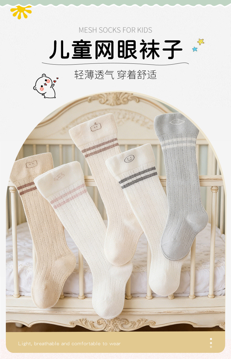 아기 양말 도매 대외 무역 국경 여름 얇은 메쉬 통기성 긴 튜브 무릎 위에 신생아 아기 면화 양말스토어 가기