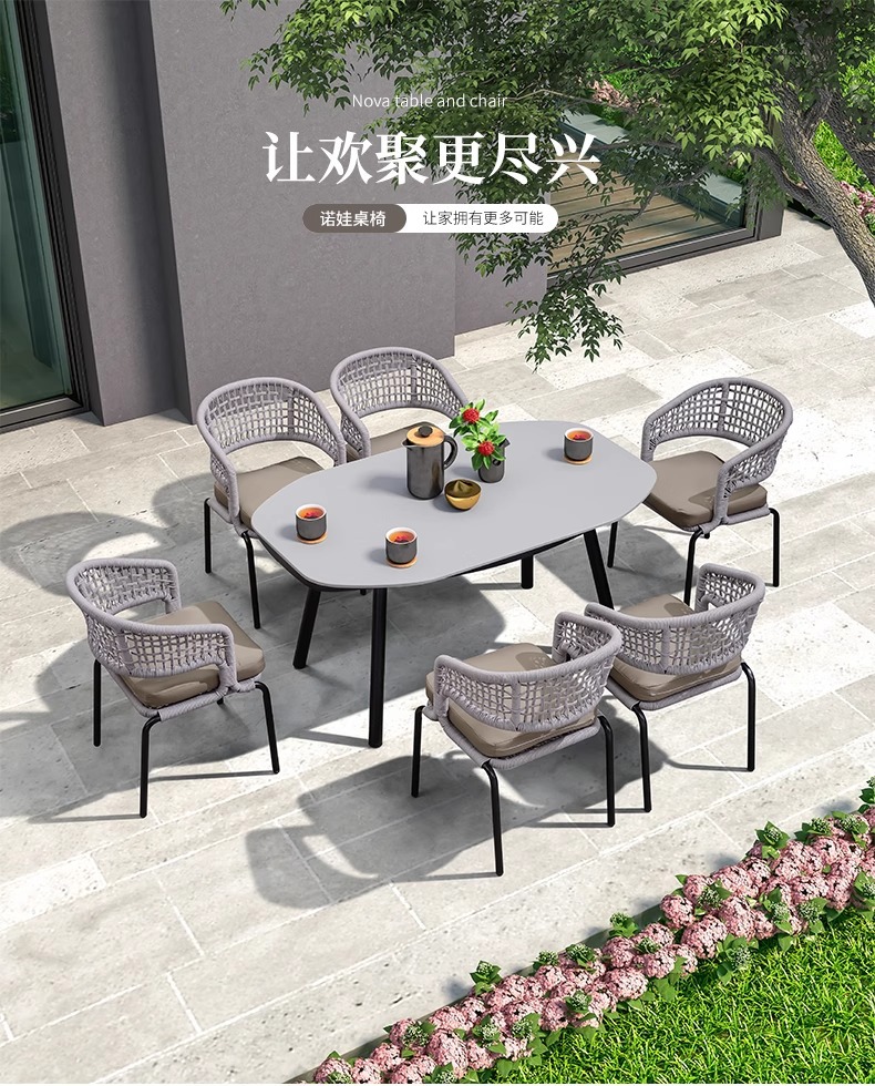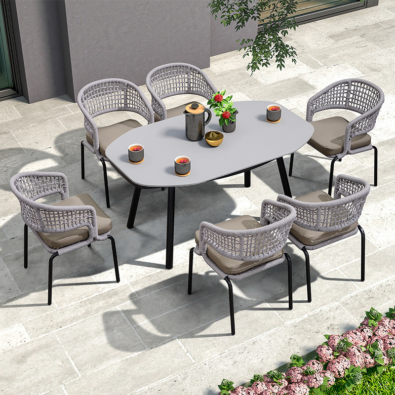 북유럽 야외용 등나무 식탁 및 의자 세트, 알루미늄 식탁, 등나무 의자, 빌라 정원 테이블 및 의자 가구, 등나무 예술품스토어 가기