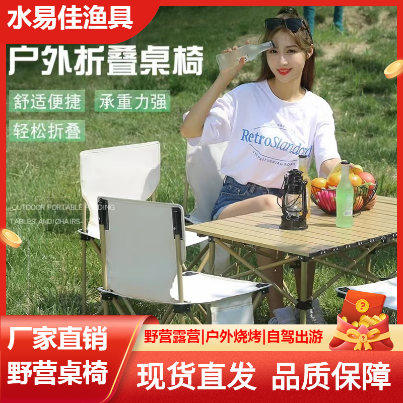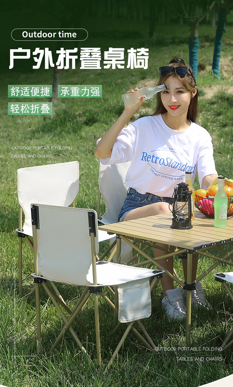 야외 원형 튜브 계란말이 접이식 휴대용 테이블과 의자 패키지 야외 자율주행 여행 바베큐 스톨 캠핑 피크닉 접이식 테이블