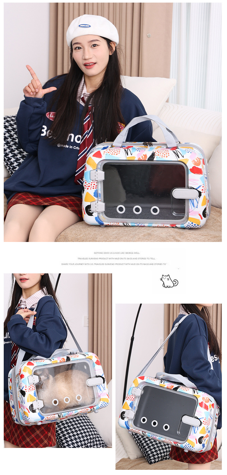 휴대용 외출가방, 고양이가방, 대용량 휴대용 숄더백, 사계절 통기성 휴대용 숄더백, 자동차용 애완동물 가방
