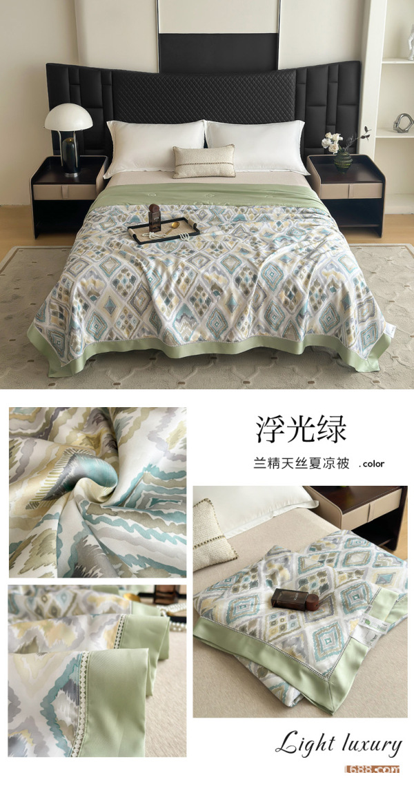 • 윤기나는 녹색 컬러의 실크 여름 이불