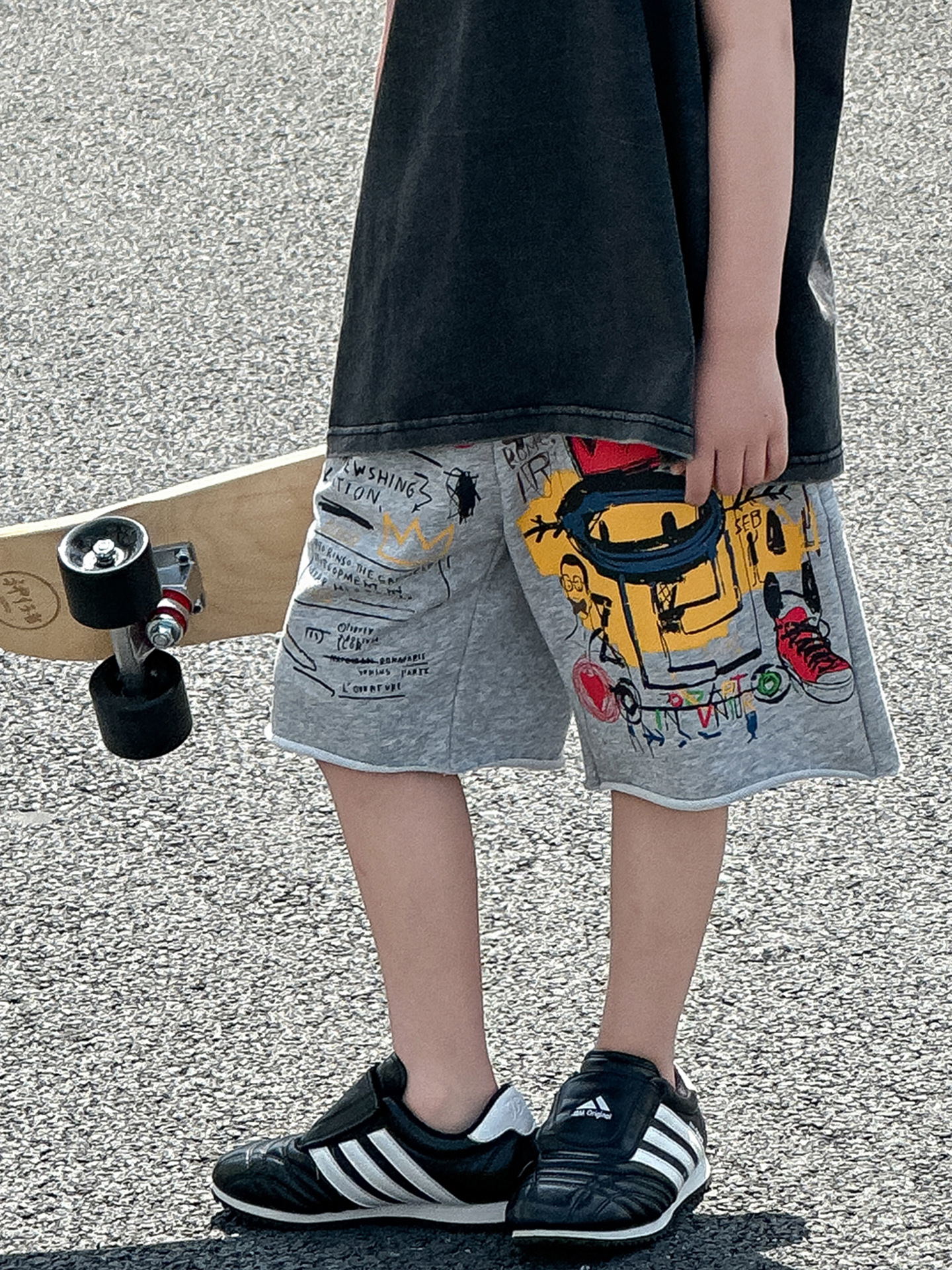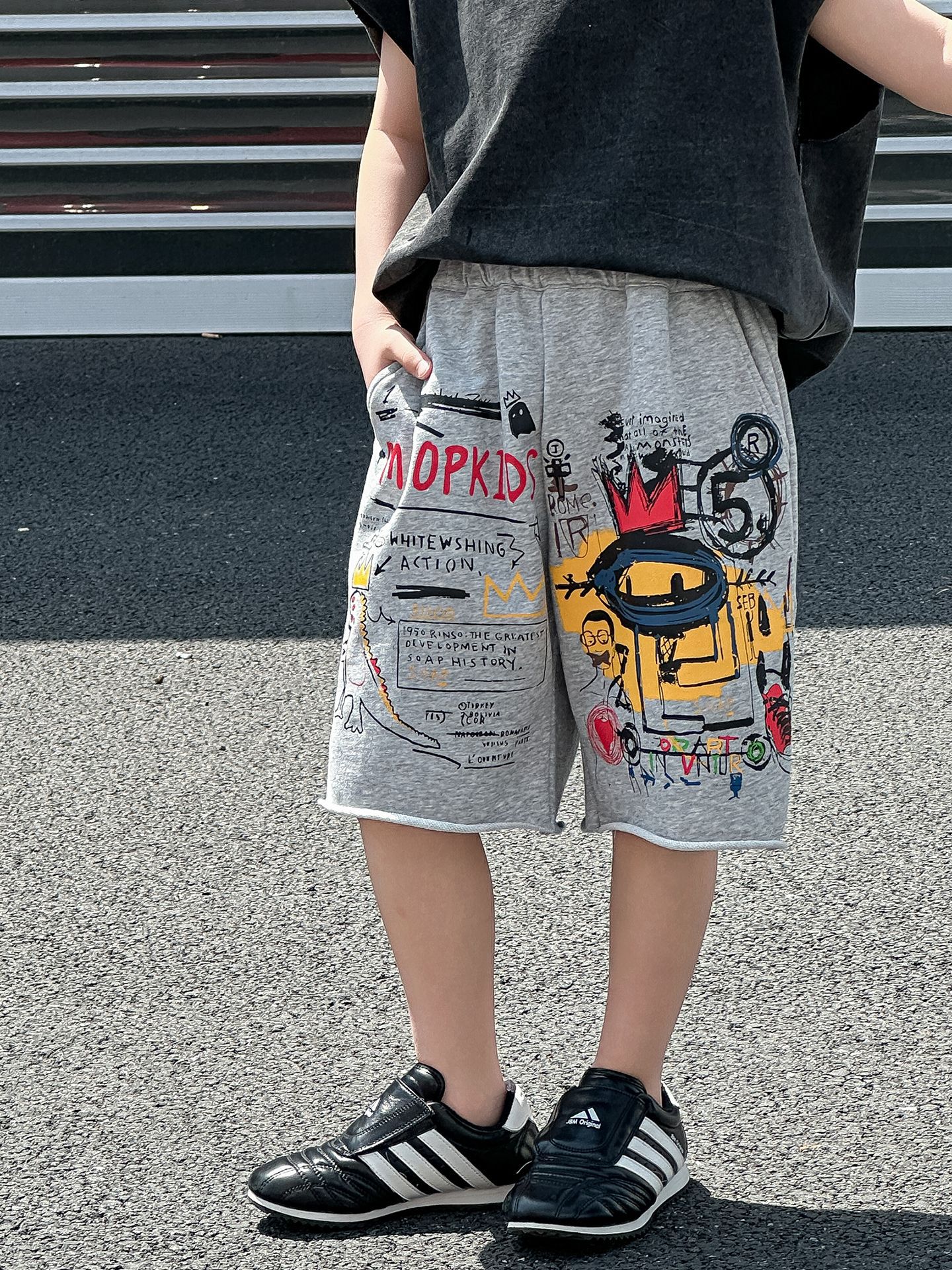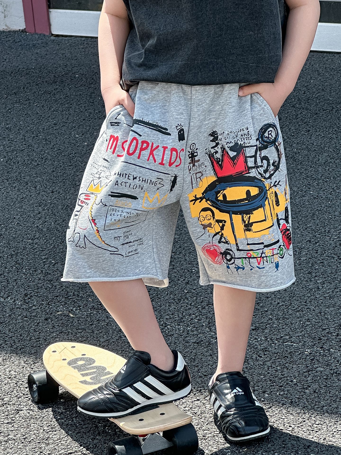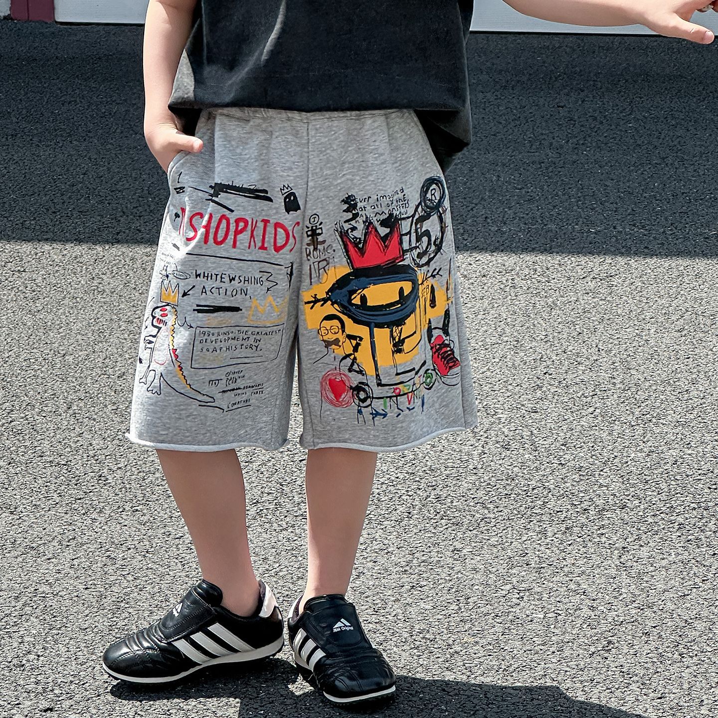 소년 반바지 여름 어린이 한국어 버전 2025 새로운 유행 브랜드 만화 아동 의류 얇은 넓은 다리 데님 바지