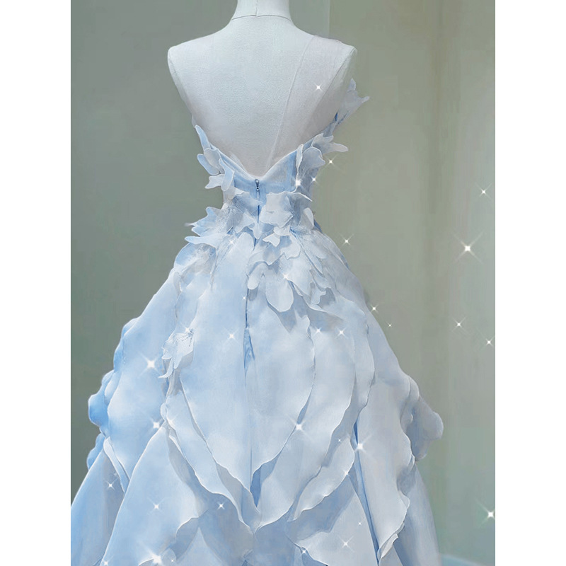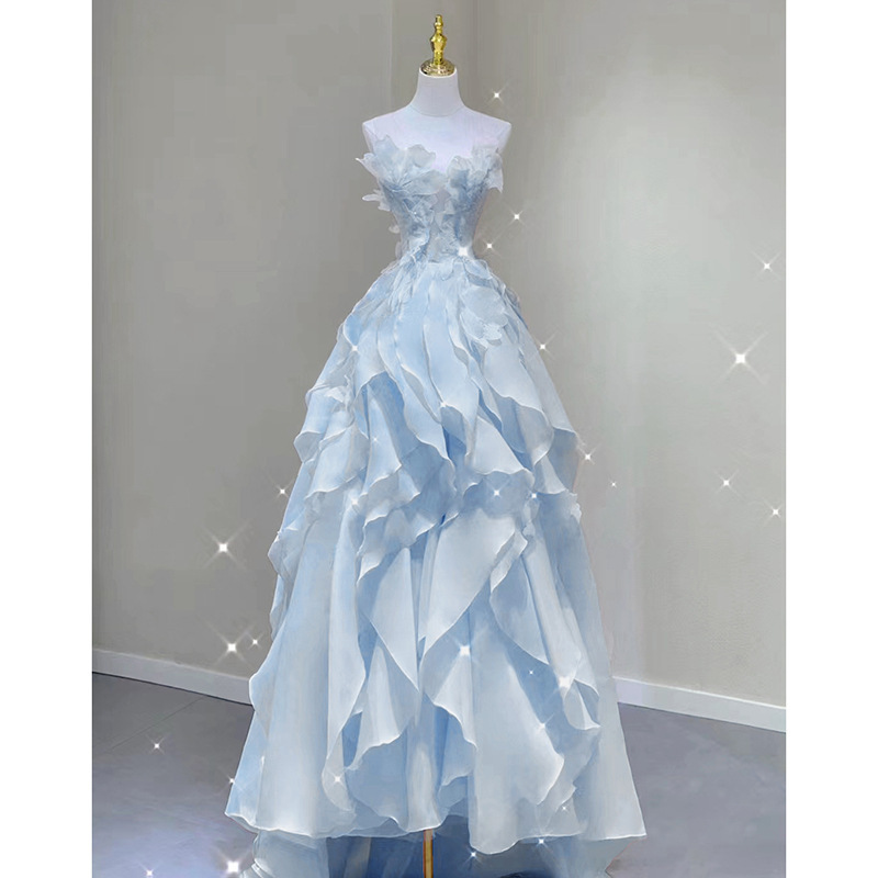 블루 이브닝 드레스 2026 봄 신상 페어리 스타일 튜브탑 트렌디 연회 예술 시험 사회자 졸업 성인식 드레스스토어 가기