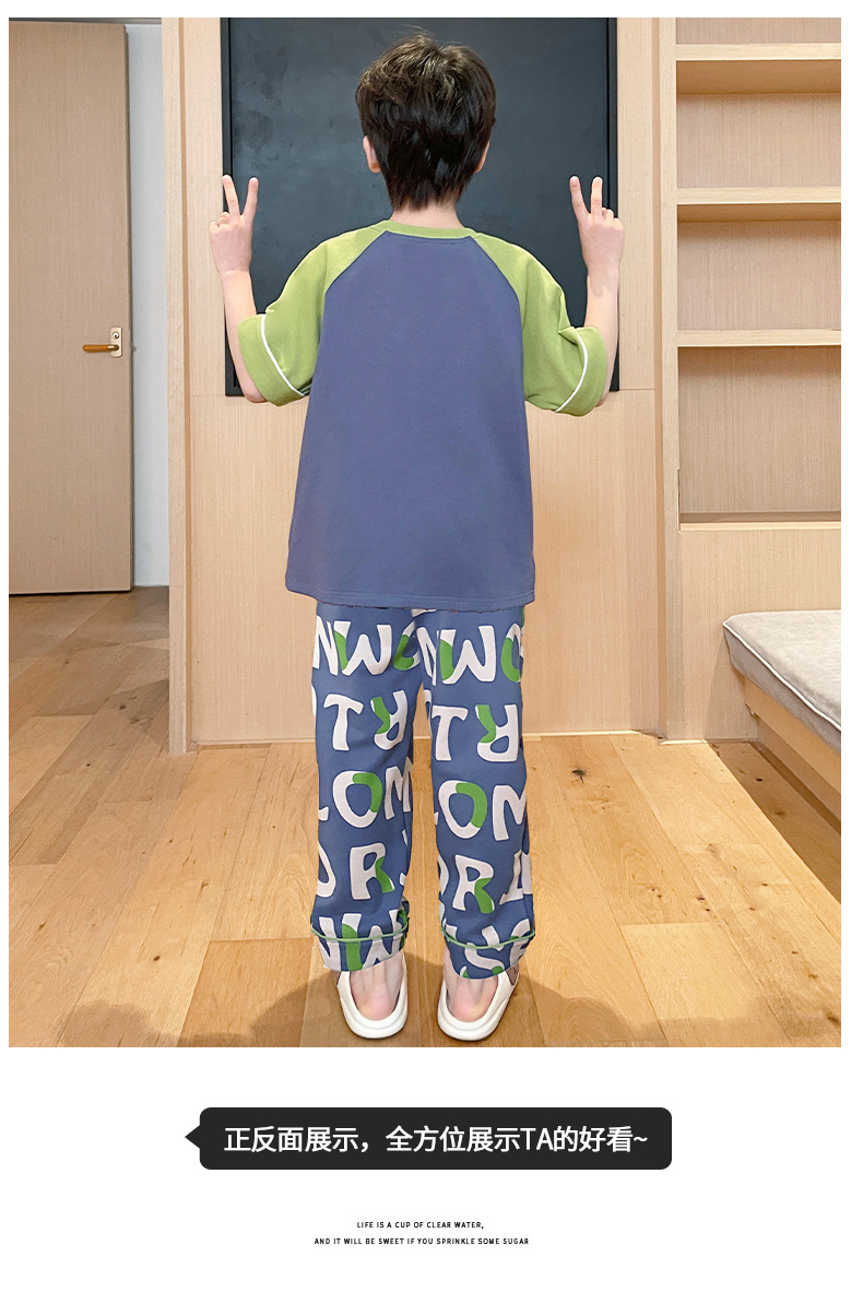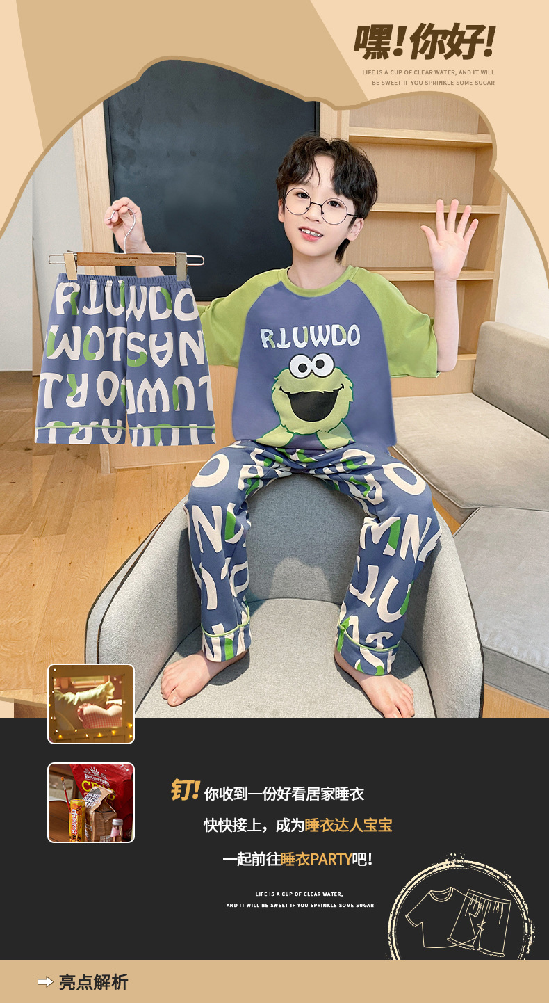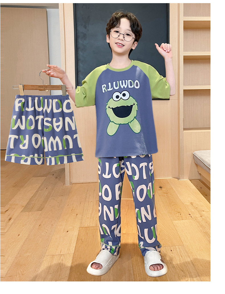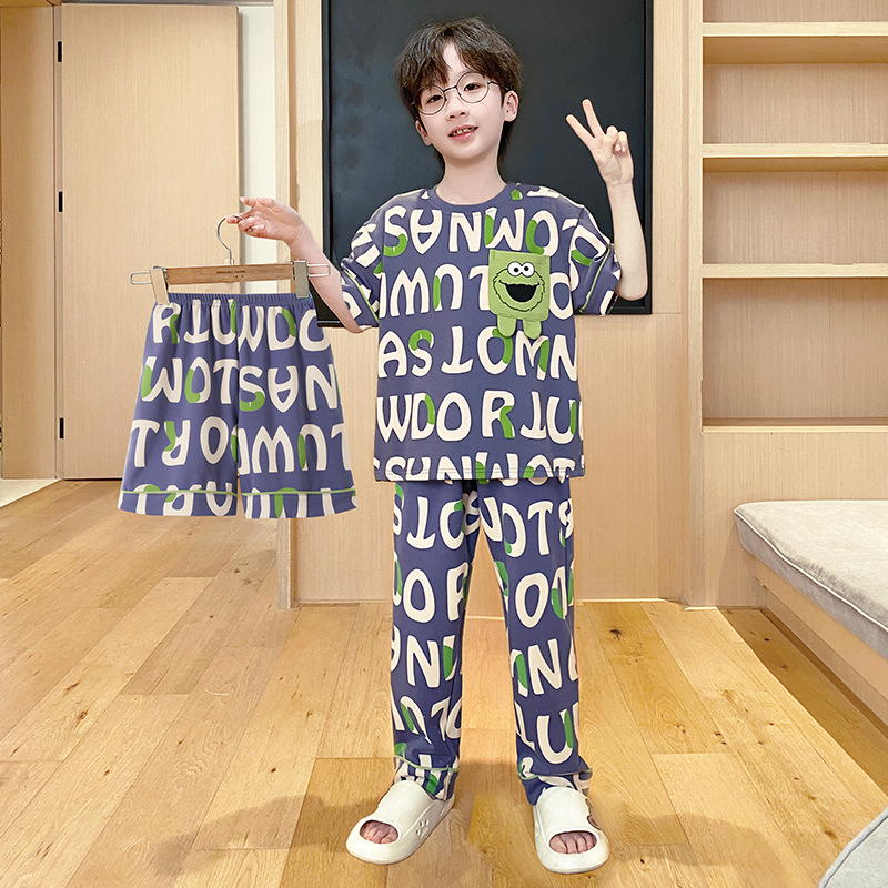 3피스 소년 잠옷 여름 순면 반팔 반바지 바지 여름 캐주얼 소년 가정복 세트스토어 가기