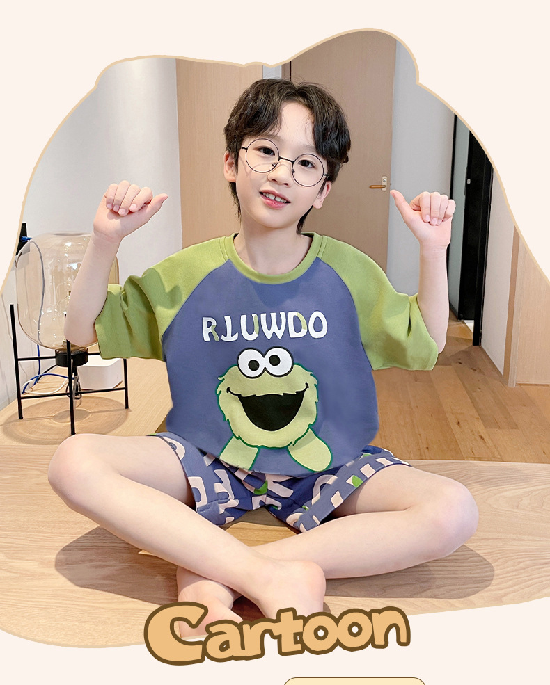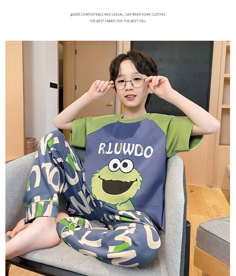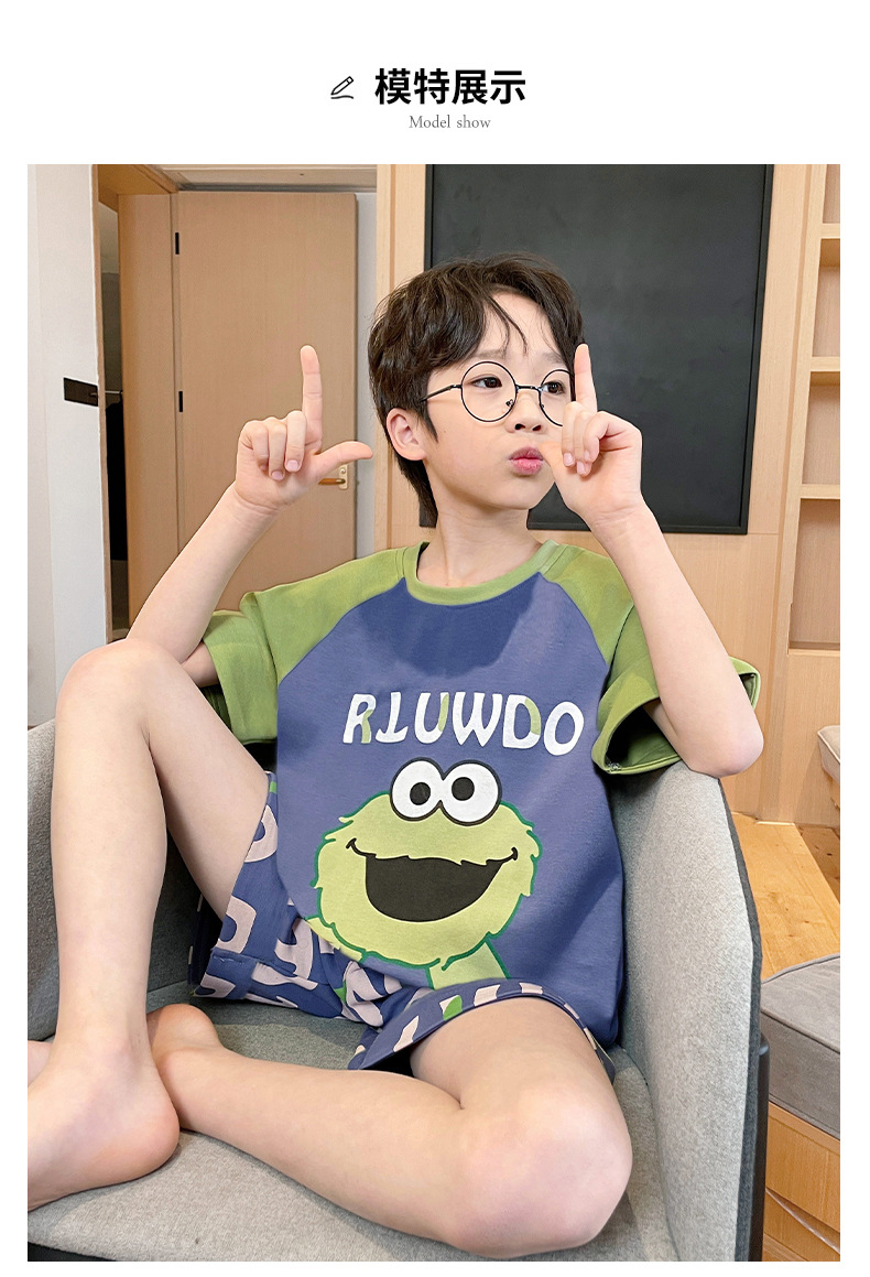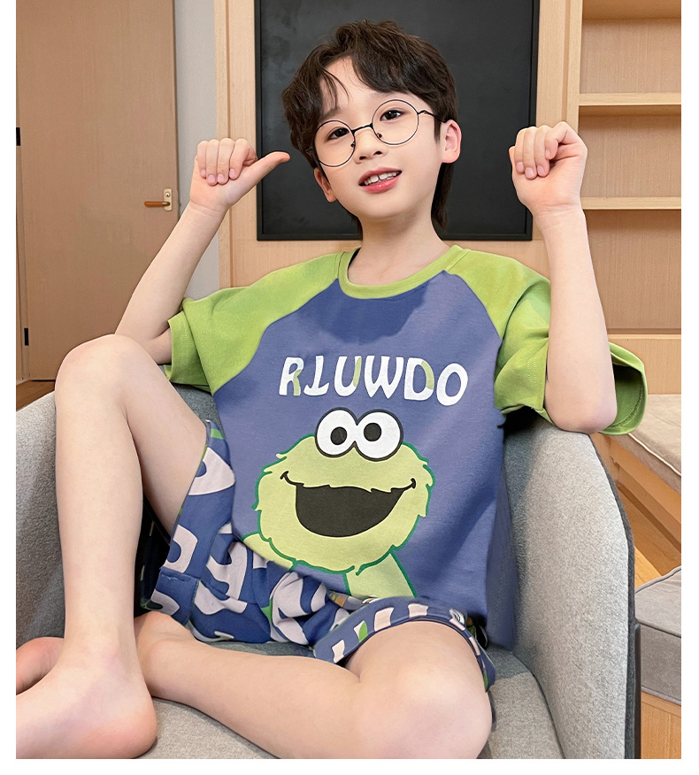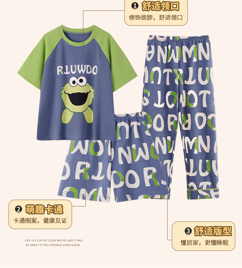 3피스 소년 잠옷 여름 순면 반팔 반바지 바지 여름 캐주얼 소년 가정복 세트스토어 가기