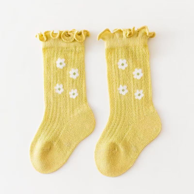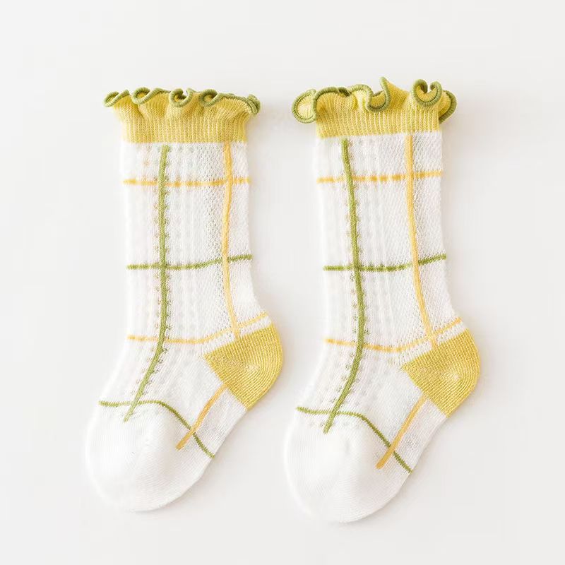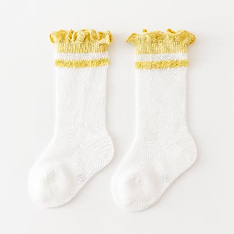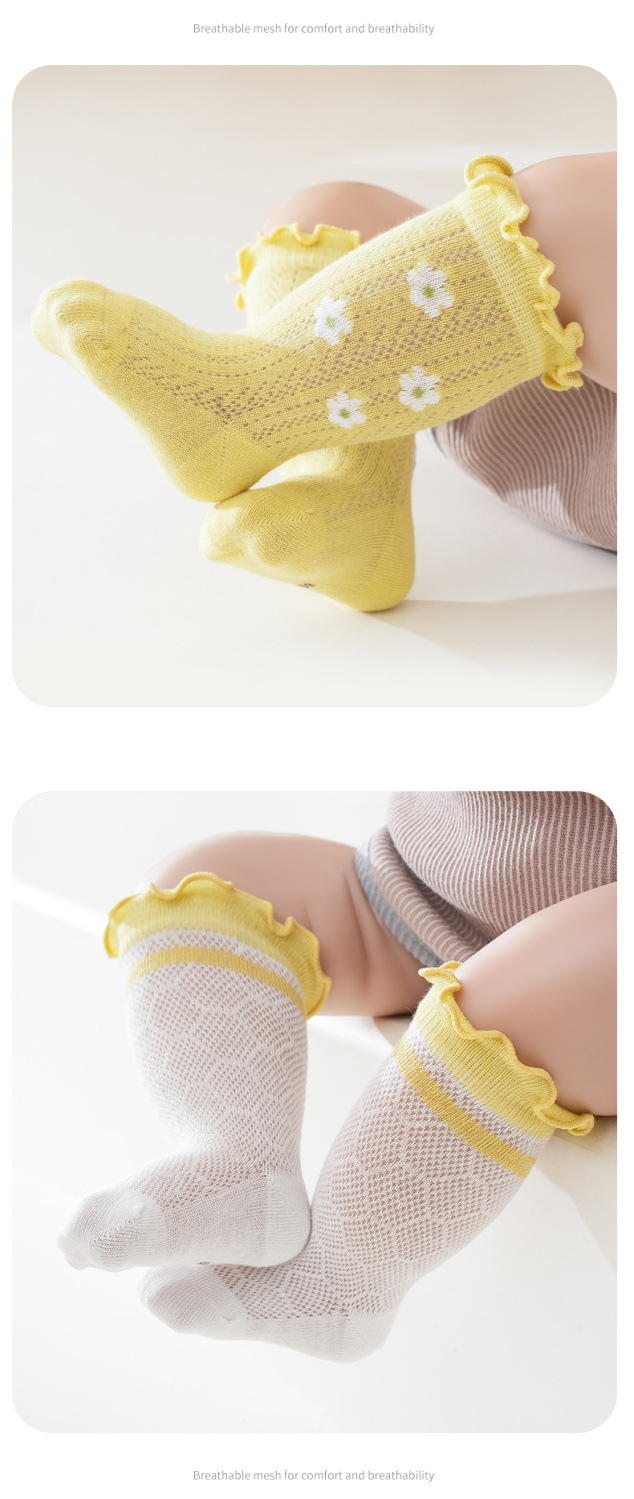 귀와 발을 가진 유아의 긴 양말 귀여운 통기성 클래스 봄과 여름을위한 메쉬 얇은 아기 양말