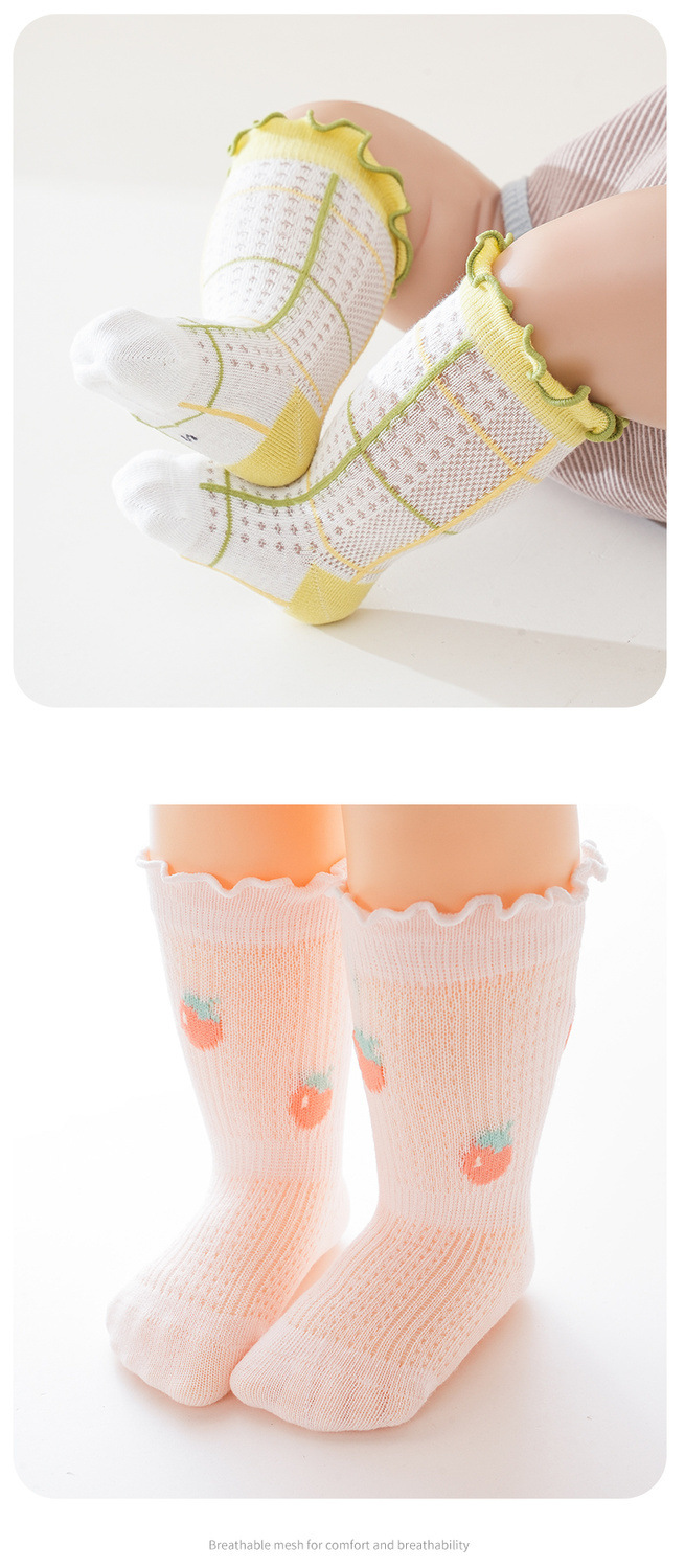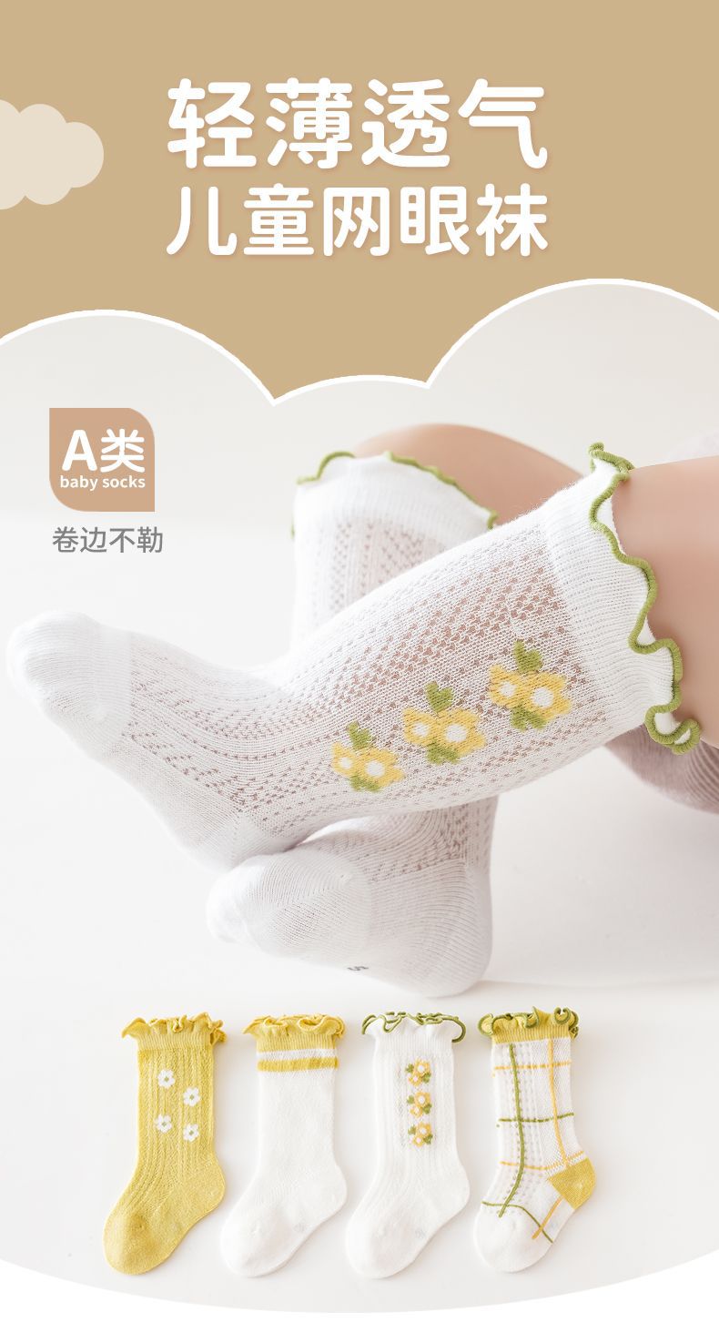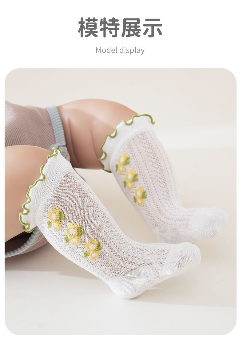 귀와 발을 가진 유아의 긴 양말 귀여운 통기성 클래스 봄과 여름을위한 메쉬 얇은 아기 양말스토어 가기