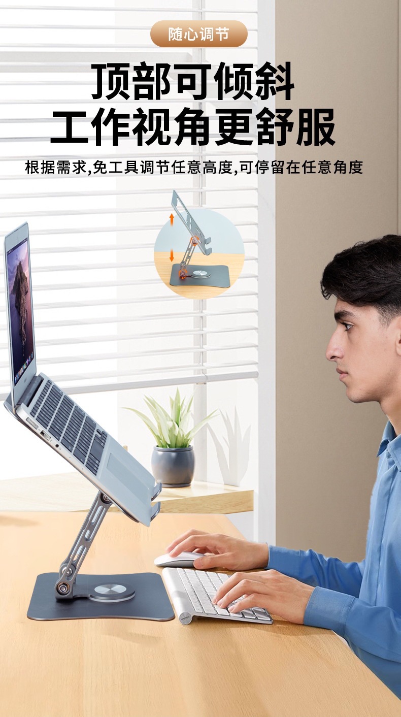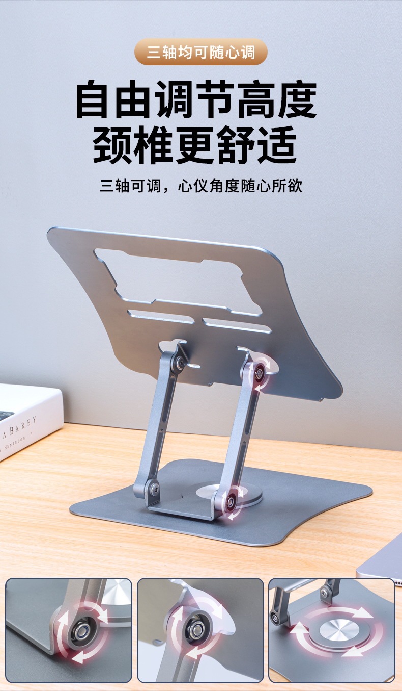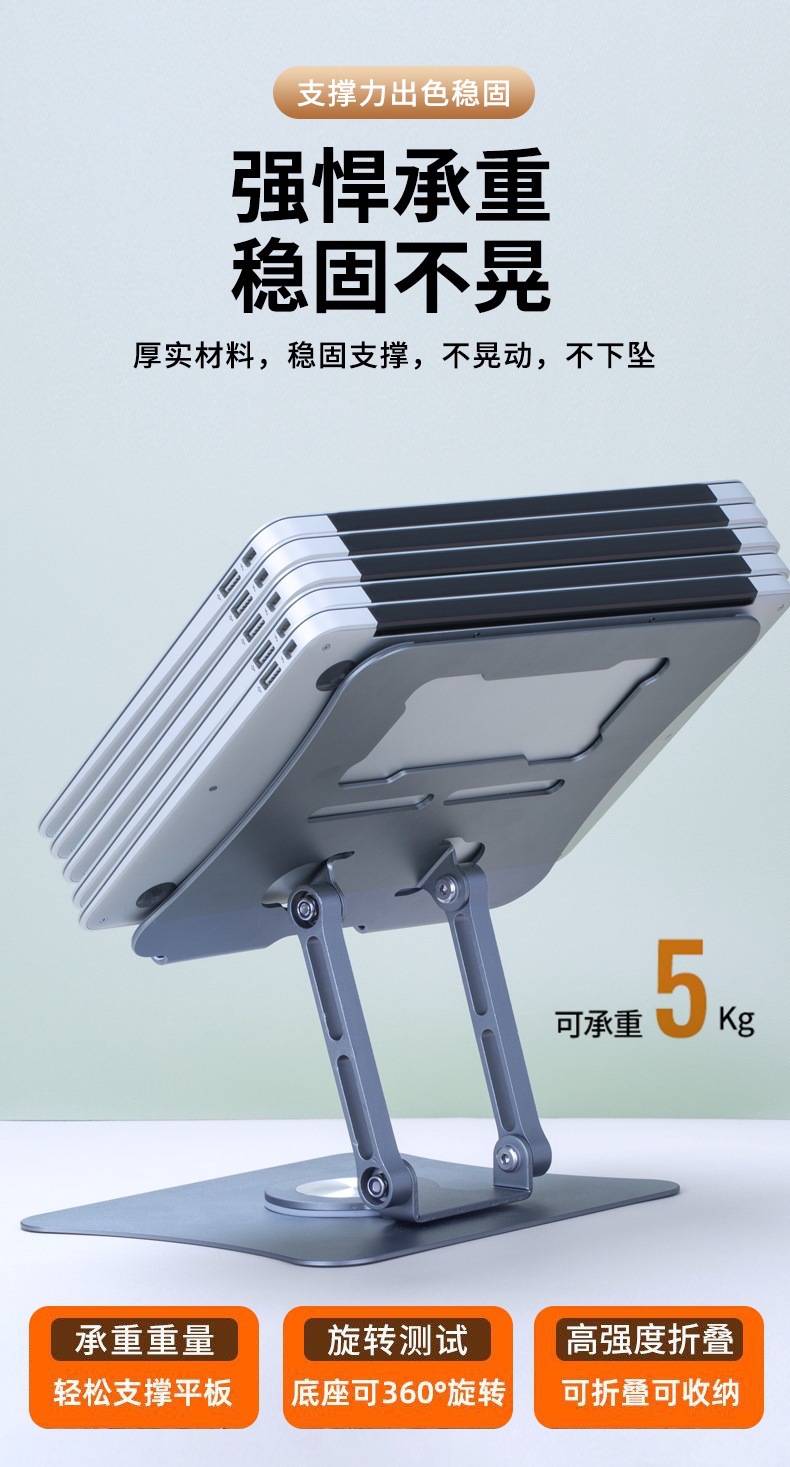 뜨거운 판매 알루미늄 합금 데스크탑 노트북 스탠드 접이식 확장 360 ° 회전식 평면 테이블 스탠드