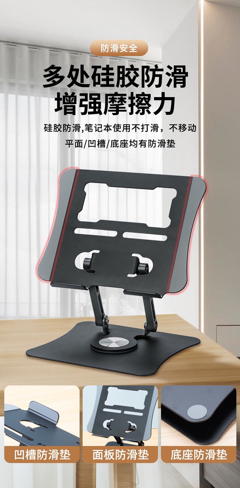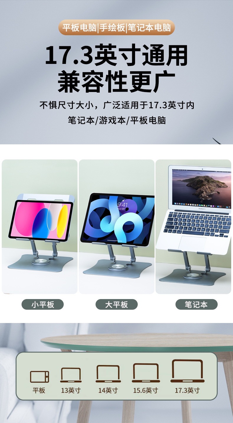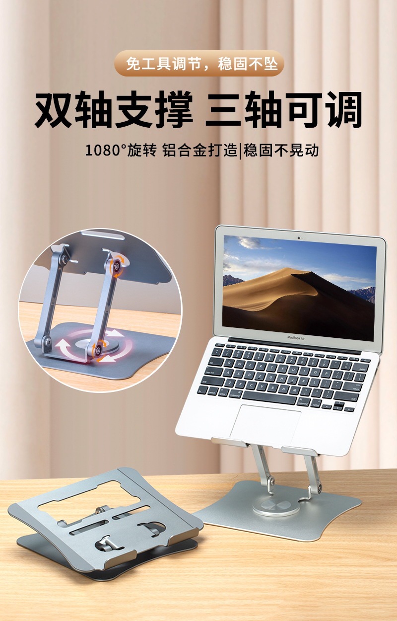 뜨거운 판매 알루미늄 합금 데스크탑 노트북 스탠드 접이식 확장 360 ° 회전식 평면 테이블 스탠드