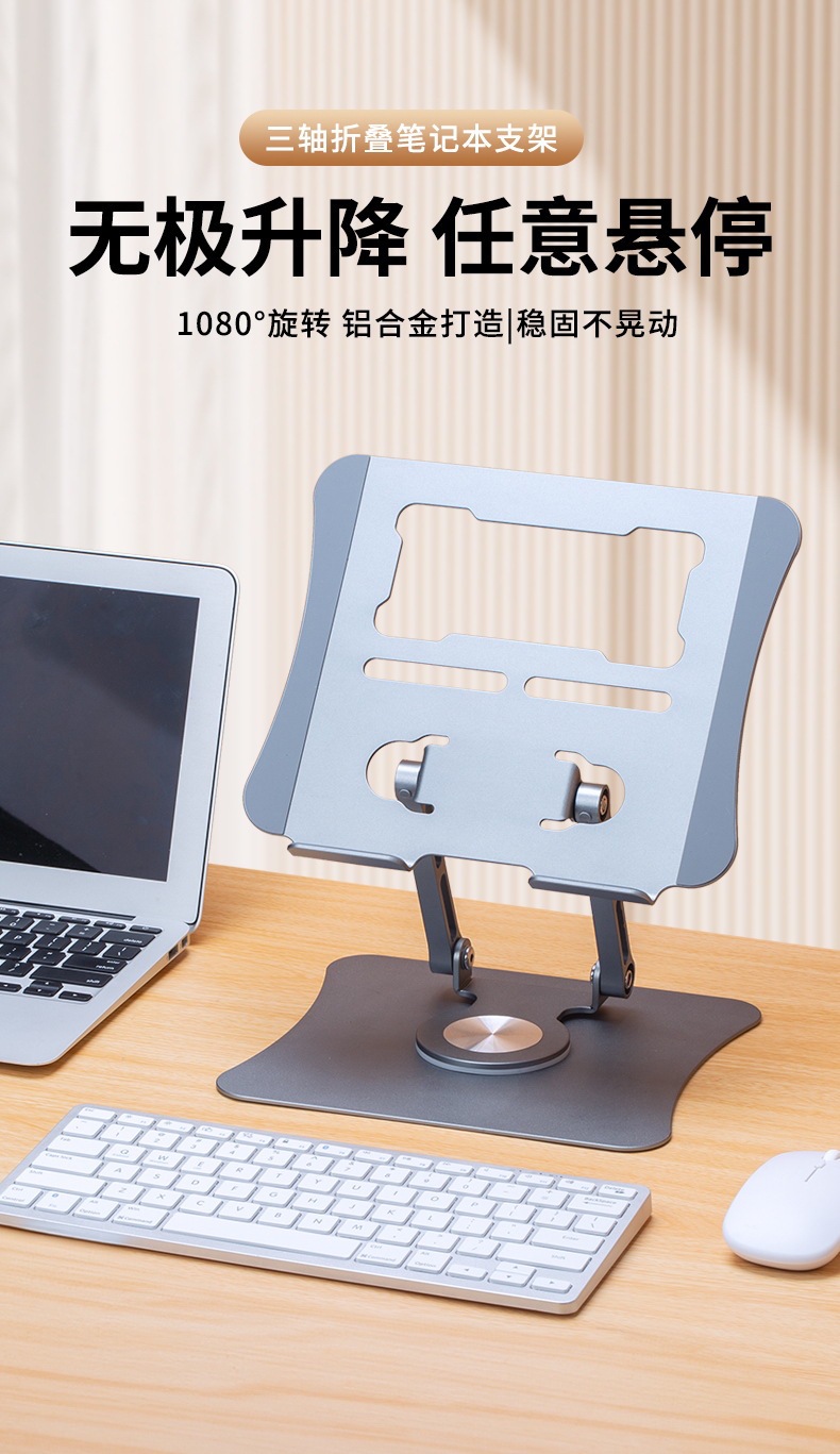 뜨거운 판매 알루미늄 합금 데스크탑 노트북 스탠드 접이식 확장 360 ° 회전식 평면 테이블 스탠드스토어 가기