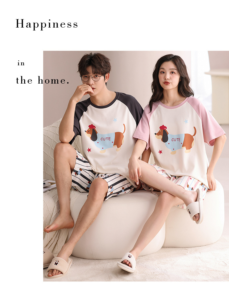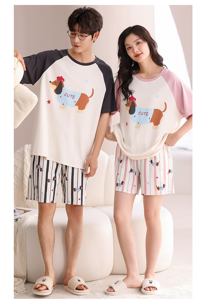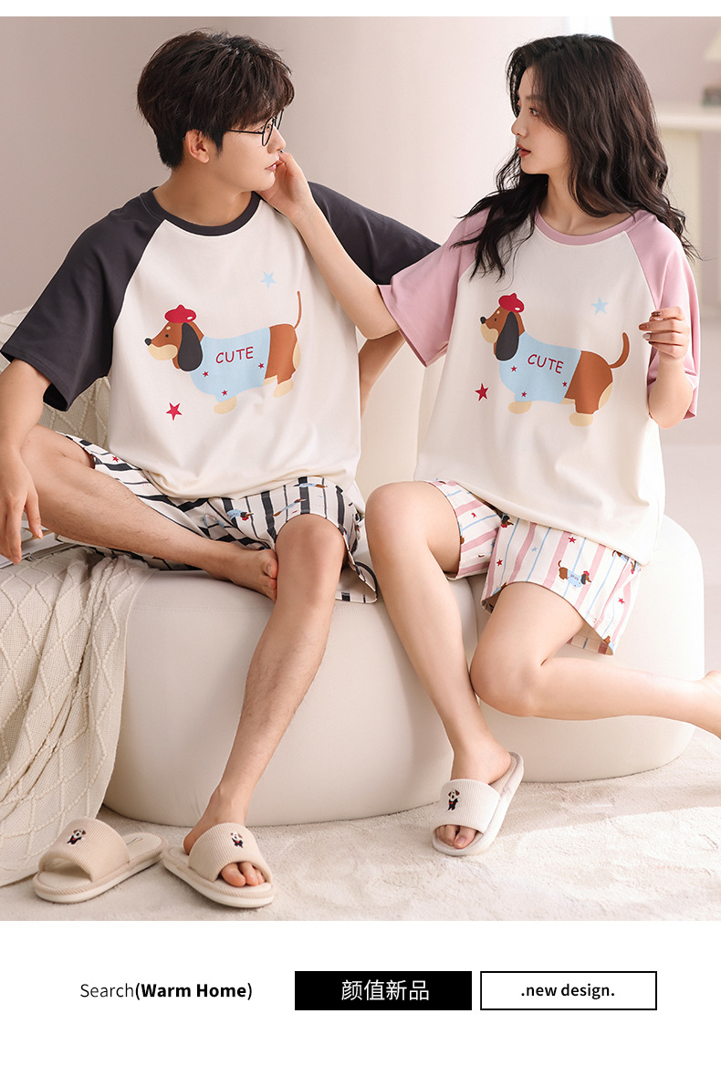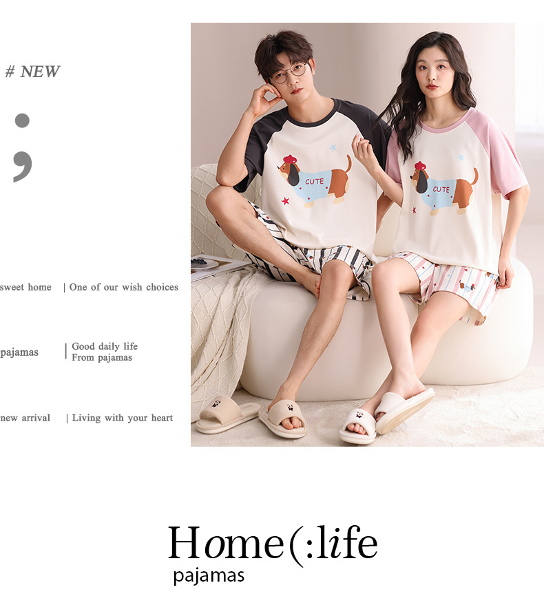 커플 잠옷 여름 100% 면 여성 한국 스타일 정장 반팔 반바지 캐주얼 만화 귀여운 남성 가정복