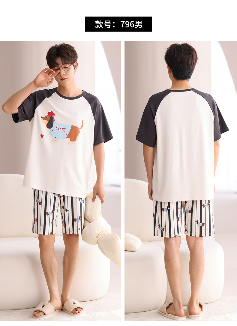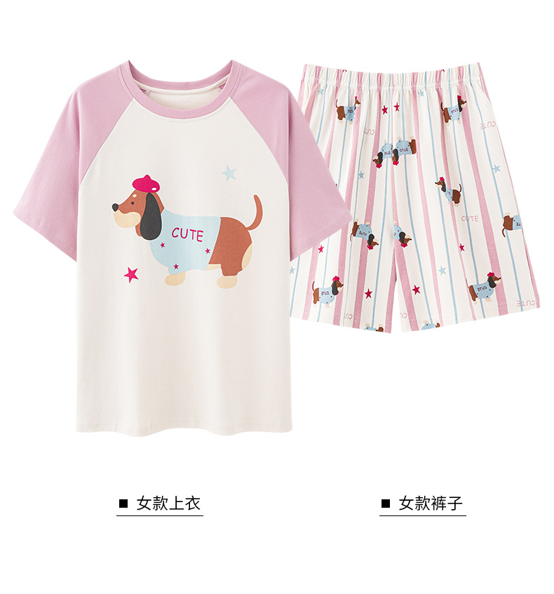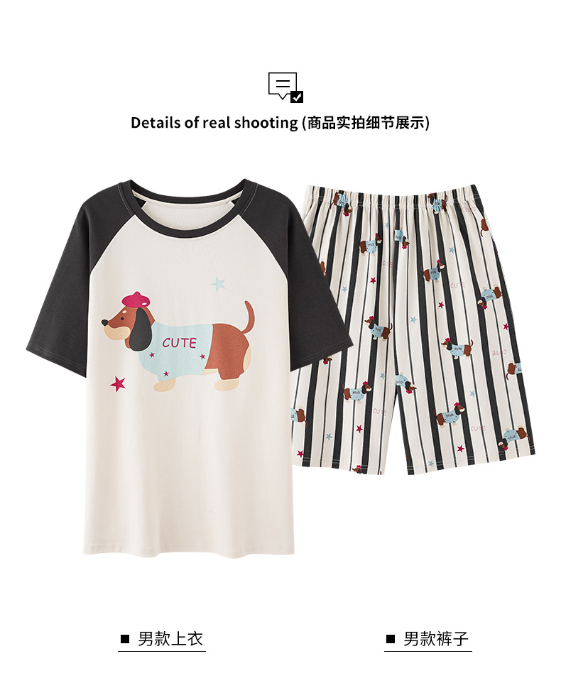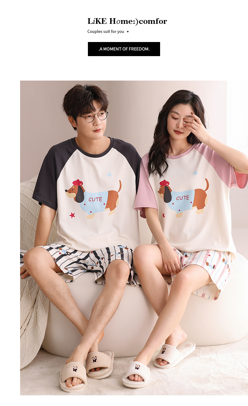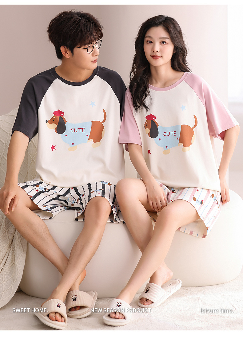 커플 잠옷 여름 100% 면 여성 한국 스타일 정장 반팔 반바지 캐주얼 만화 귀여운 남성 가정복