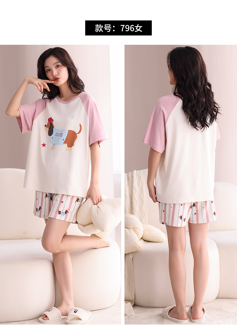 커플 잠옷 여름 100% 면 여성 한국 스타일 정장 반팔 반바지 캐주얼 만화 귀여운 남성 가정복스토어 가기