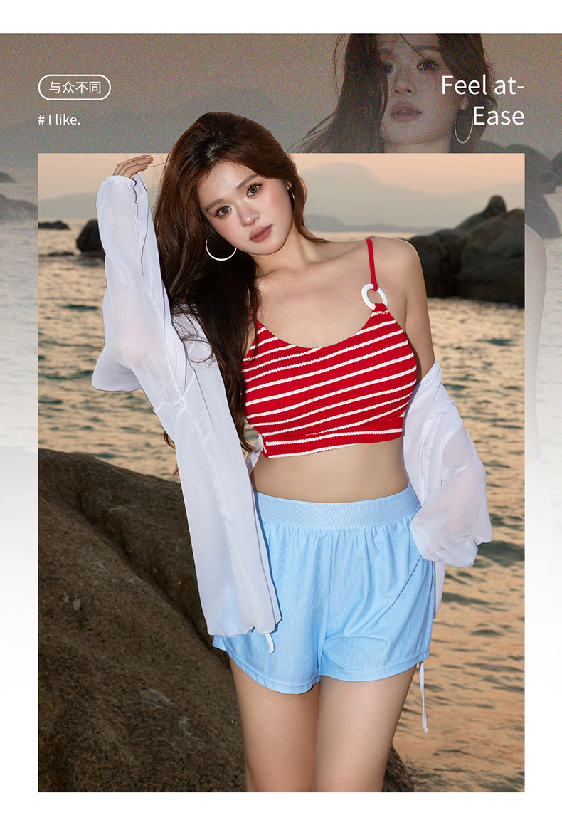 여성용 스플릿 수영복 2025 새로운 인기 온천 4피스 긴팔 블라우스 자외선 차단 비치 비키니