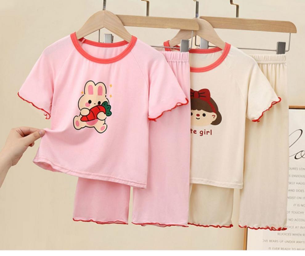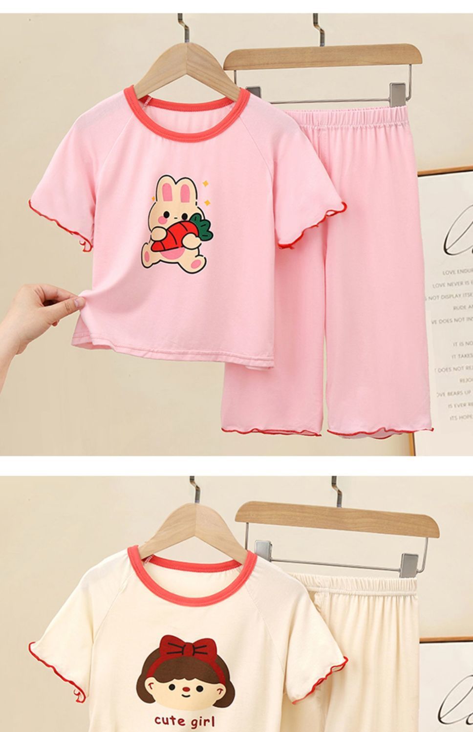 여자 아이스 실크 통기성 잠옷 어린이 얇은 느슨한 레이스 가정 의류 아기 소녀 귀여운 반팔 여름 정장스토어 가기