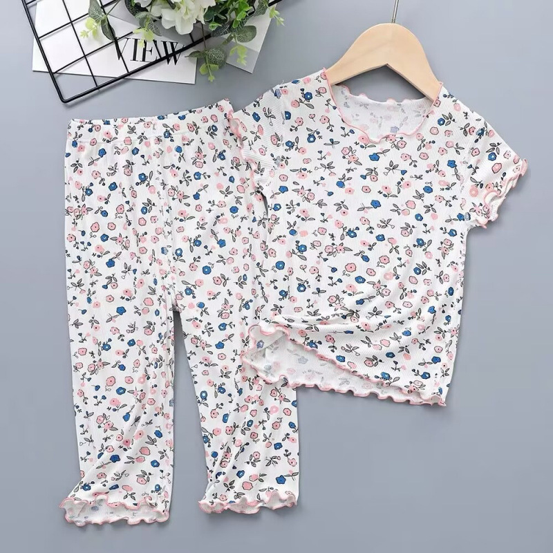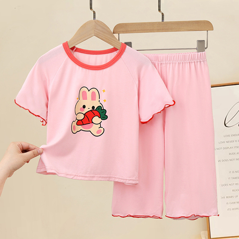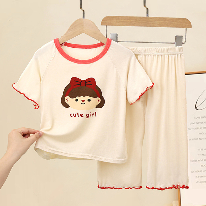 여자 아이스 실크 통기성 잠옷 어린이 얇은 느슨한 레이스 가정 의류 아기 소녀 귀여운 반팔 여름 정장