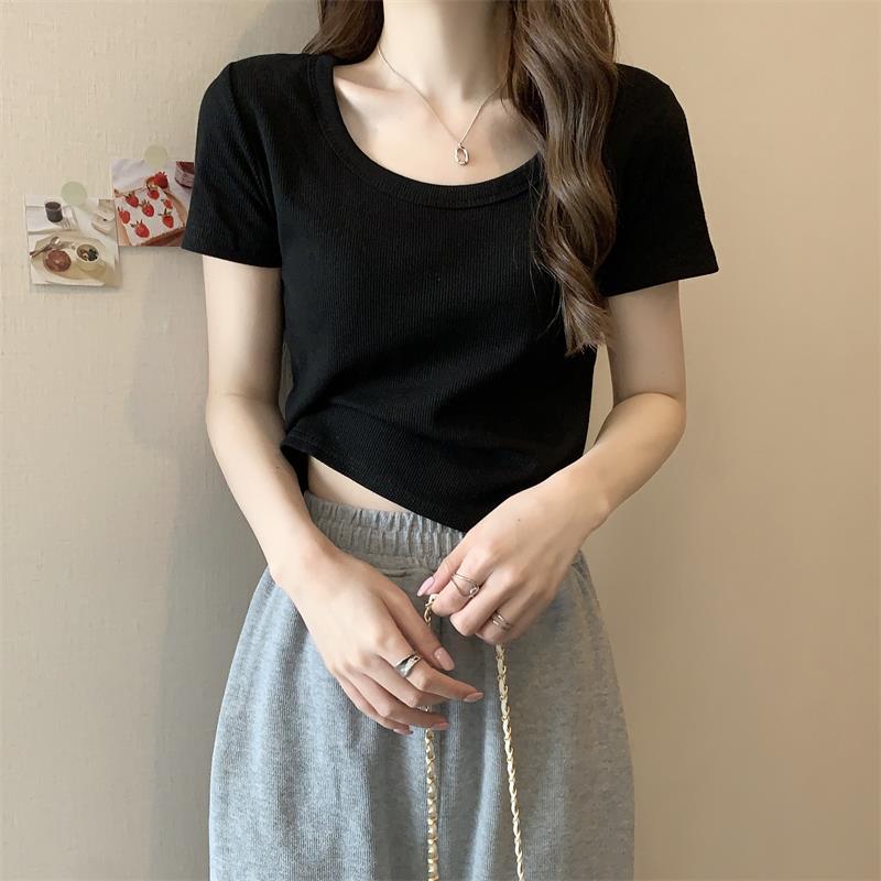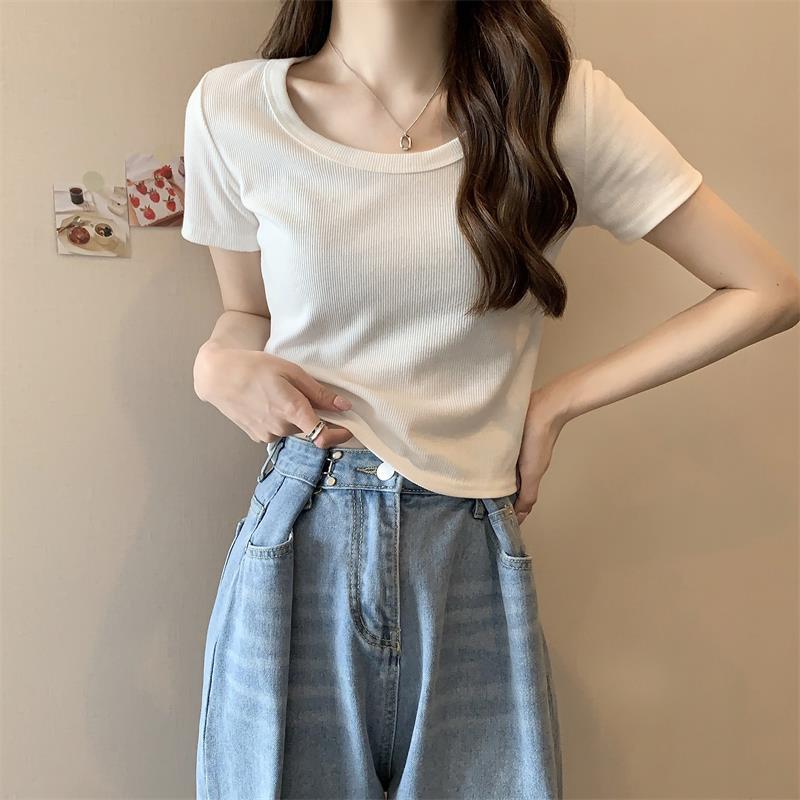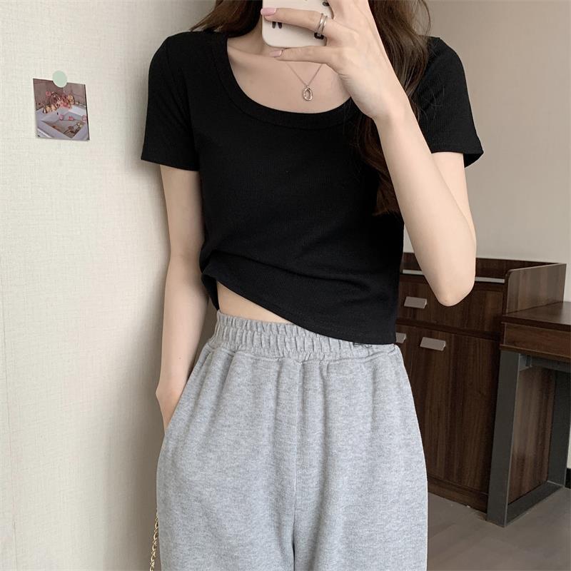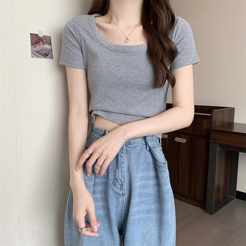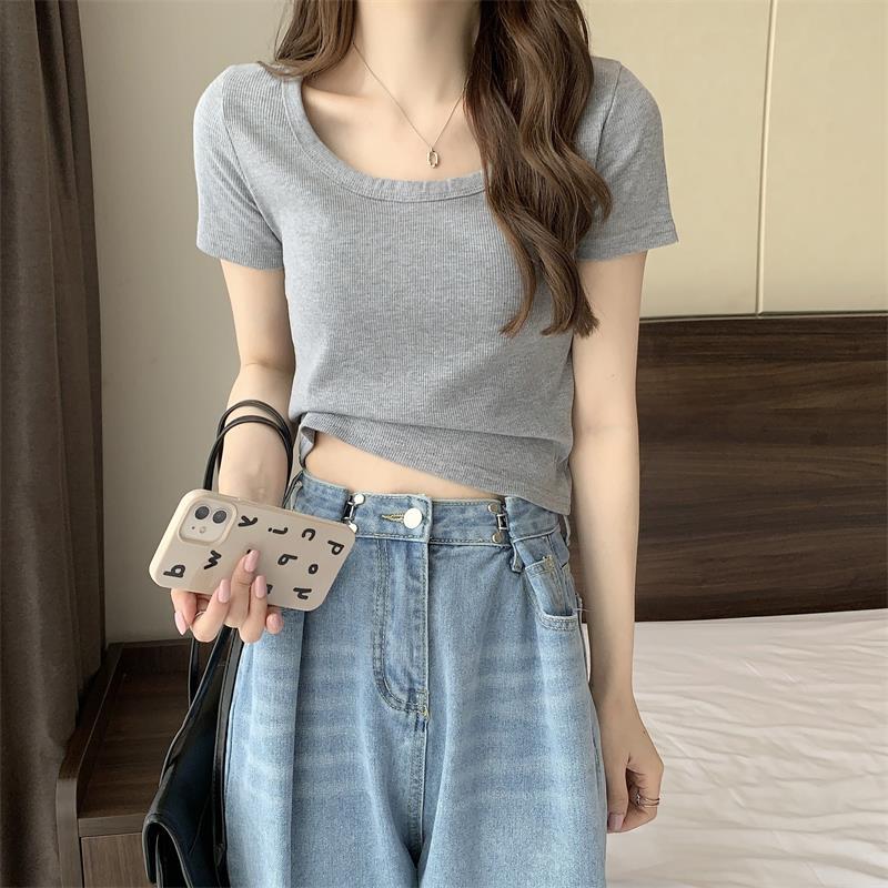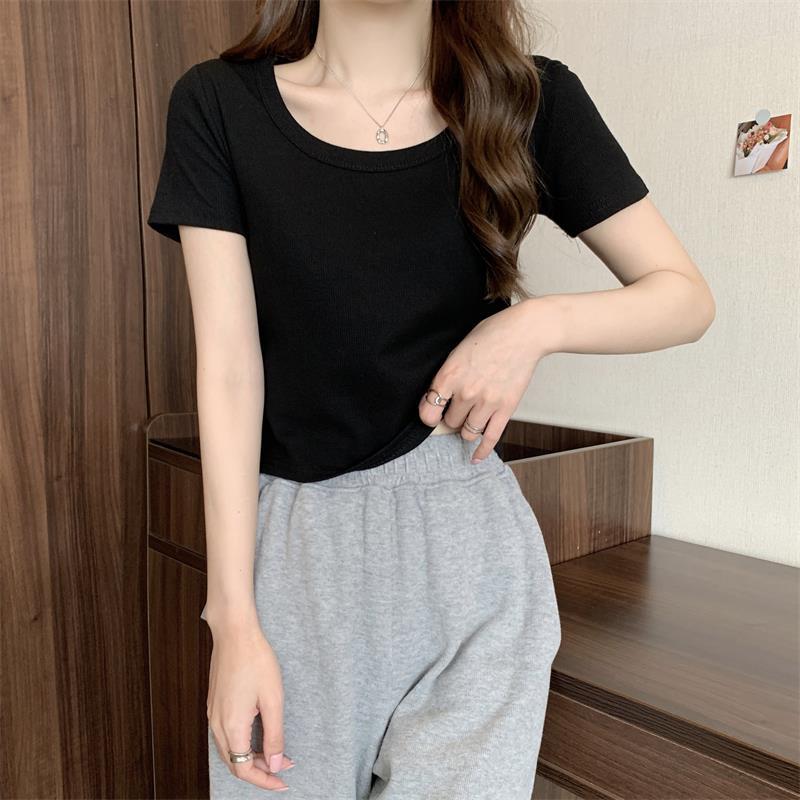 여성용 다재다능하고 편안한 이너 탑 봄, 여름, 가을 신상 스퀘어 넥 바닥 셔츠 캐주얼 스레드 반팔 티셔츠