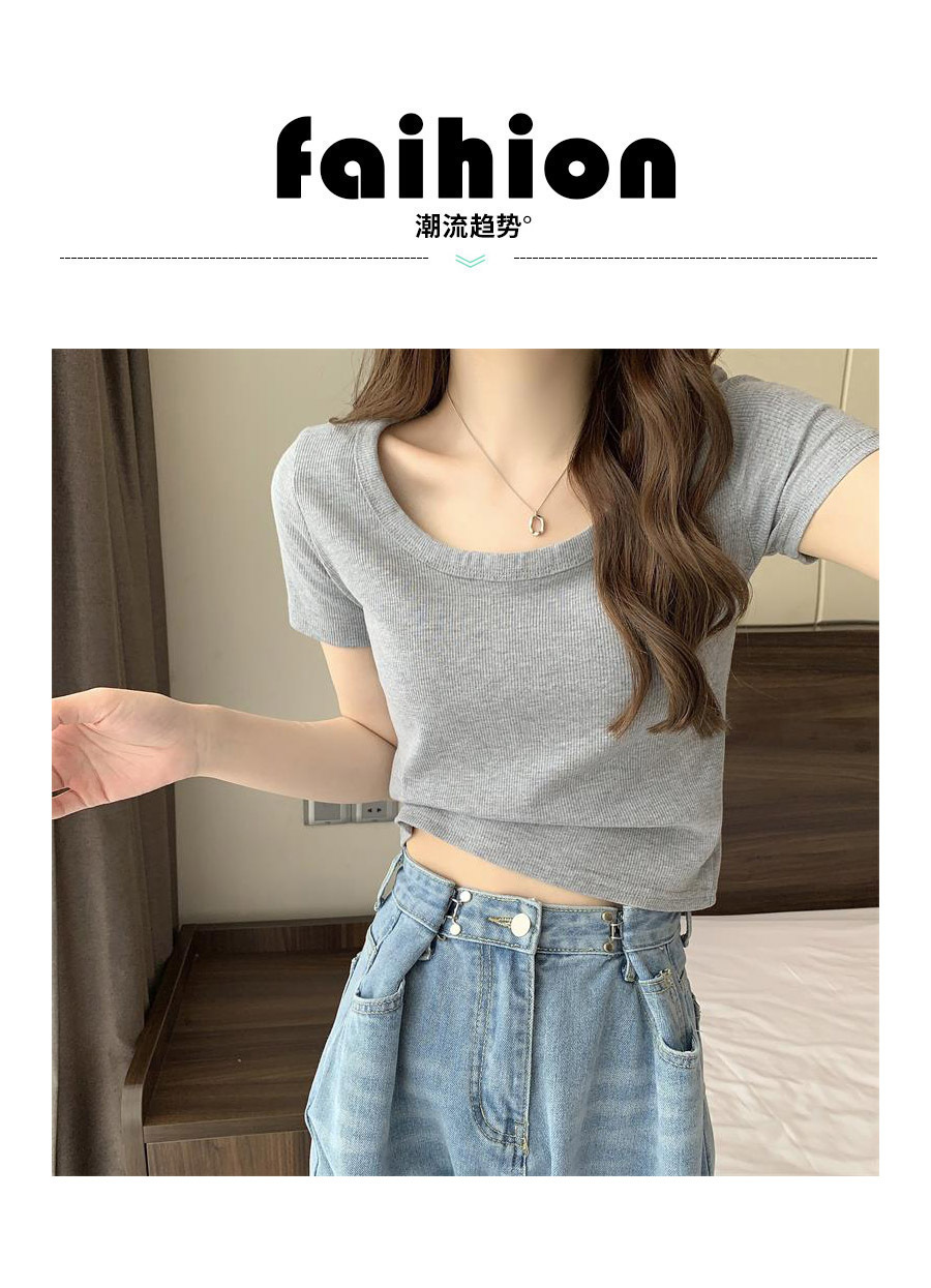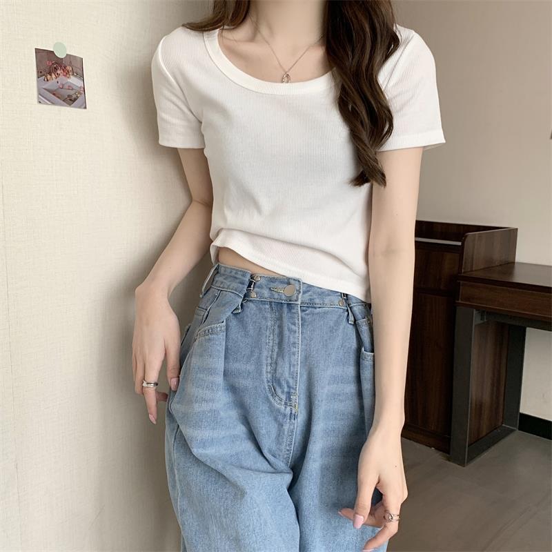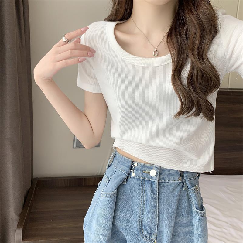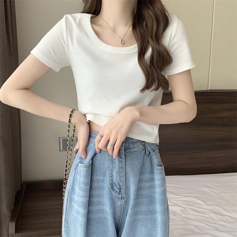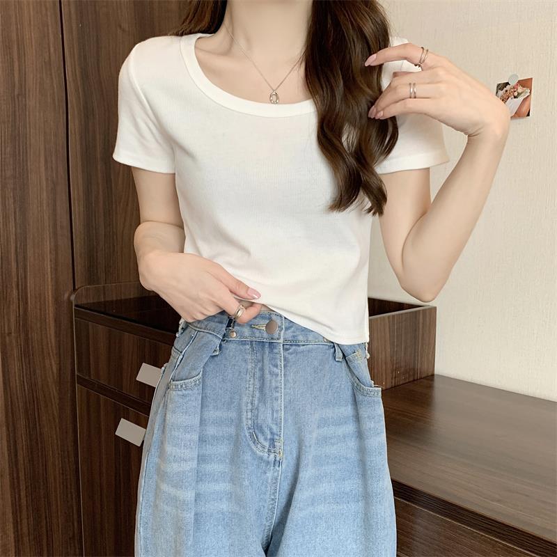 여성용 다재다능하고 편안한 이너 탑 봄, 여름, 가을 신상 스퀘어 넥 바닥 셔츠 캐주얼 스레드 반팔 티셔츠