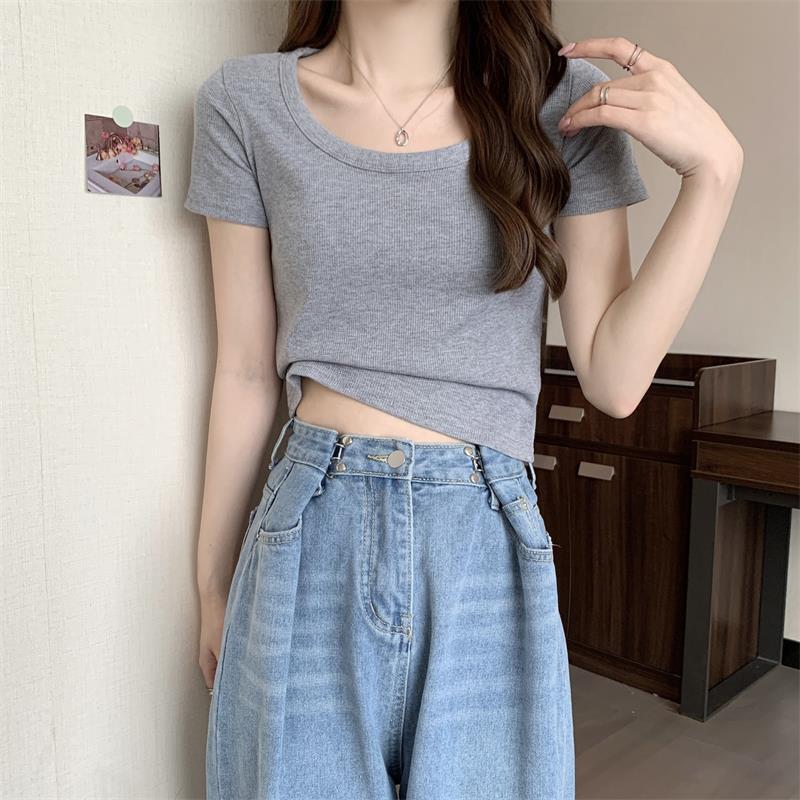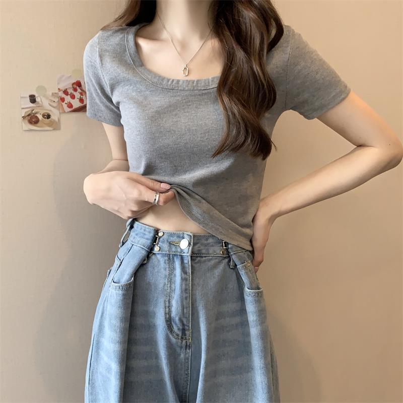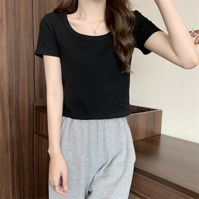여성용 다재다능하고 편안한 이너 탑 봄, 여름, 가을 신상 스퀘어 넥 바닥 셔츠 캐주얼 스레드 반팔 티셔츠스토어 가기