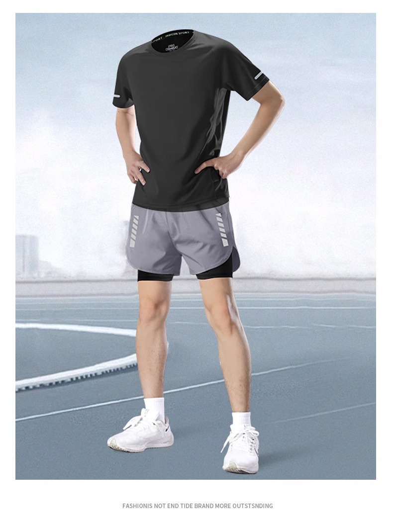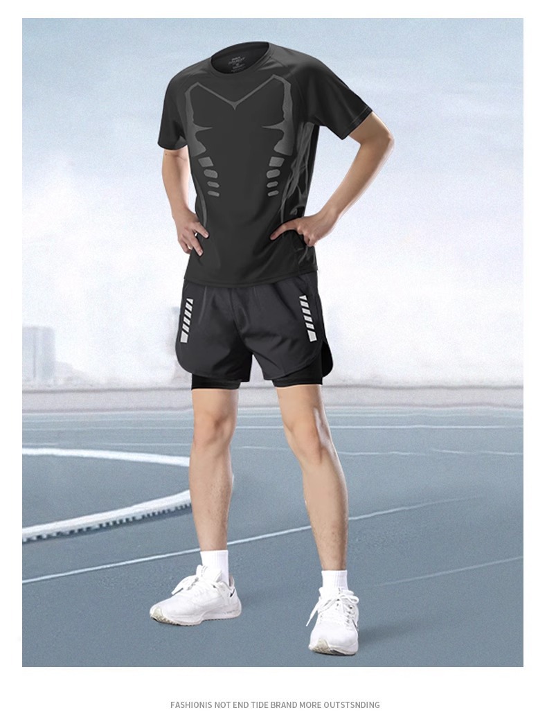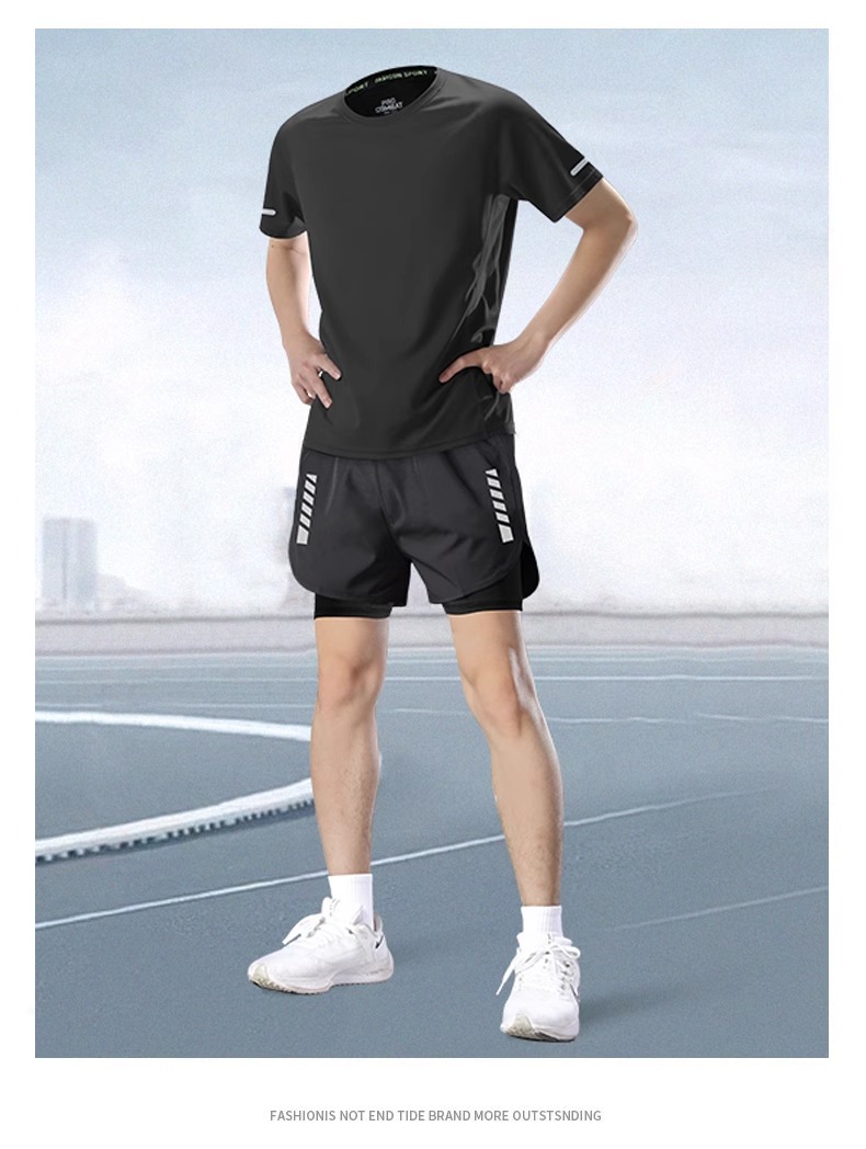 러닝 남성 스포츠 슈트 마라톤 전문 여름 반팔 반바지 장비 속건성 트레이닝 피트니스 의류