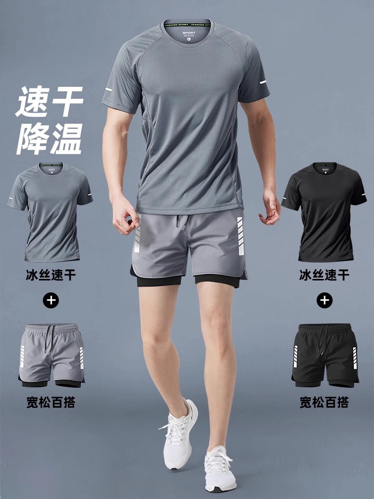 러닝 남성 스포츠 슈트 마라톤 전문 여름 반팔 반바지 장비 속건성 트레이닝 피트니스 의류스토어 가기