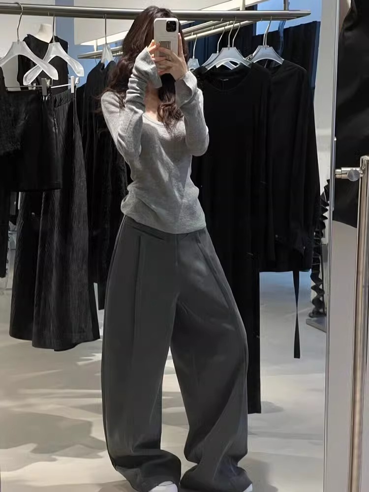 여성을위한 달콤한 핫 소녀 슬림 긴팔 스웨터 봄, 여름 얇은 틈새 독특한 세련된 솔리드 컬러 로우 넥 바닥 패션