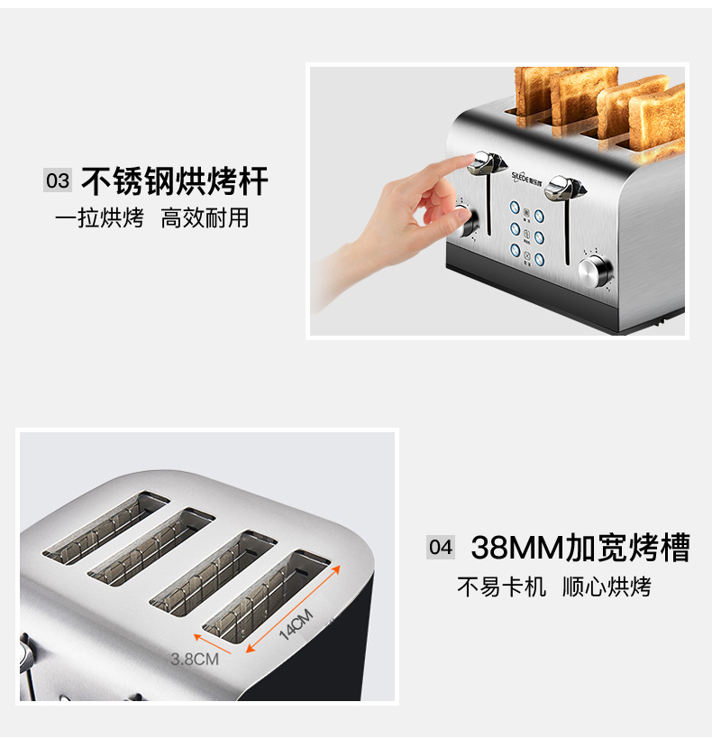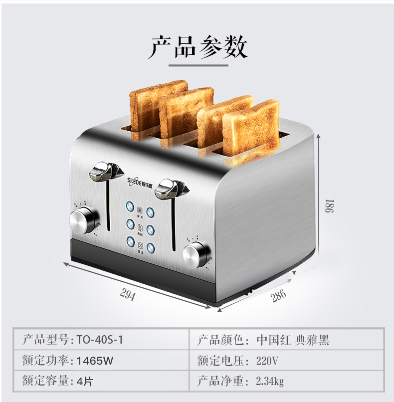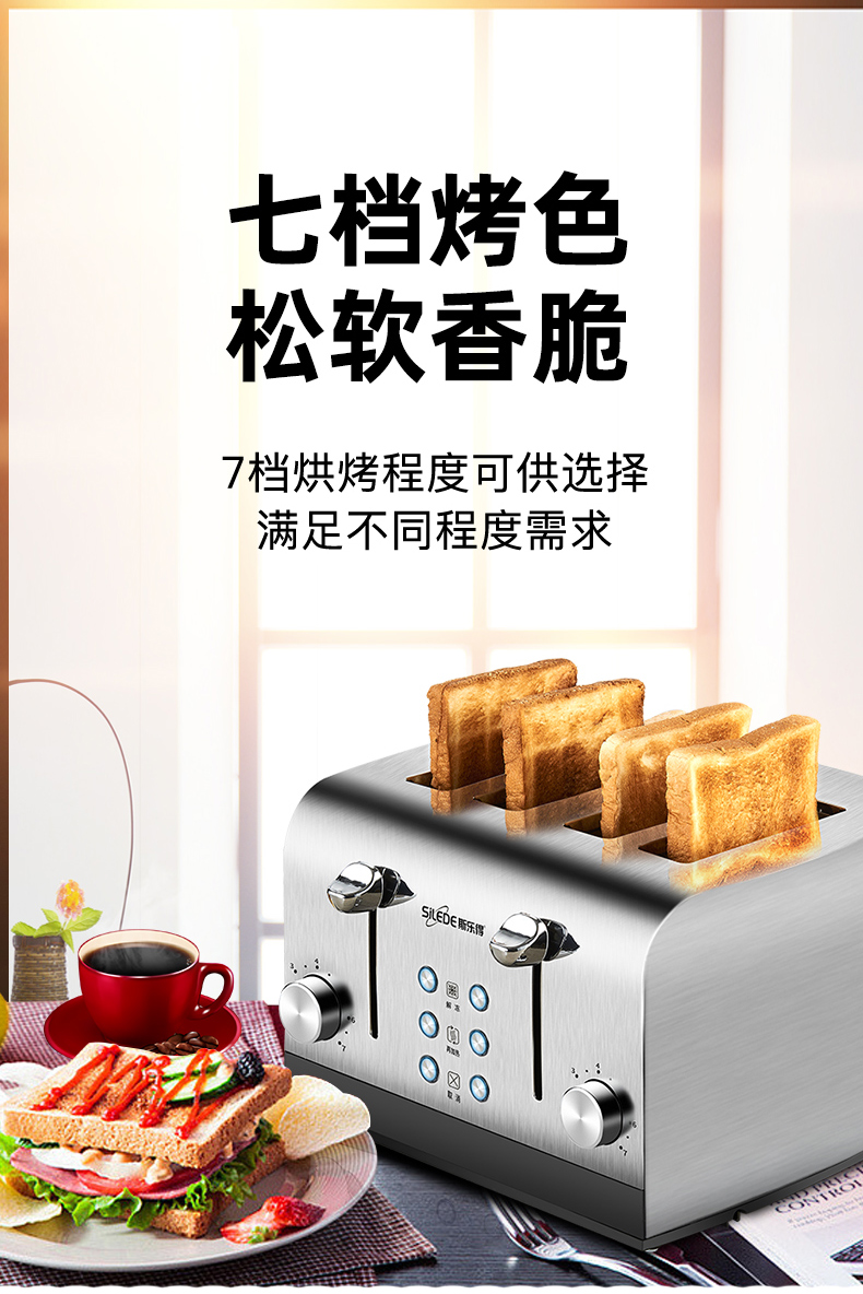Silede 수출 영국 토스터 홈 상업용 호텔 토스터 4 조각 조식 침 드라이버 다기능스토어 가기