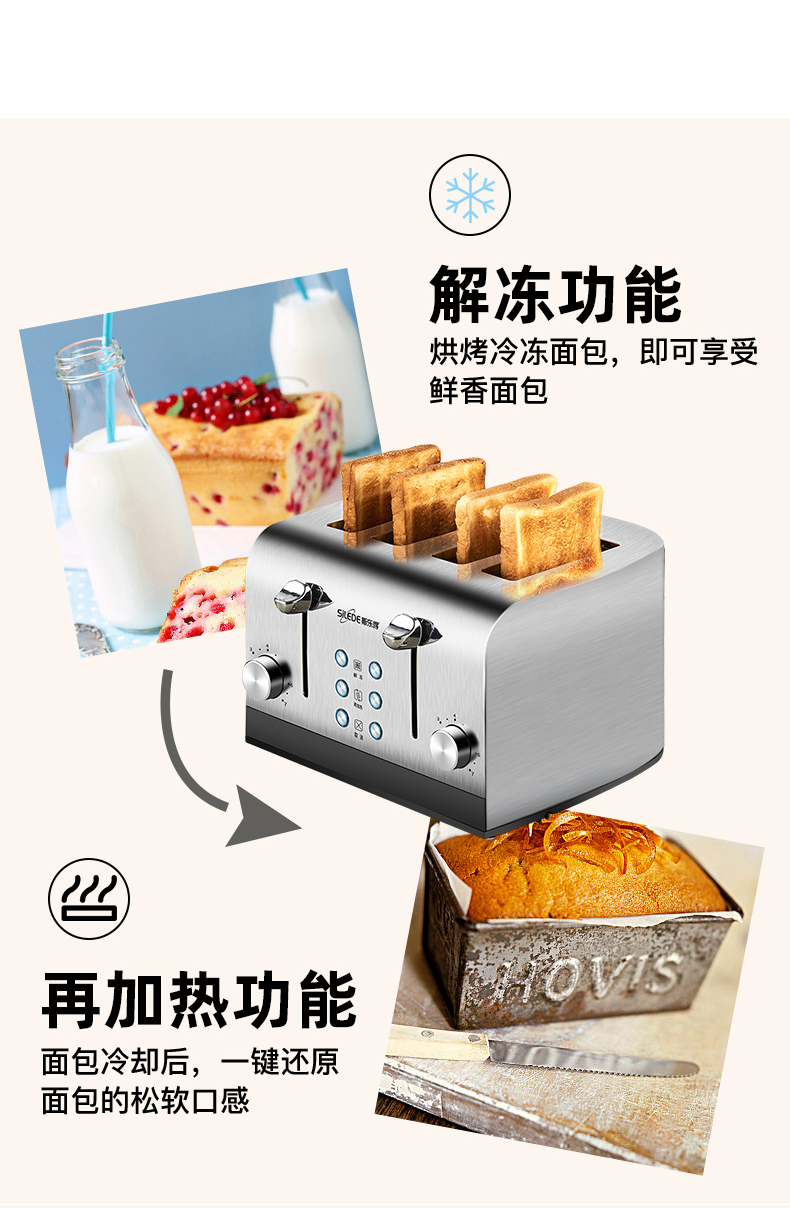 Silede 수출 영국 토스터 홈 상업용 호텔 토스터 4 조각 조식 침 드라이버 다기능