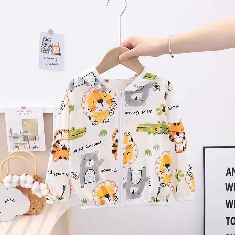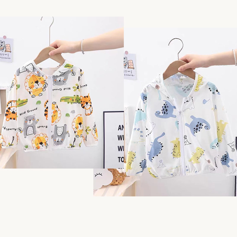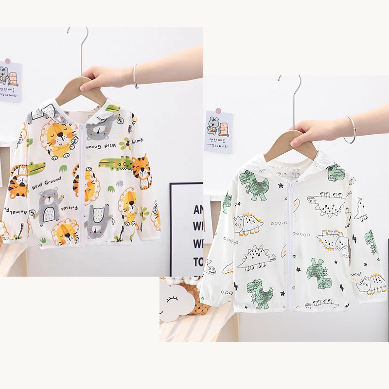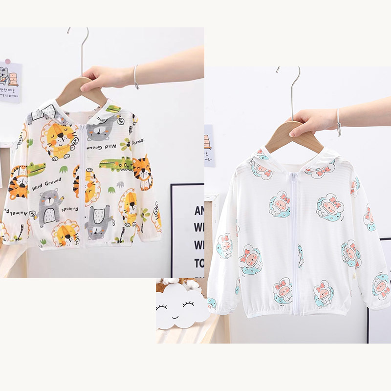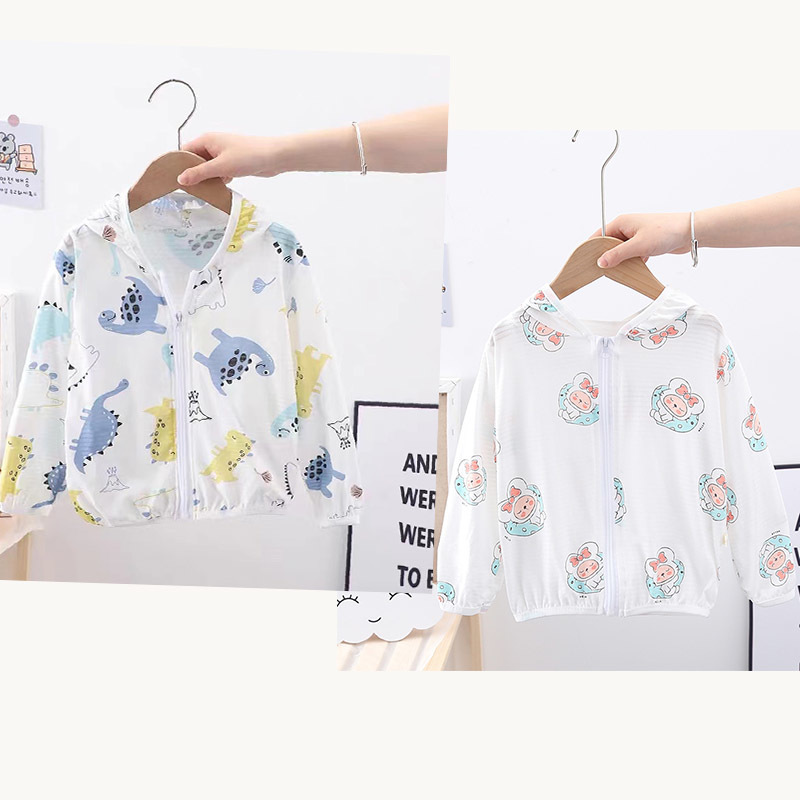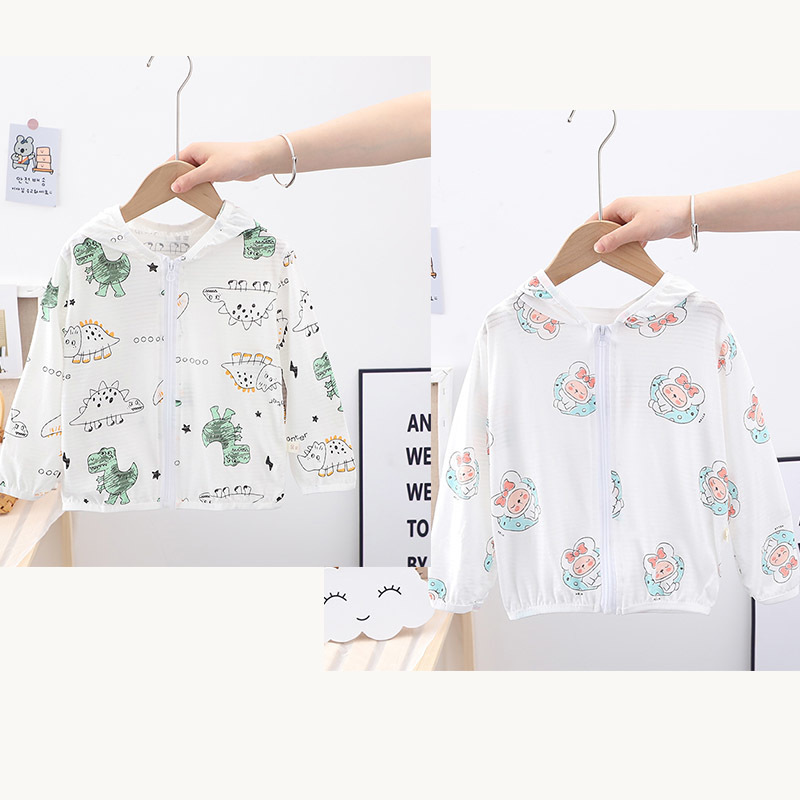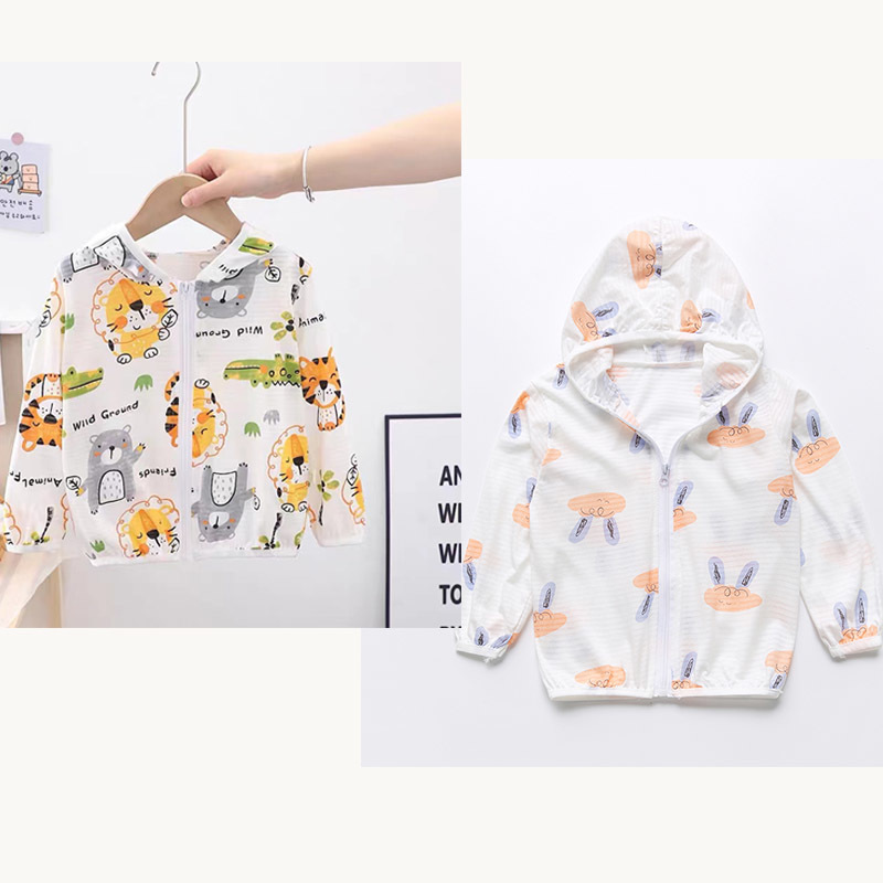 순수 코튼 어린이 태양 보호 의류 에어컨 셔츠 얼음 실크 코트 아기 통기성 후드 의류 소년과 소녀스토어 가기