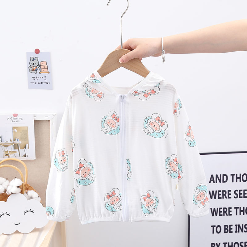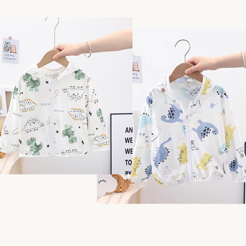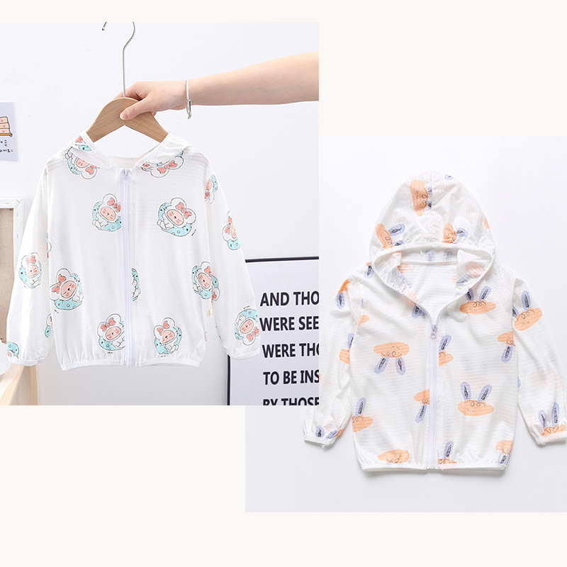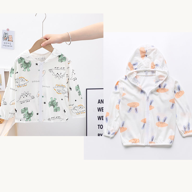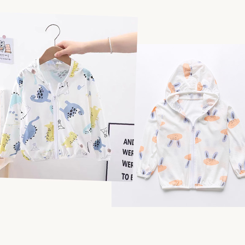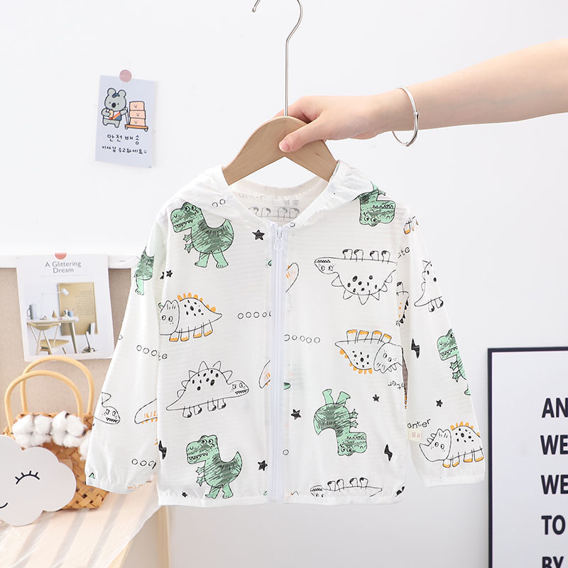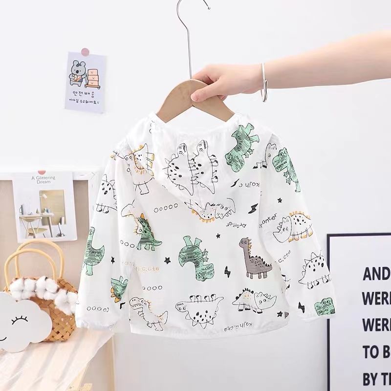 순수 코튼 어린이 태양 보호 의류 에어컨 셔츠 얼음 실크 코트 아기 통기성 후드 의류 소년과 소녀스토어 가기