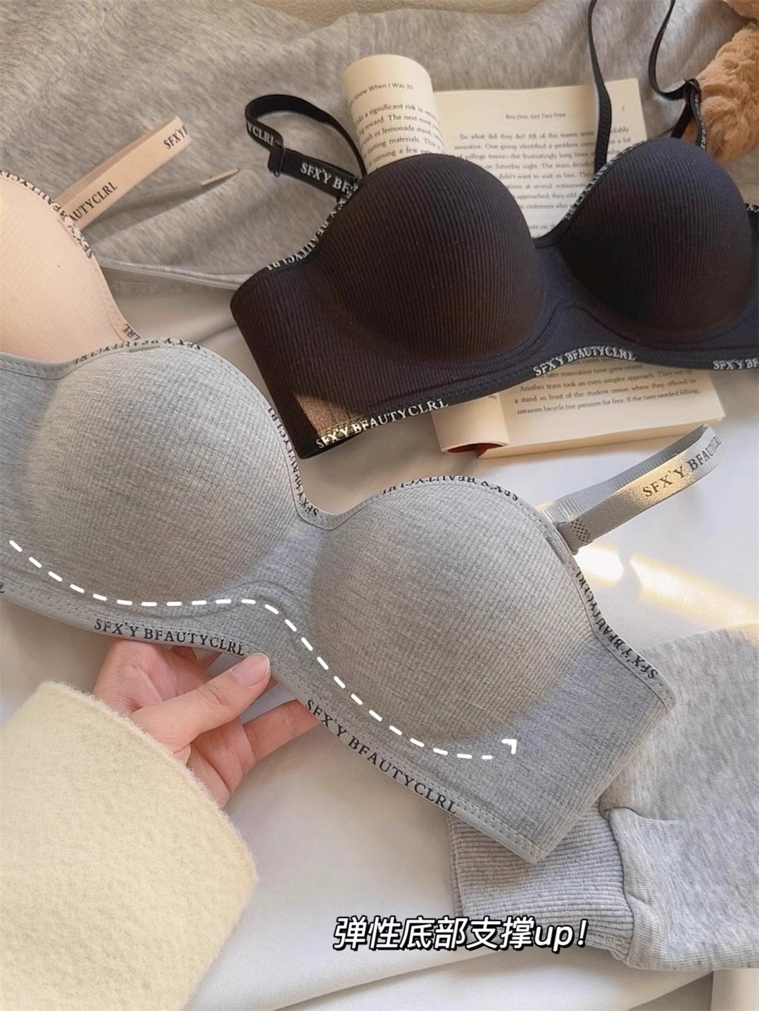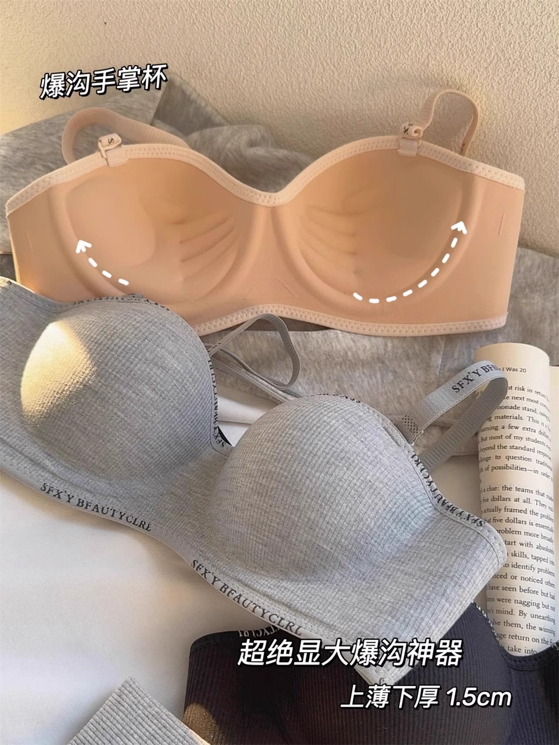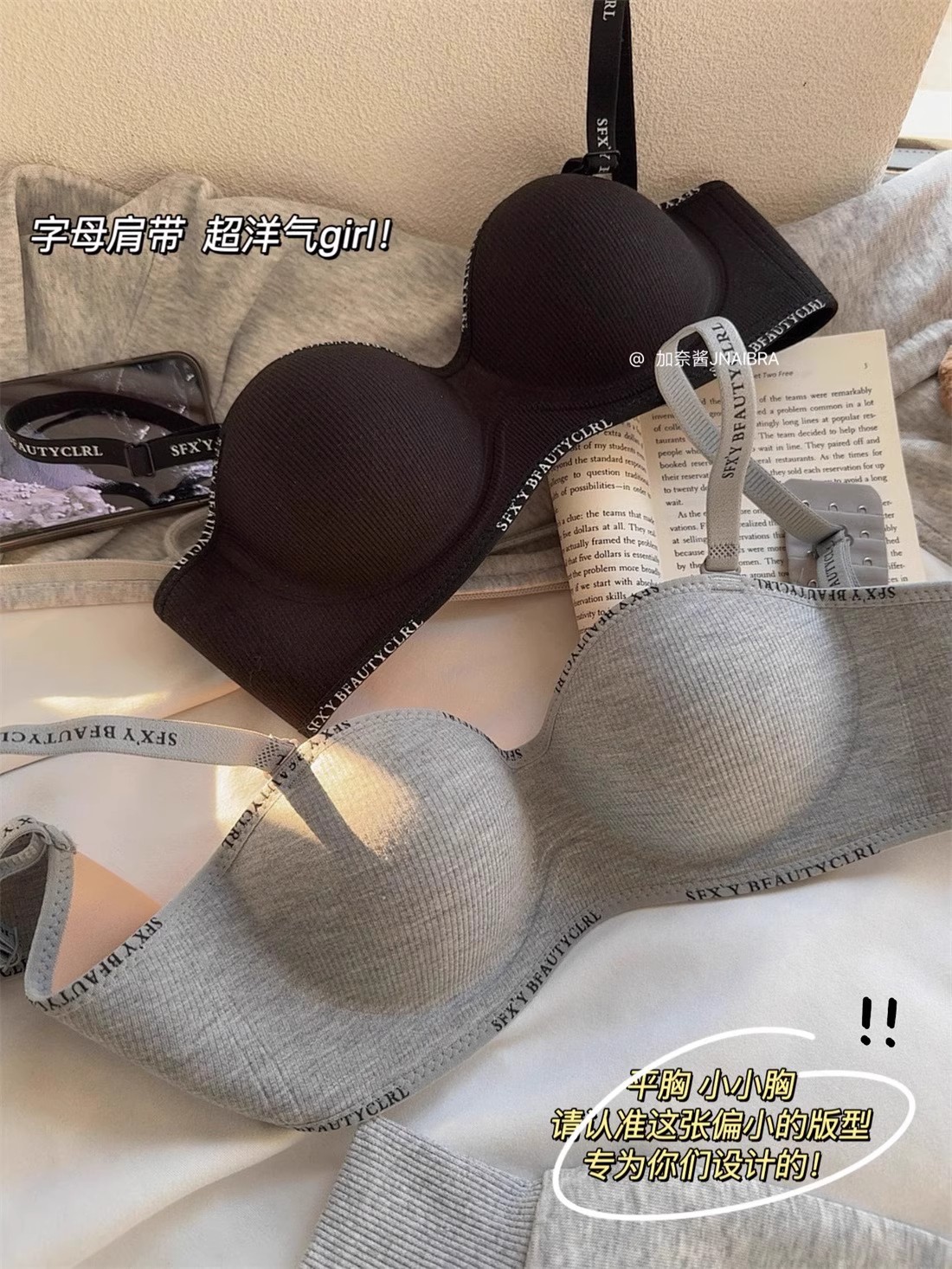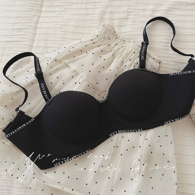 가슴이 작은 여성을 위한 크로스보더 속옷, 푸쉬업 및 확대, 이음매 없음, 와이어 없음, 섹시하고 패셔너블한 레터 스트랩, 통기성 브라스토어 가기