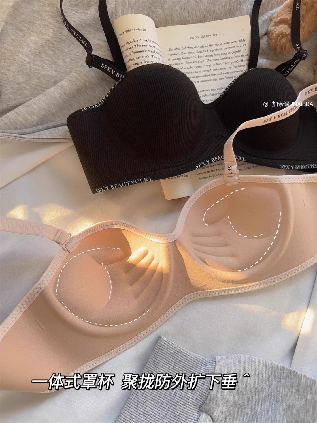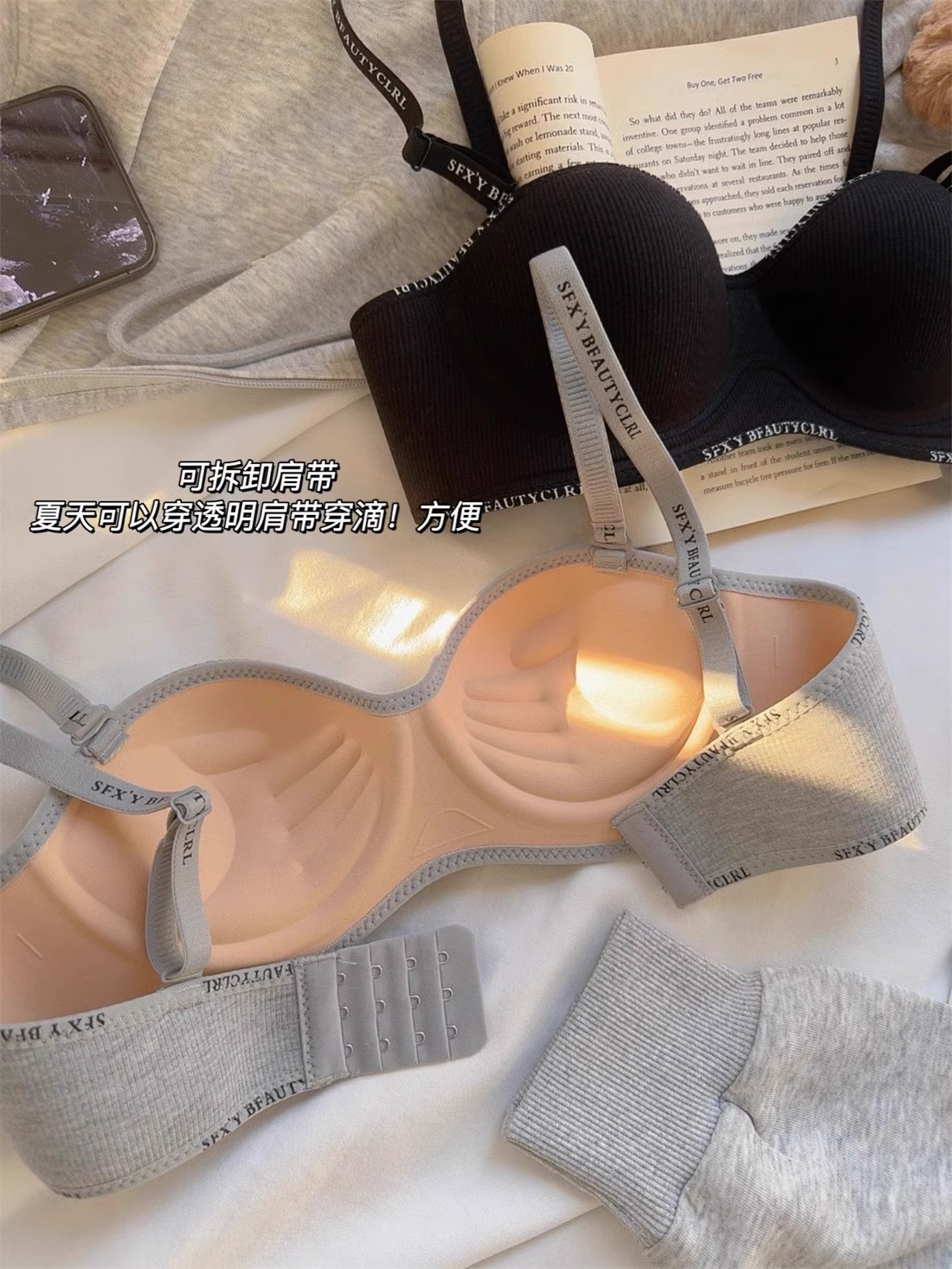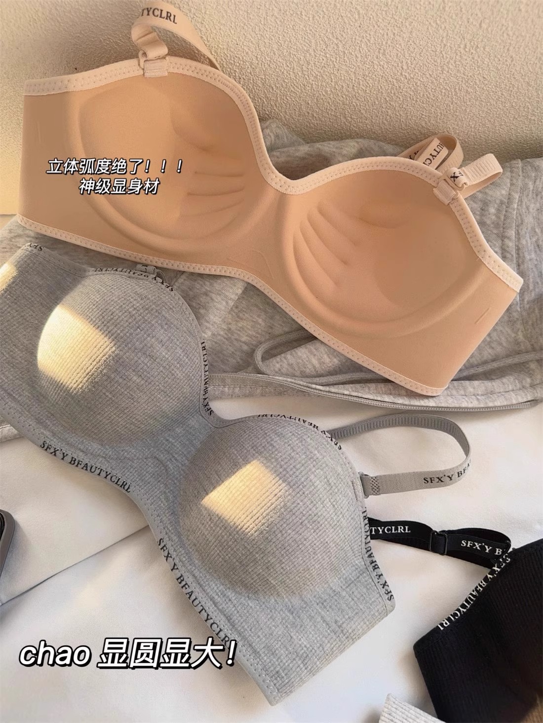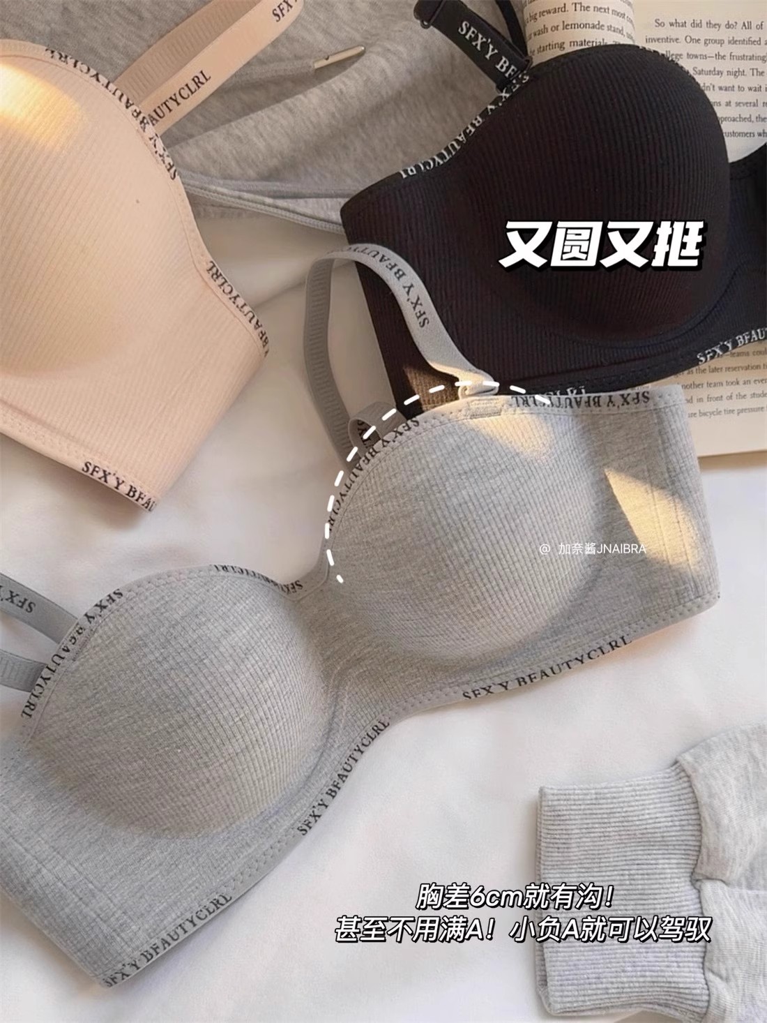 가슴이 작은 여성을 위한 크로스보더 속옷, 푸쉬업 및 확대, 이음매 없음, 와이어 없음, 섹시하고 패셔너블한 레터 스트랩, 통기성 브라스토어 가기