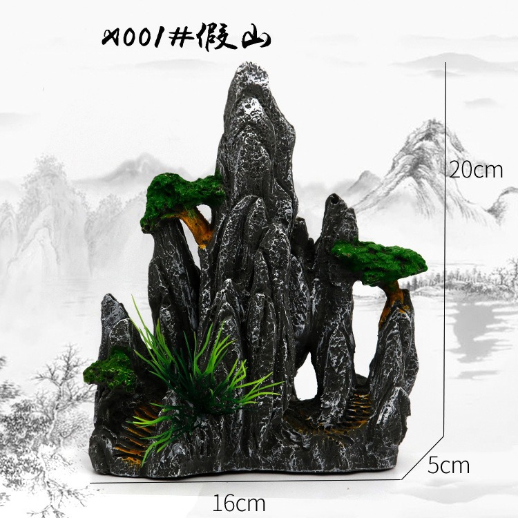 厂家直销 鱼缸造景假山 树脂工艺品人工假山水族箱装饰摆件中国风