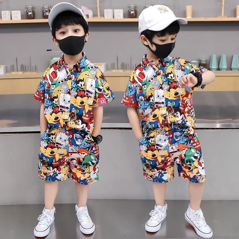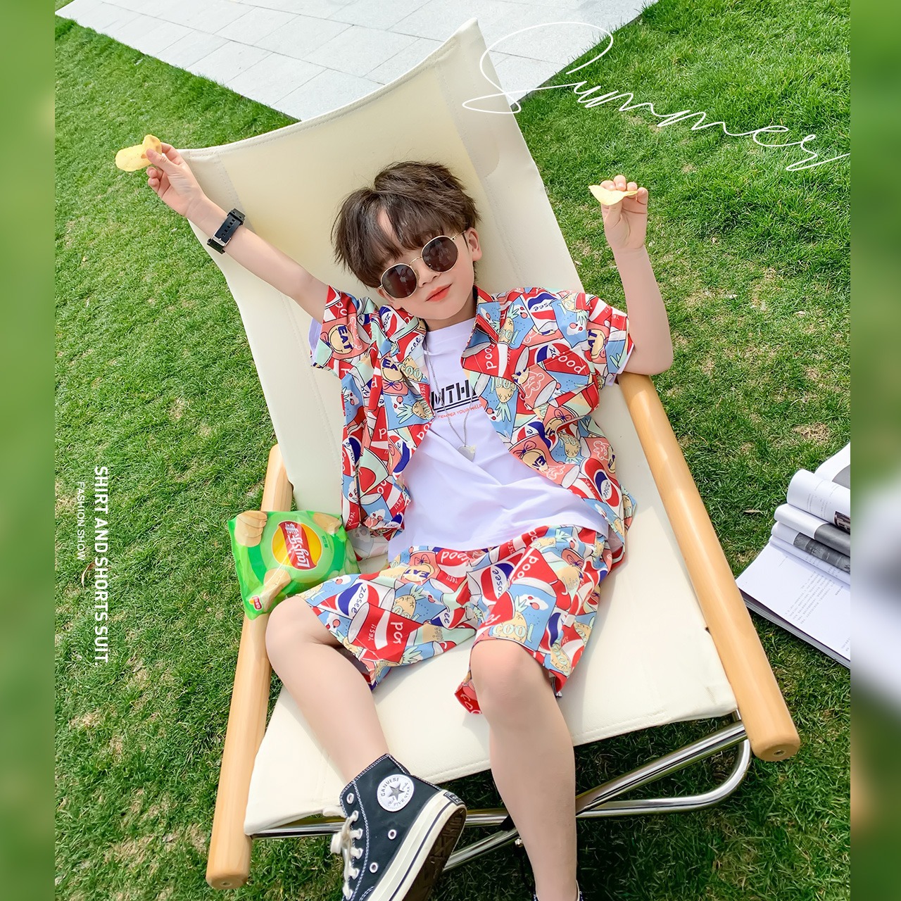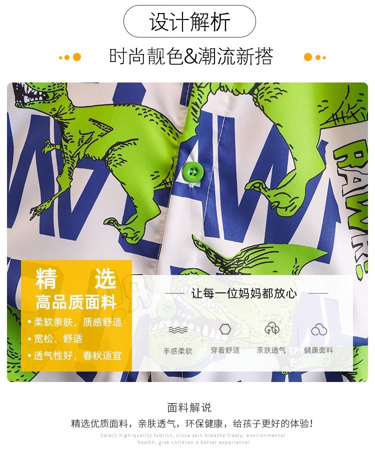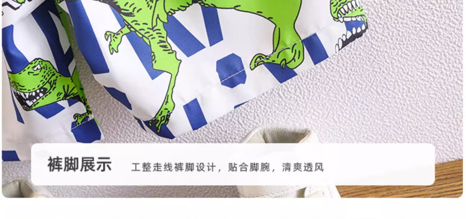 아동 의류 소년 여름 정장 2025 새로운 해변 휴가 얇은 공룡 아동복 셔츠 투피스 세트 유행스토어 가기