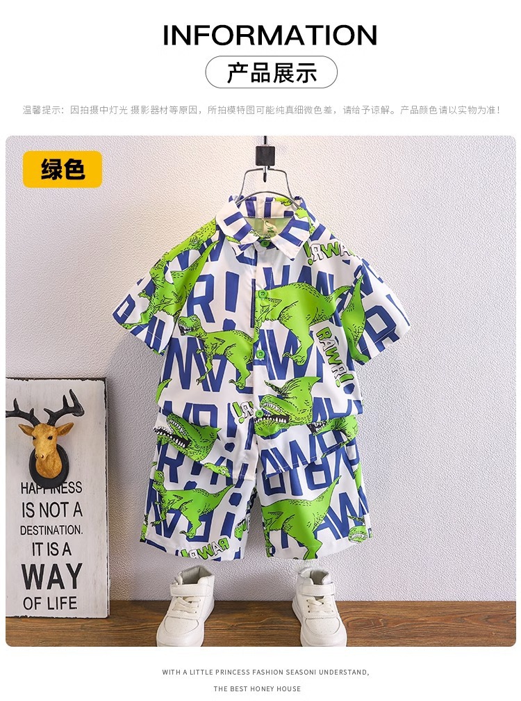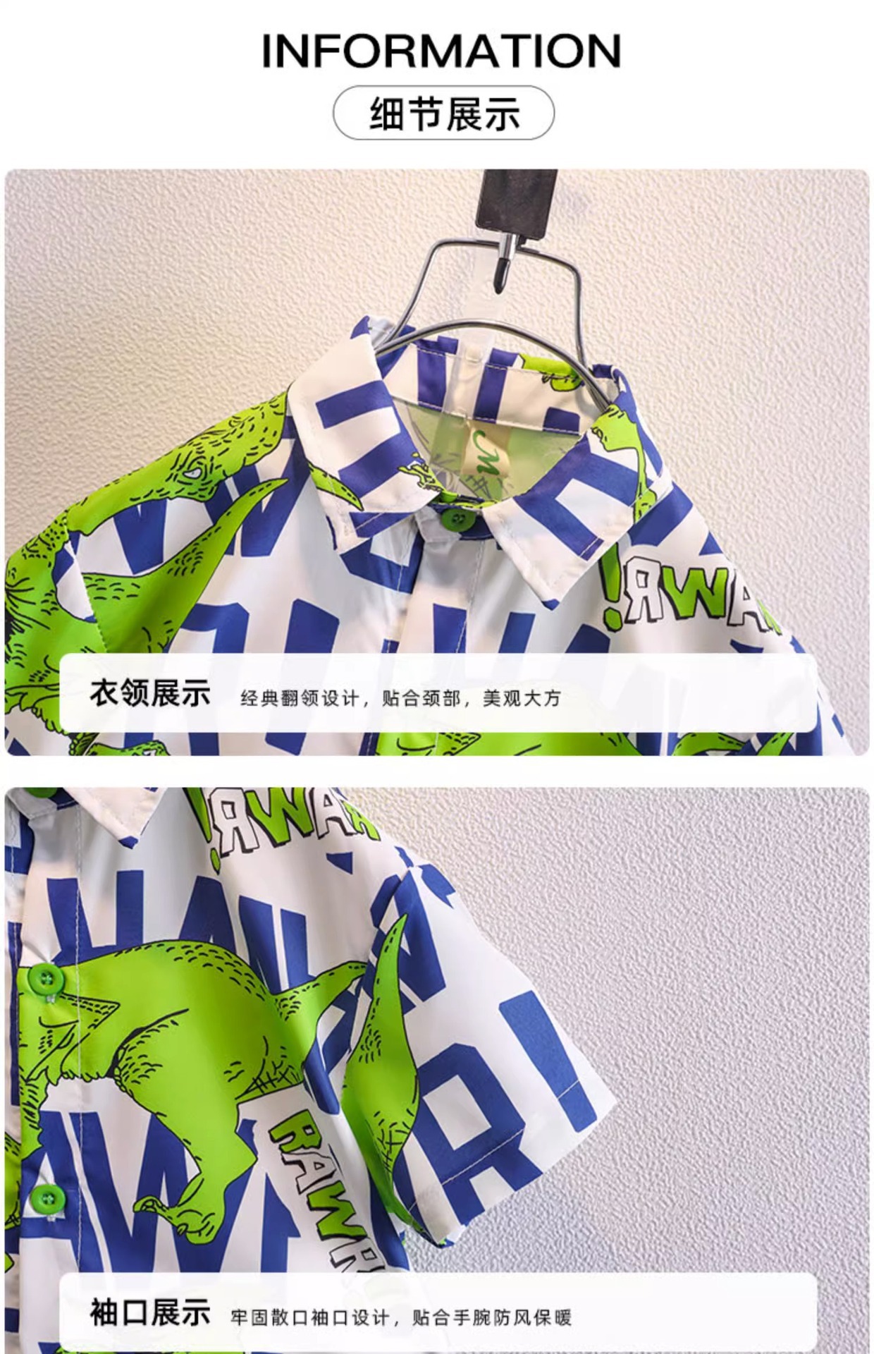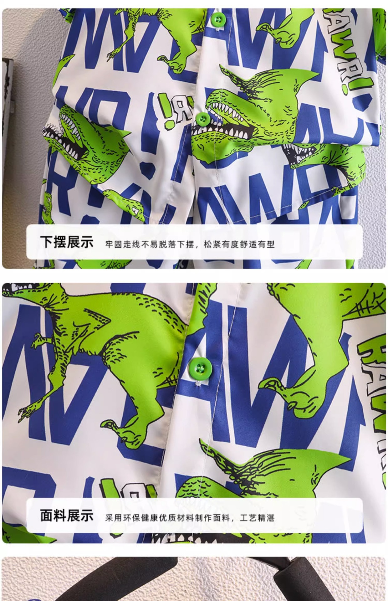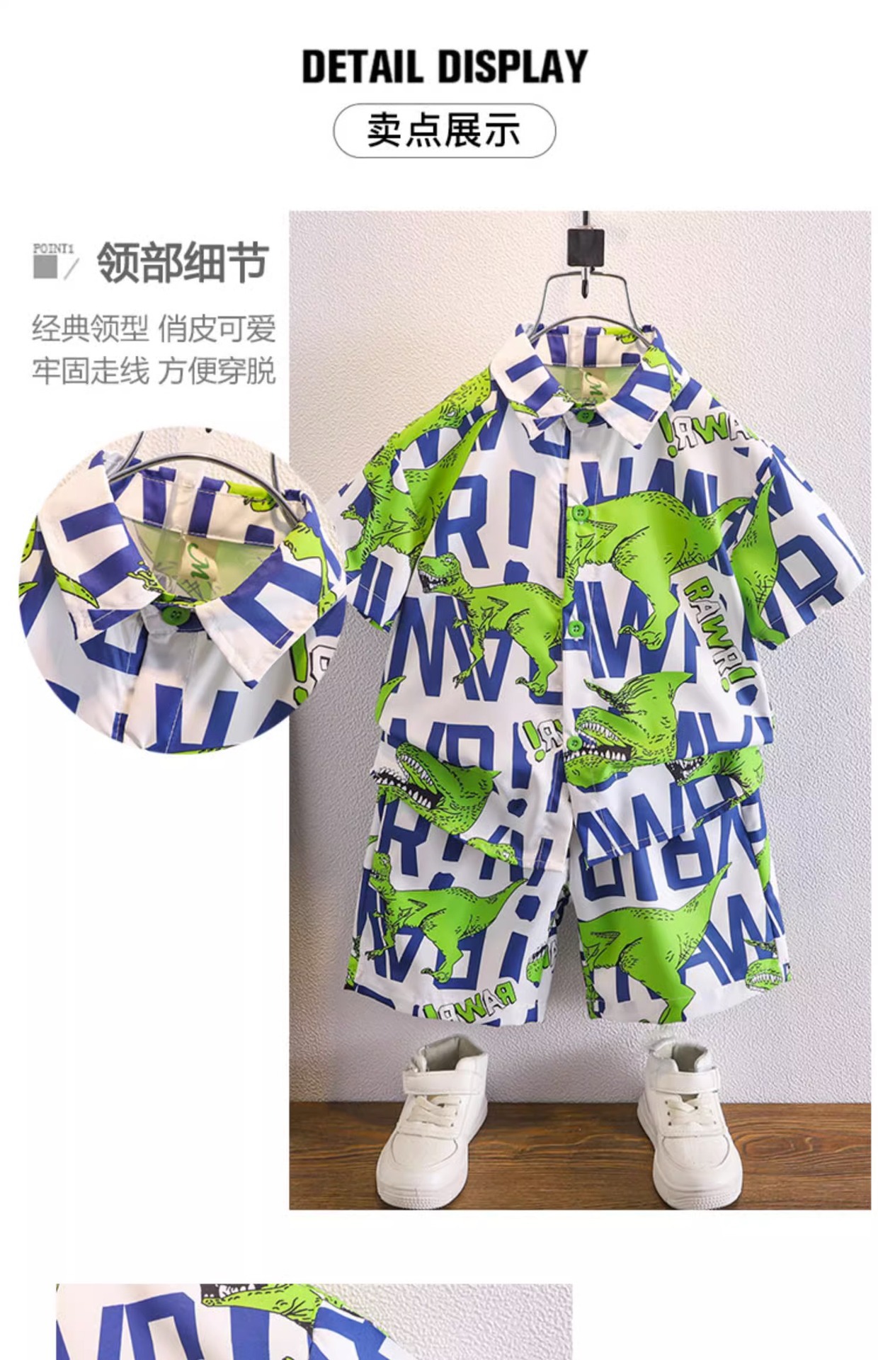 아동 의류 소년 여름 정장 2025 새로운 해변 휴가 얇은 공룡 아동복 셔츠 투피스 세트 유행