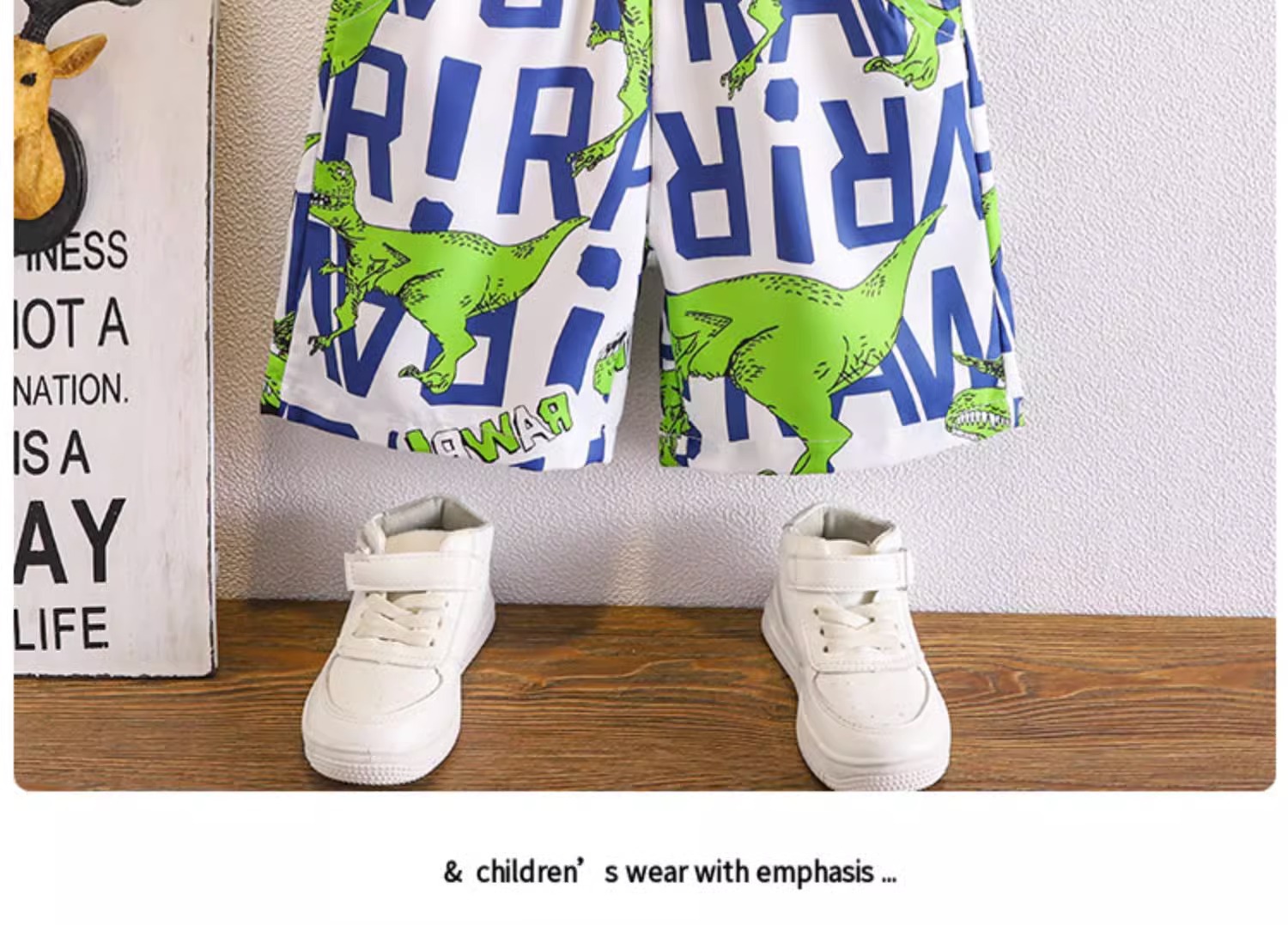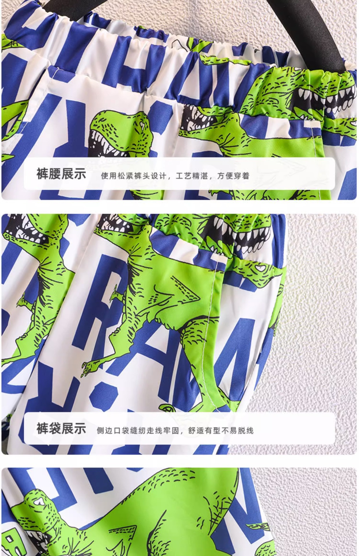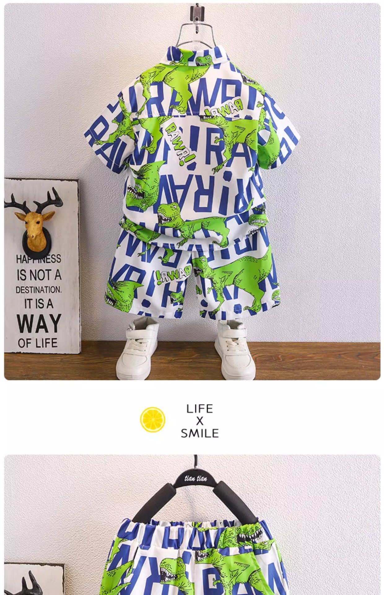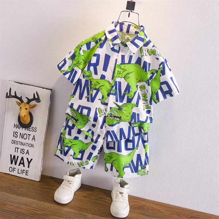 아동 의류 소년 여름 정장 2025 새로운 해변 휴가 얇은 공룡 아동복 셔츠 투피스 세트 유행