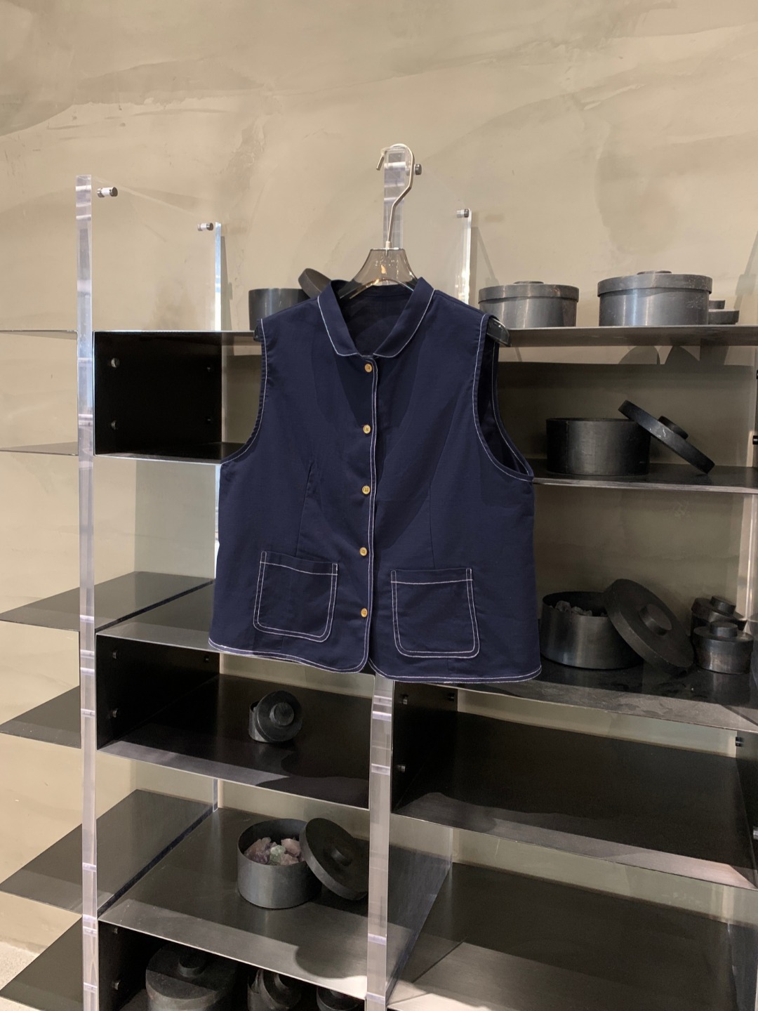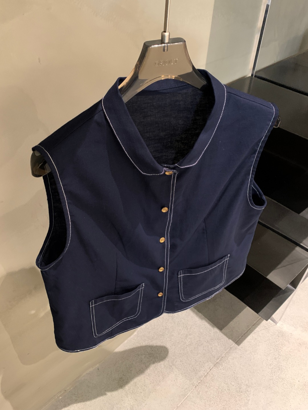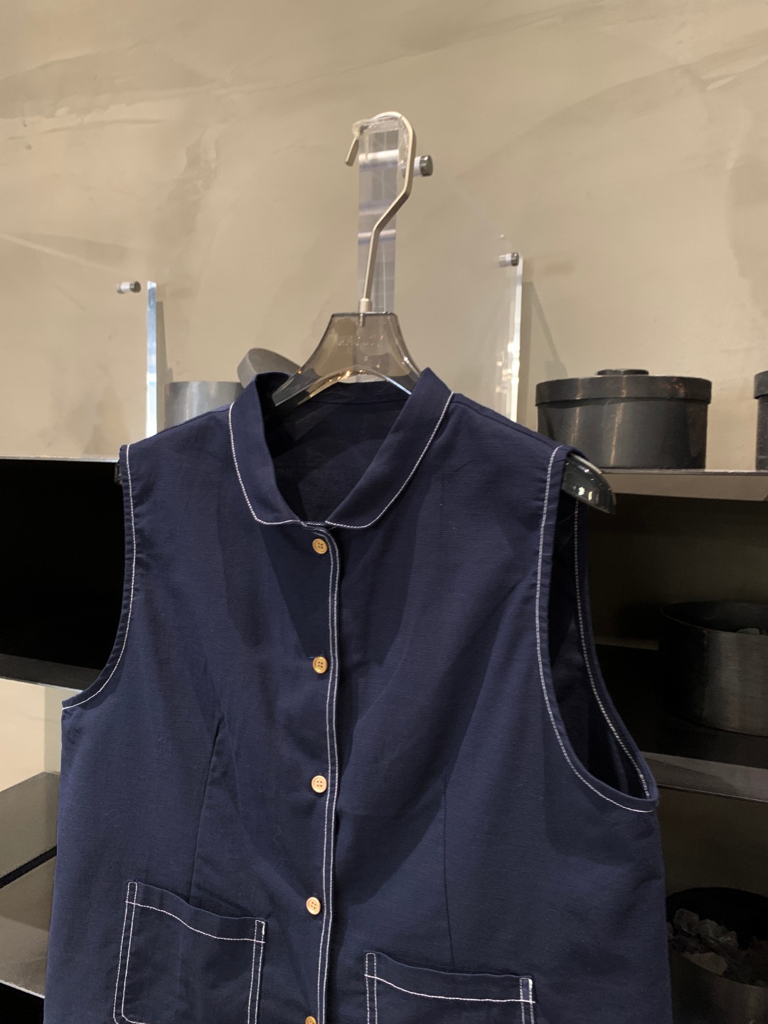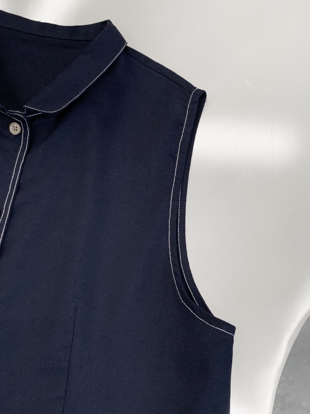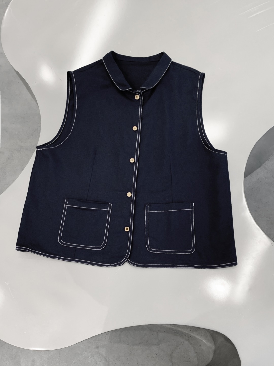 여성을위한 프랑스 통근 스타일 데님 조끼 2025 봄, 여름 새로운 스타일 예술적 단색 코튼 린넨 인형 칼라 조끼스토어 가기