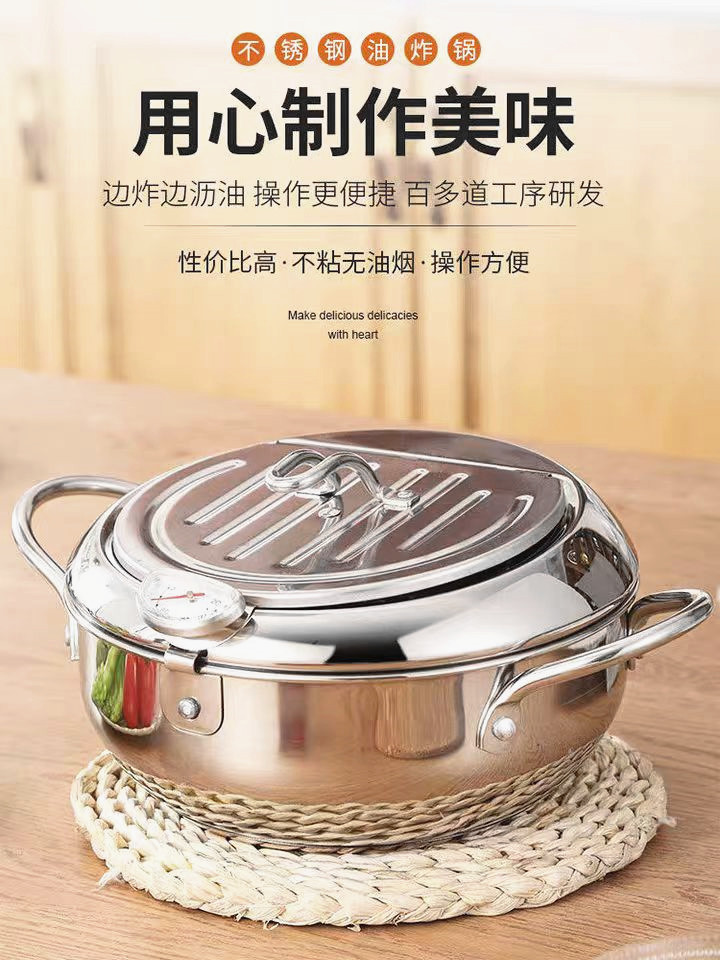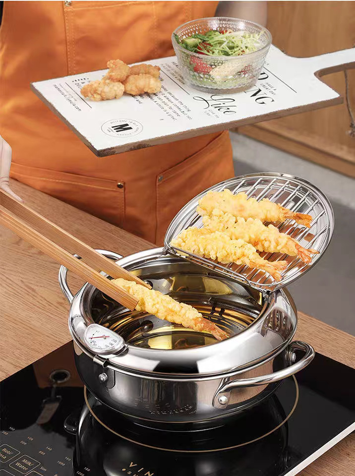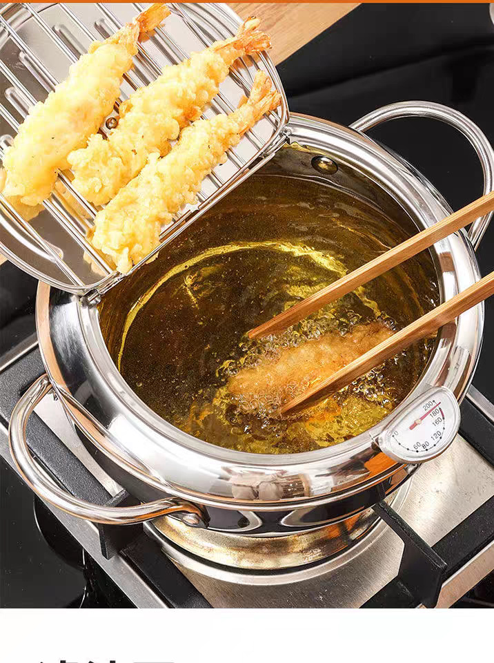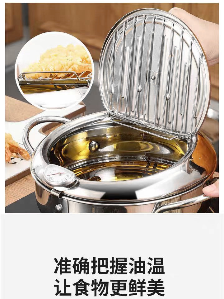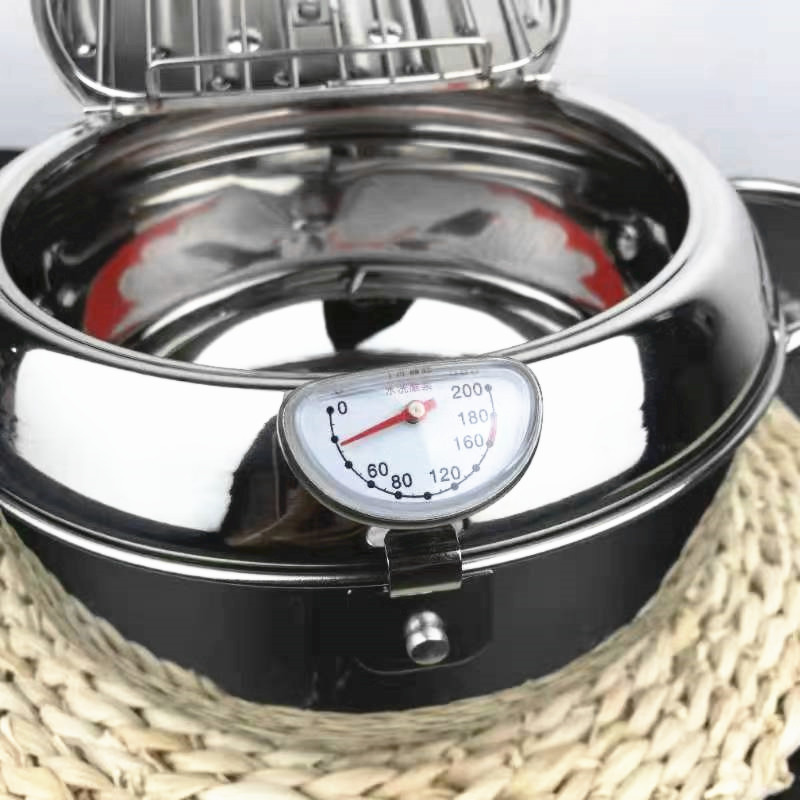 ✅온도계 가정용 가스 프라이어를 가진 뚜껑 온도 제어 튀긴 문자열 일본 튀김을 가진 스테인리스 프라이어