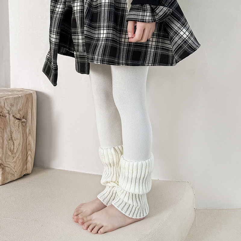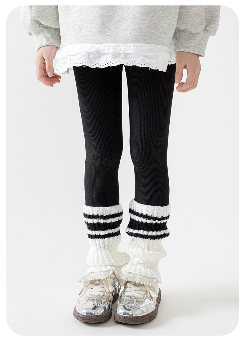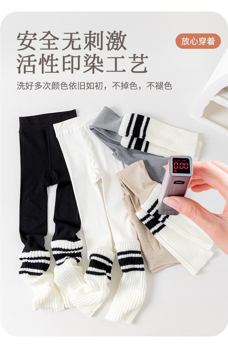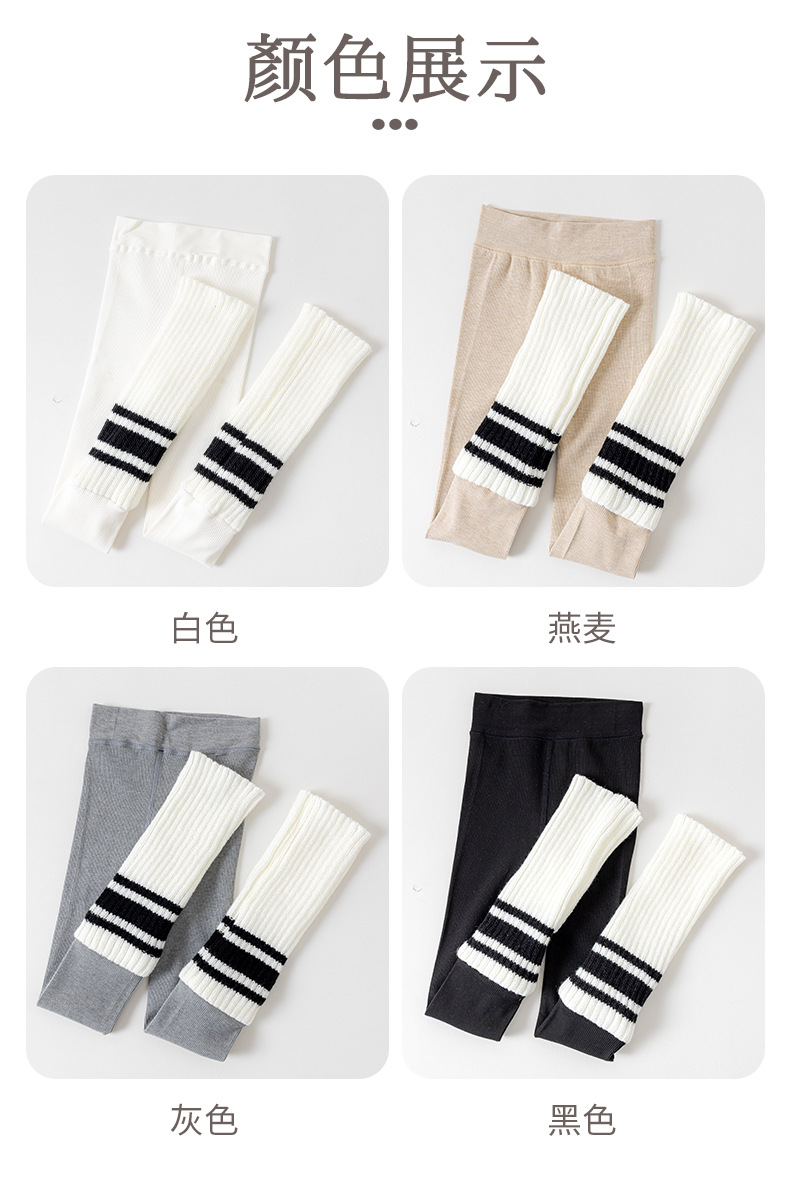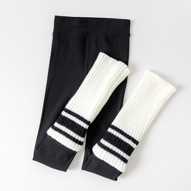 여아 레깅스 봄, 가을 줄무늬 흑백 줄무늬 양말 접합 얇은 빗질면 레깅스 어린이 세로 줄무늬 9 점