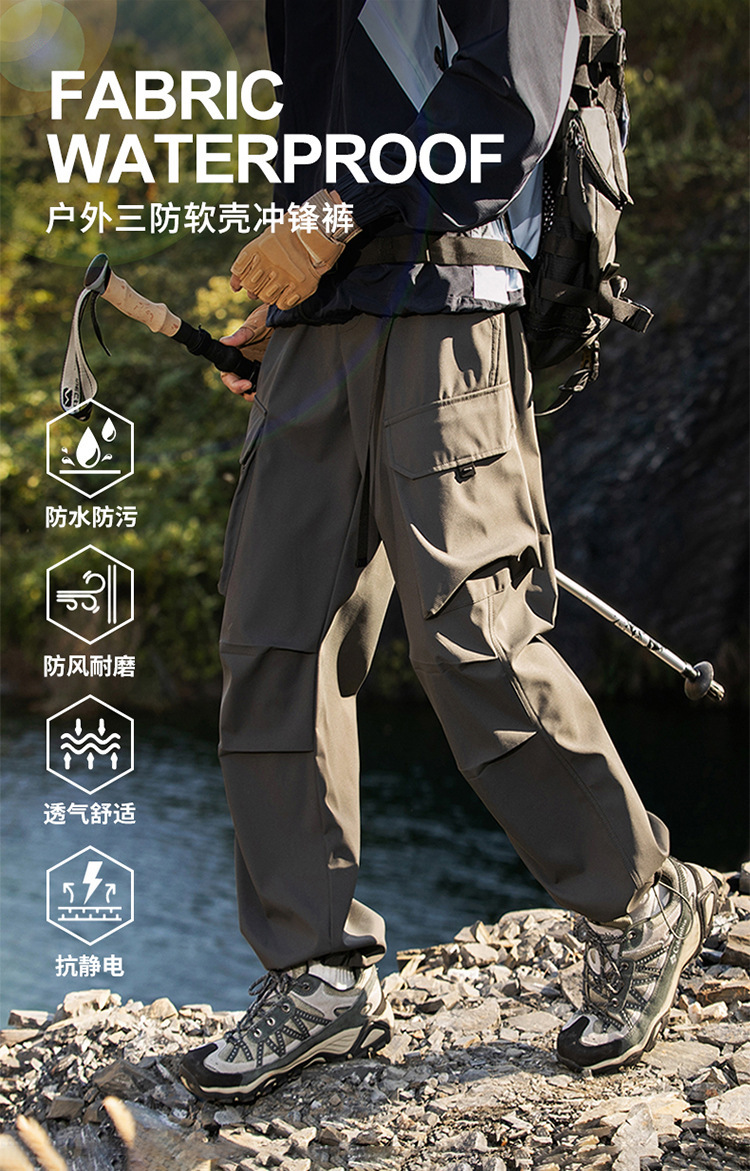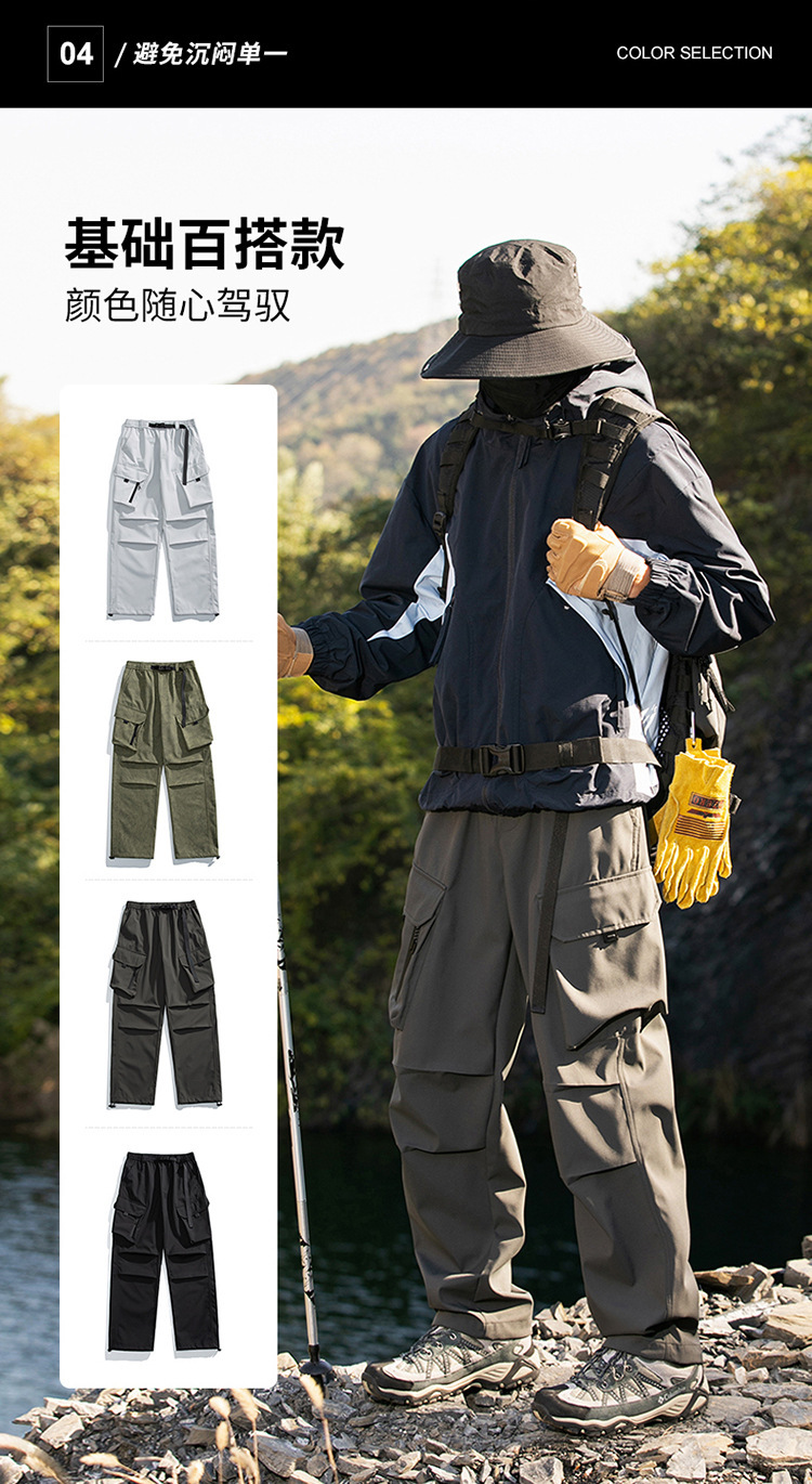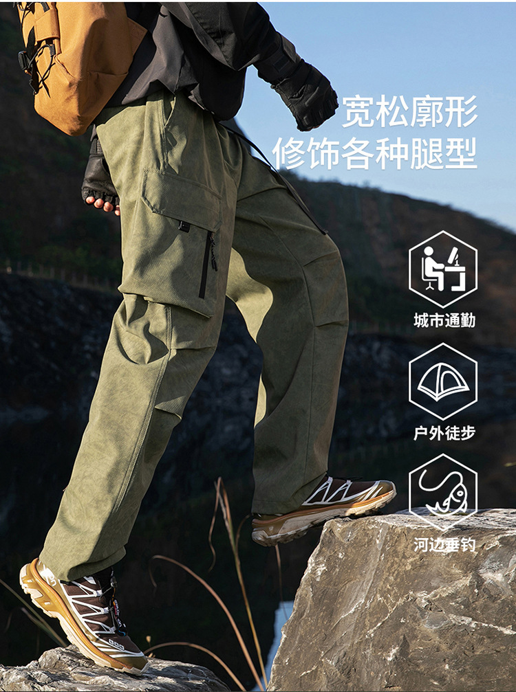 산악 스타일 3방수 바지, 봄, 가을 남성 루즈한 기능성 바지, 트렌디한 브랜드 아웃도어 스포츠 및 레저 남성