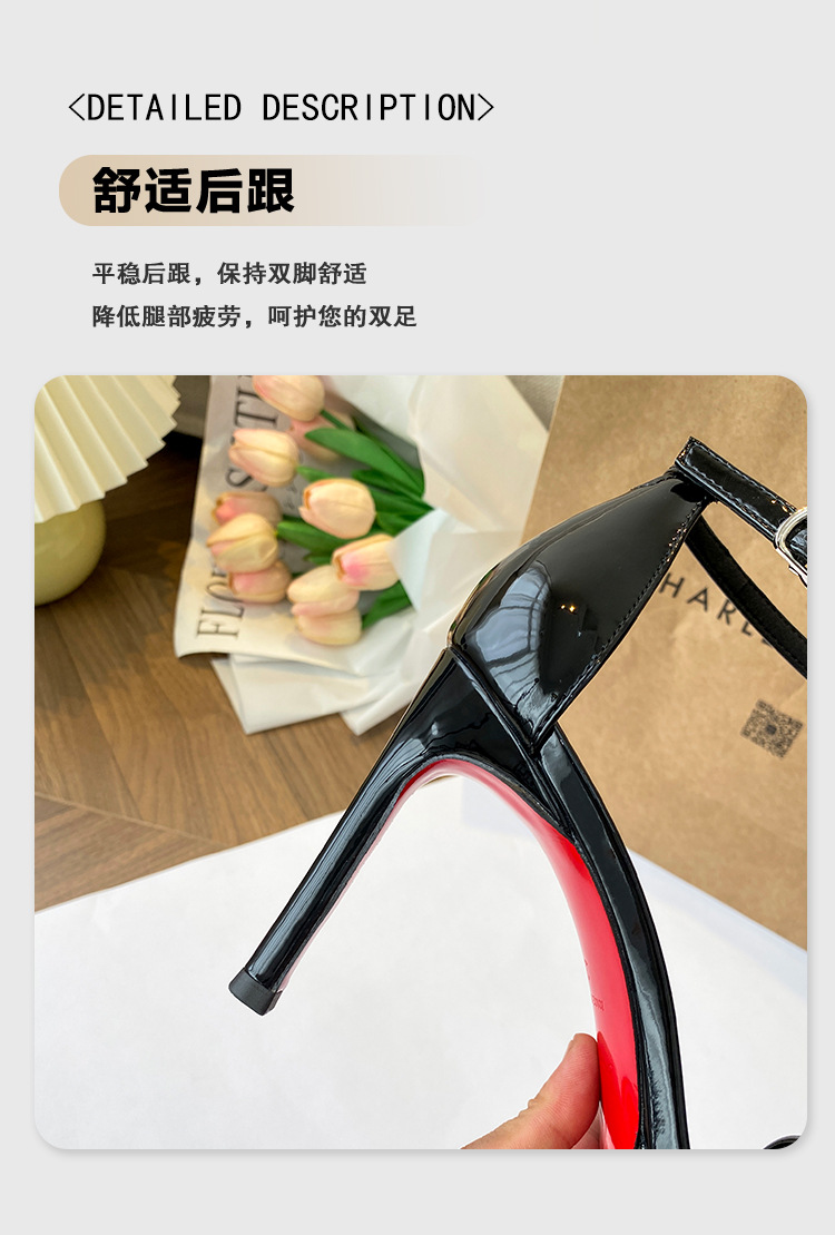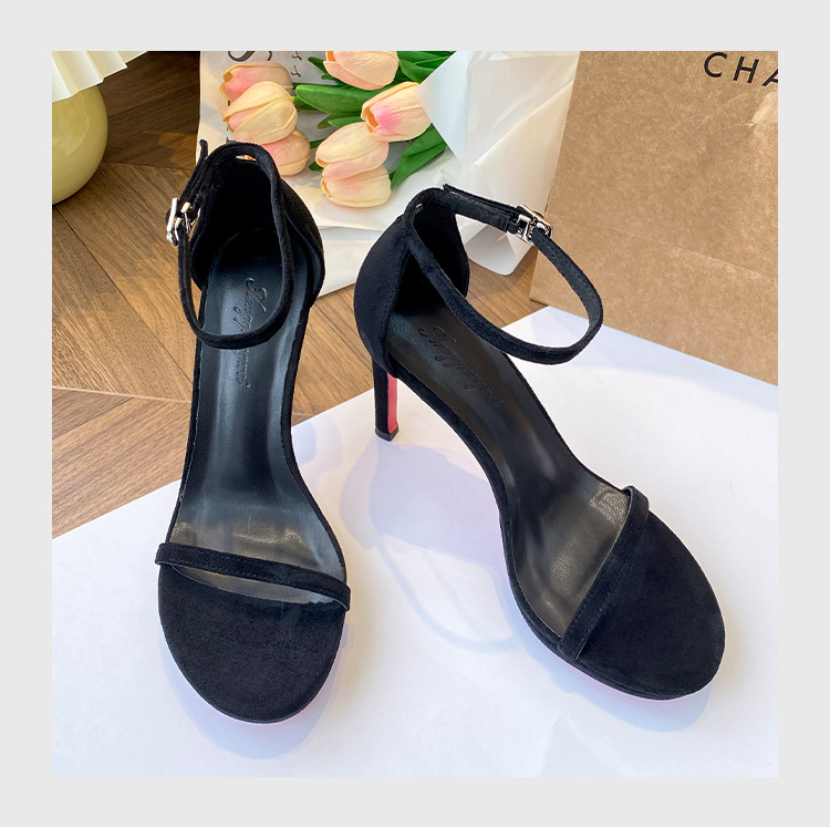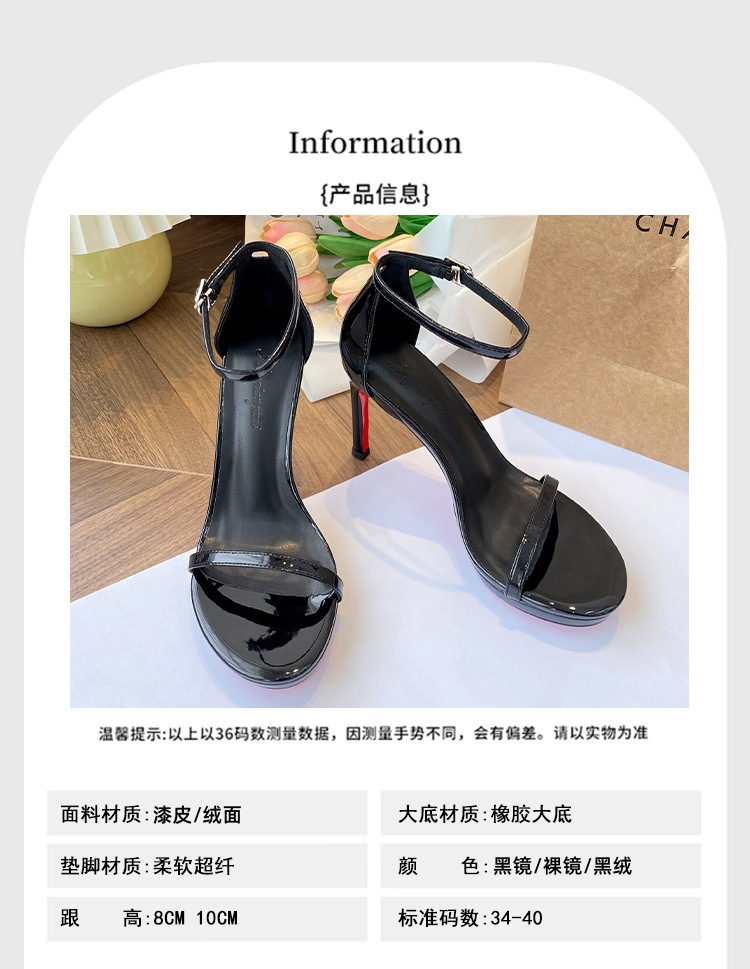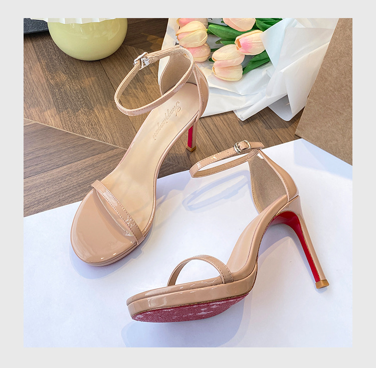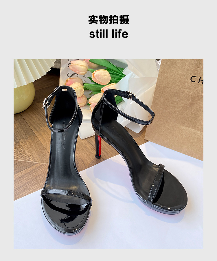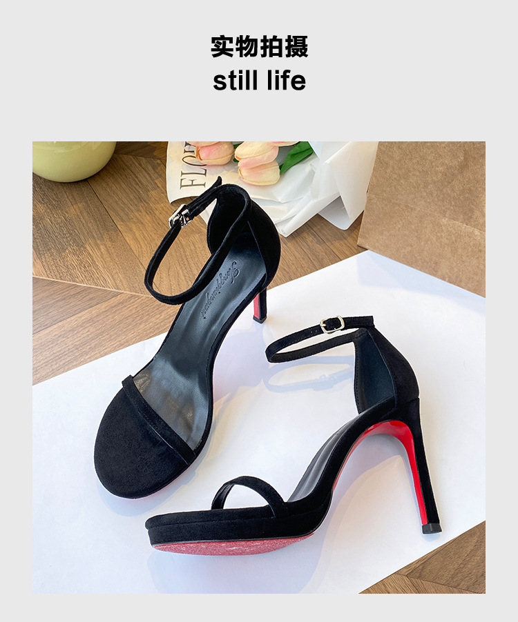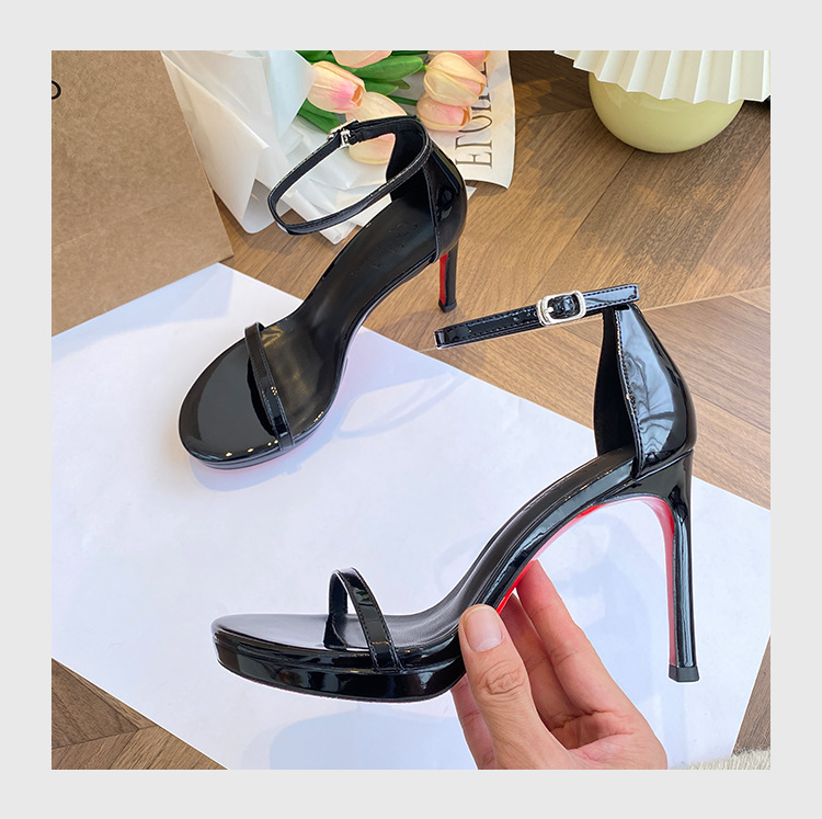 블랙 한 단어 스트랩 샌들 여성 여름 2025 새로운 스타일 연예인 섹시한 우아한 스틸레토 힐 플랫폼 레드 바닥 하이힐스토어 가기