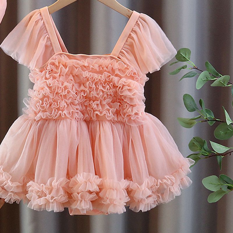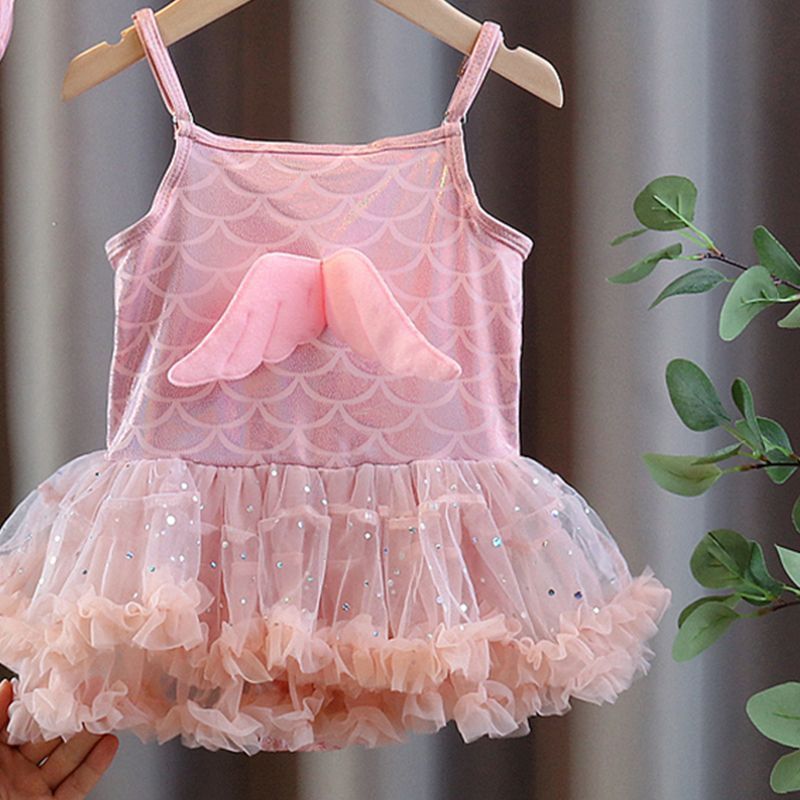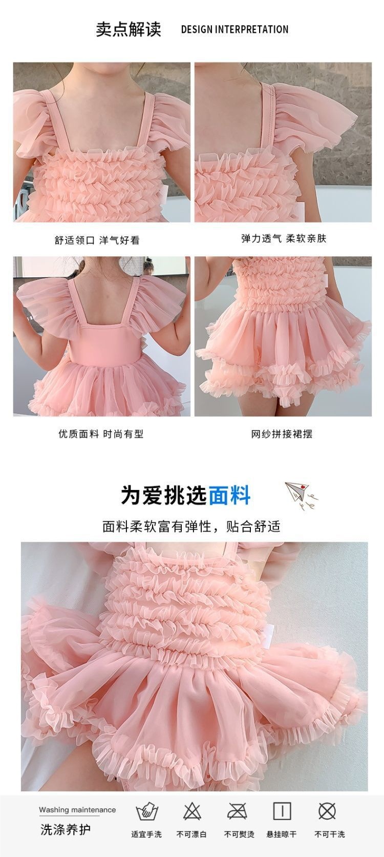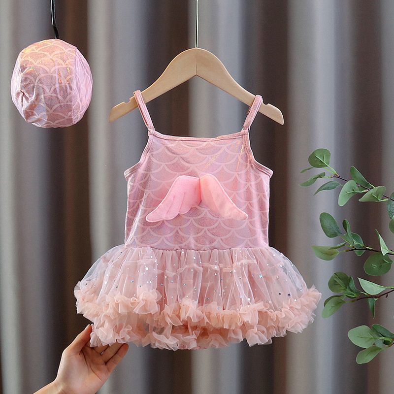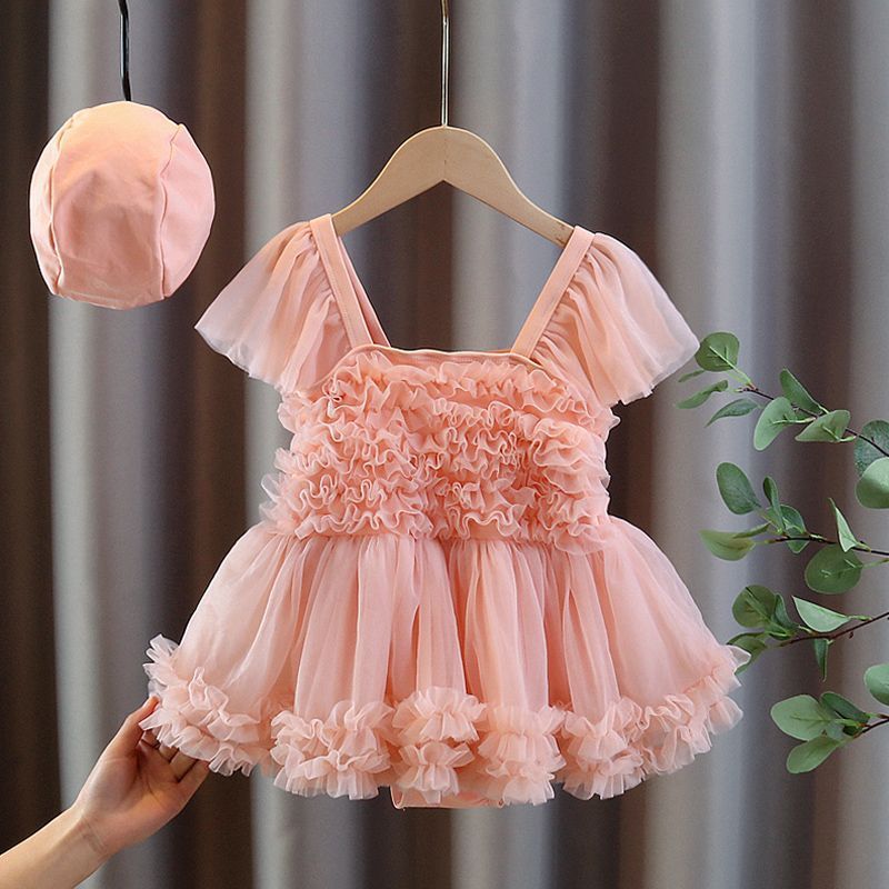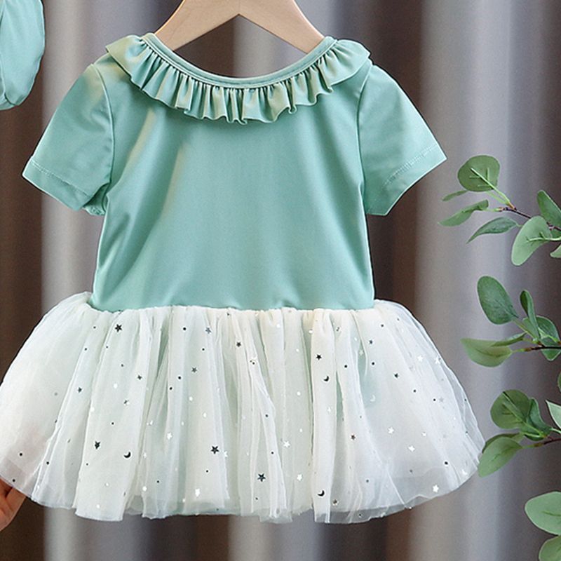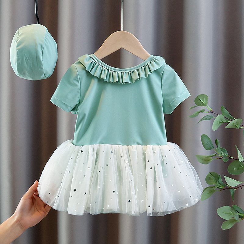 아동용 수영복, 여아용 달콤하고 패셔너블한 베이비 원피스 레이스 드레스 스타일의 귀여운 수영복, 아동 트렌드