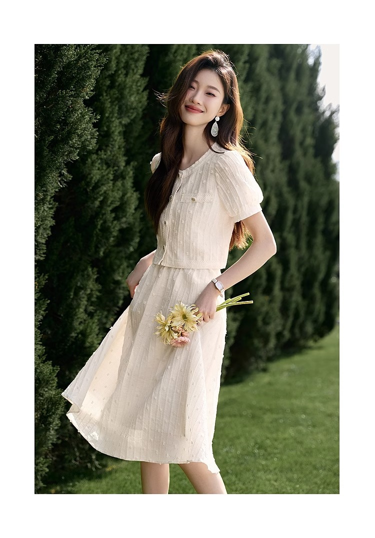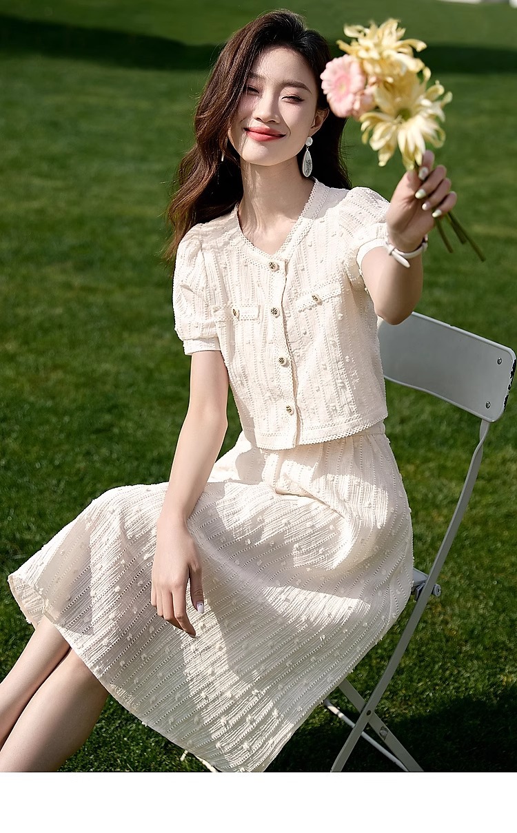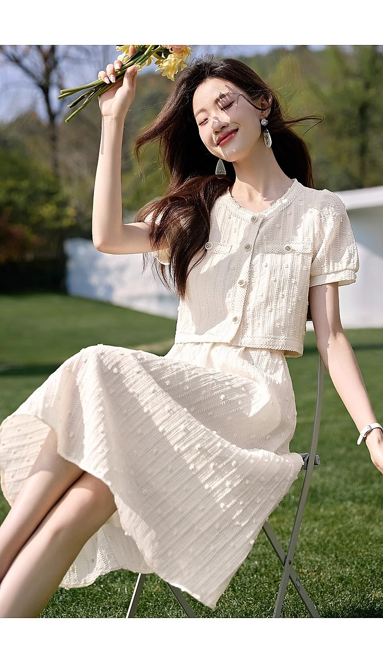 절묘하고 세련된 질감 세트 mogo fish yuanchuang 2025 여름 둥근 목 셔츠 오버스커트 여성의 세트 연령 감소 슬리밍