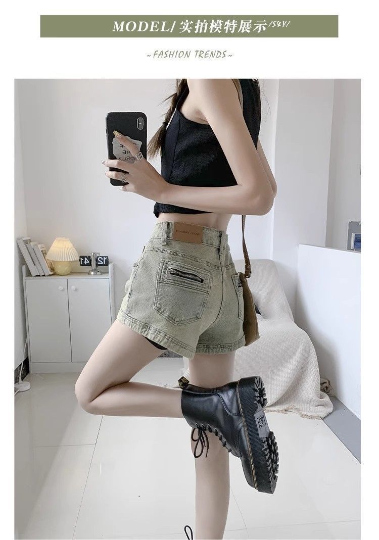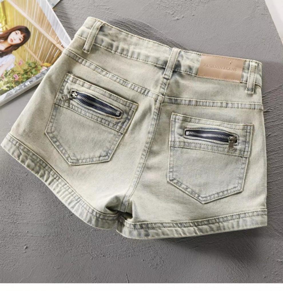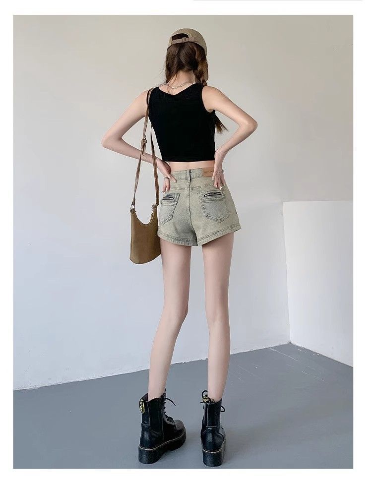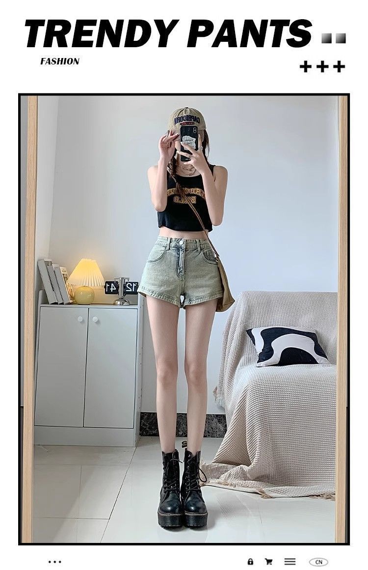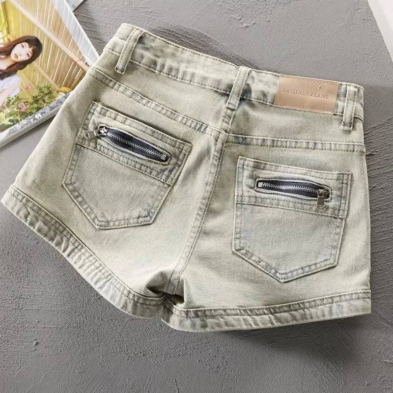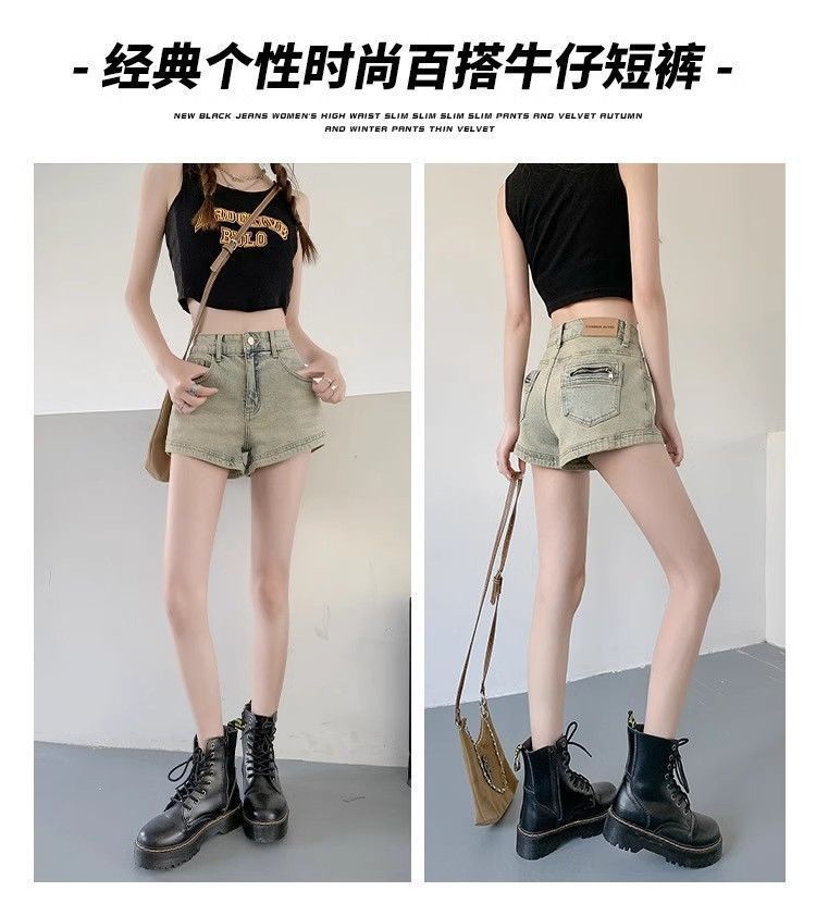 여성을위한 레트로 데님 반바지 2024 여름 새로운 스타일 하이 웨이스트 슬리밍 핫 소녀 패션 디자인스토어 가기