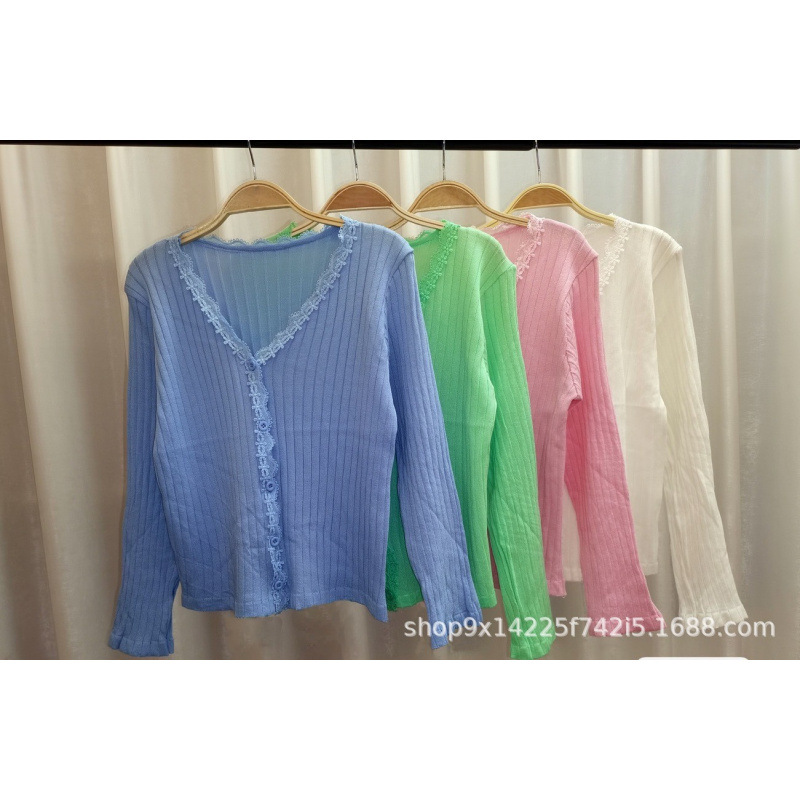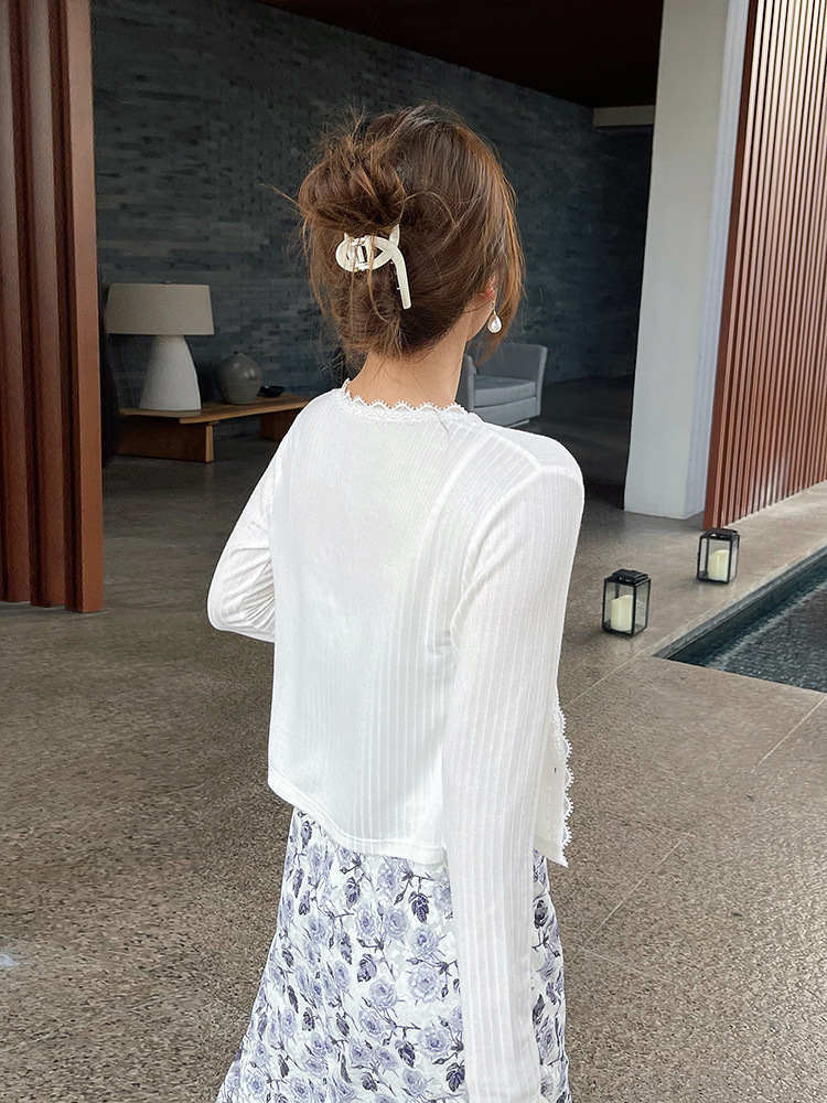 달콤하고 신선한 단색 짧은 얇은 니트 카디건 재킷 봄 신작 여성 의류 에어컨 셔츠