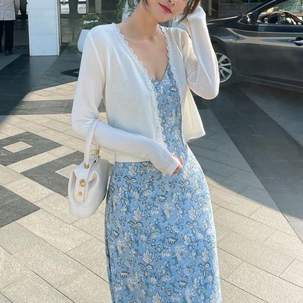 달콤하고 신선한 단색 짧은 얇은 니트 카디건 재킷 봄 신작 여성 의류 에어컨 셔츠스토어 가기