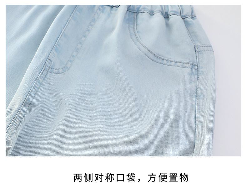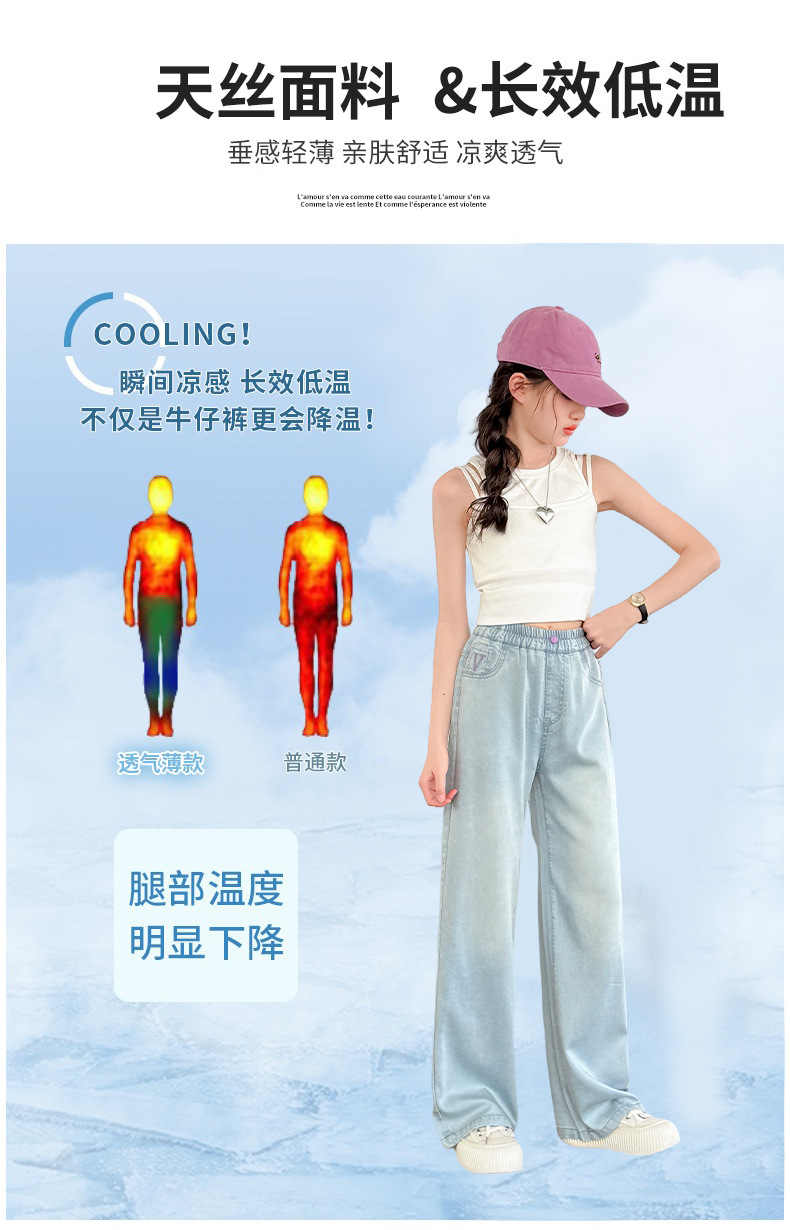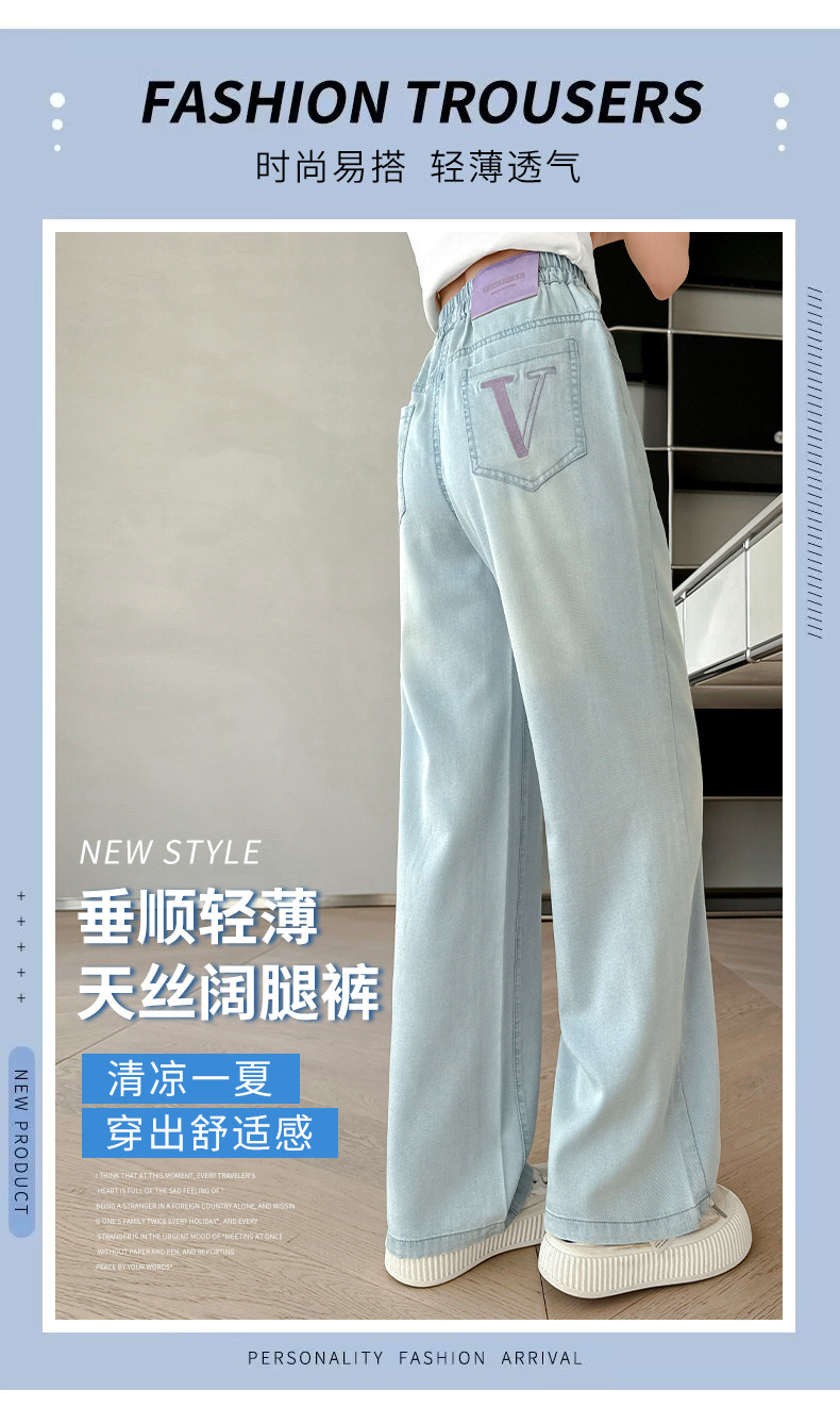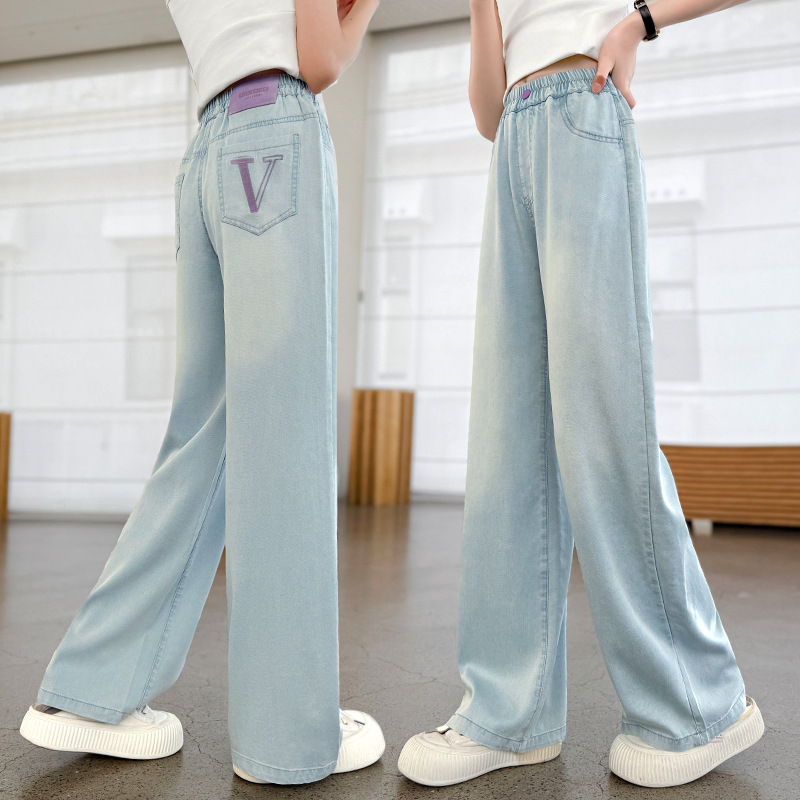여아 바지 여름 2026 아동용 다용도 와이드 팬츠 중대형 아동용 텐셀 데님 스트레이트 롱 팬츠 블루 텐셀