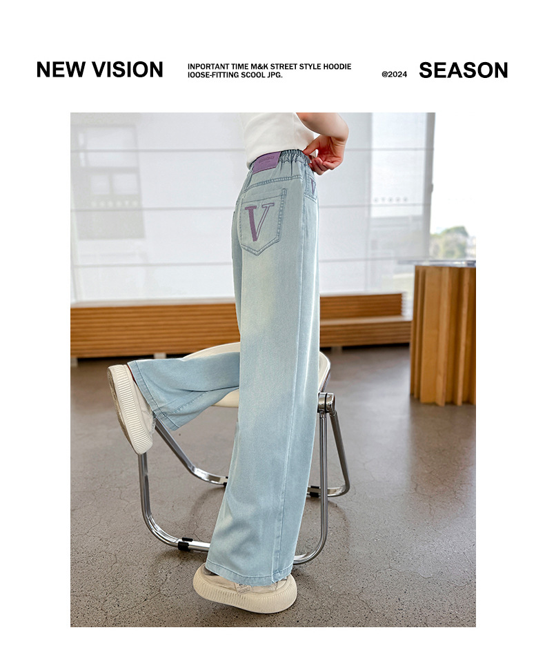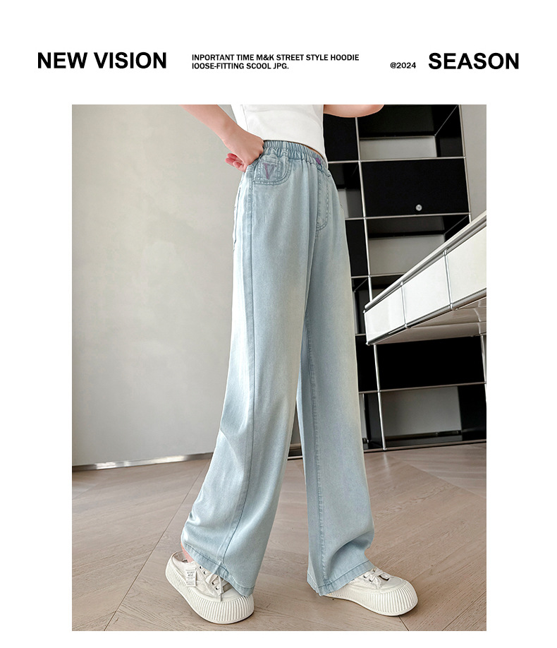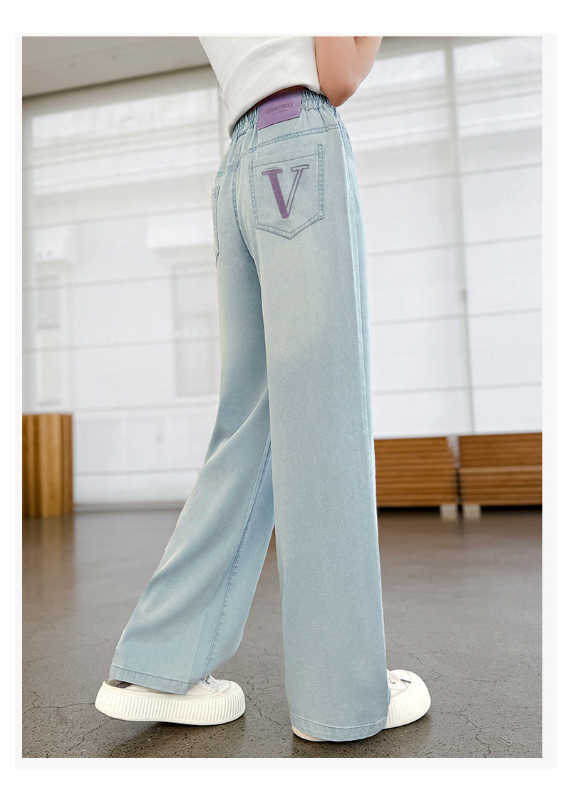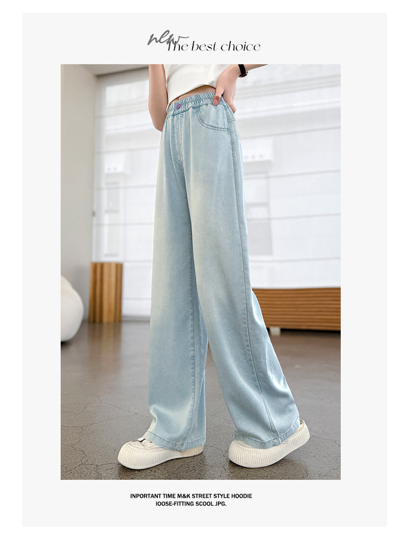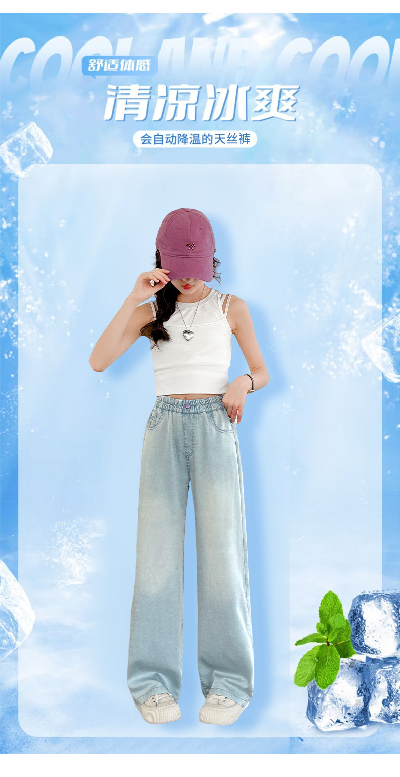 여아 바지 여름 2026 아동용 다용도 와이드 팬츠 중대형 아동용 텐셀 데님 스트레이트 롱 팬츠 블루 텐셀스토어 가기
